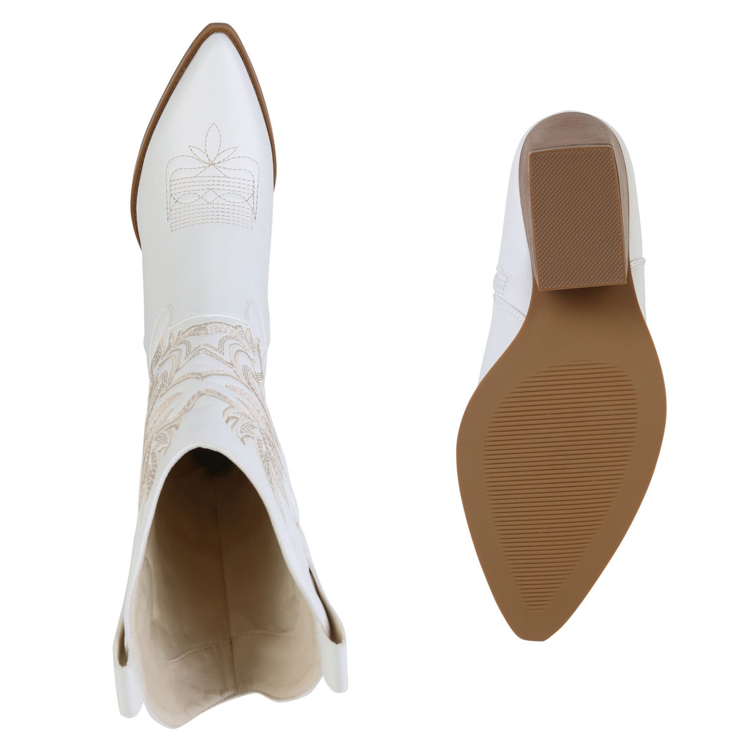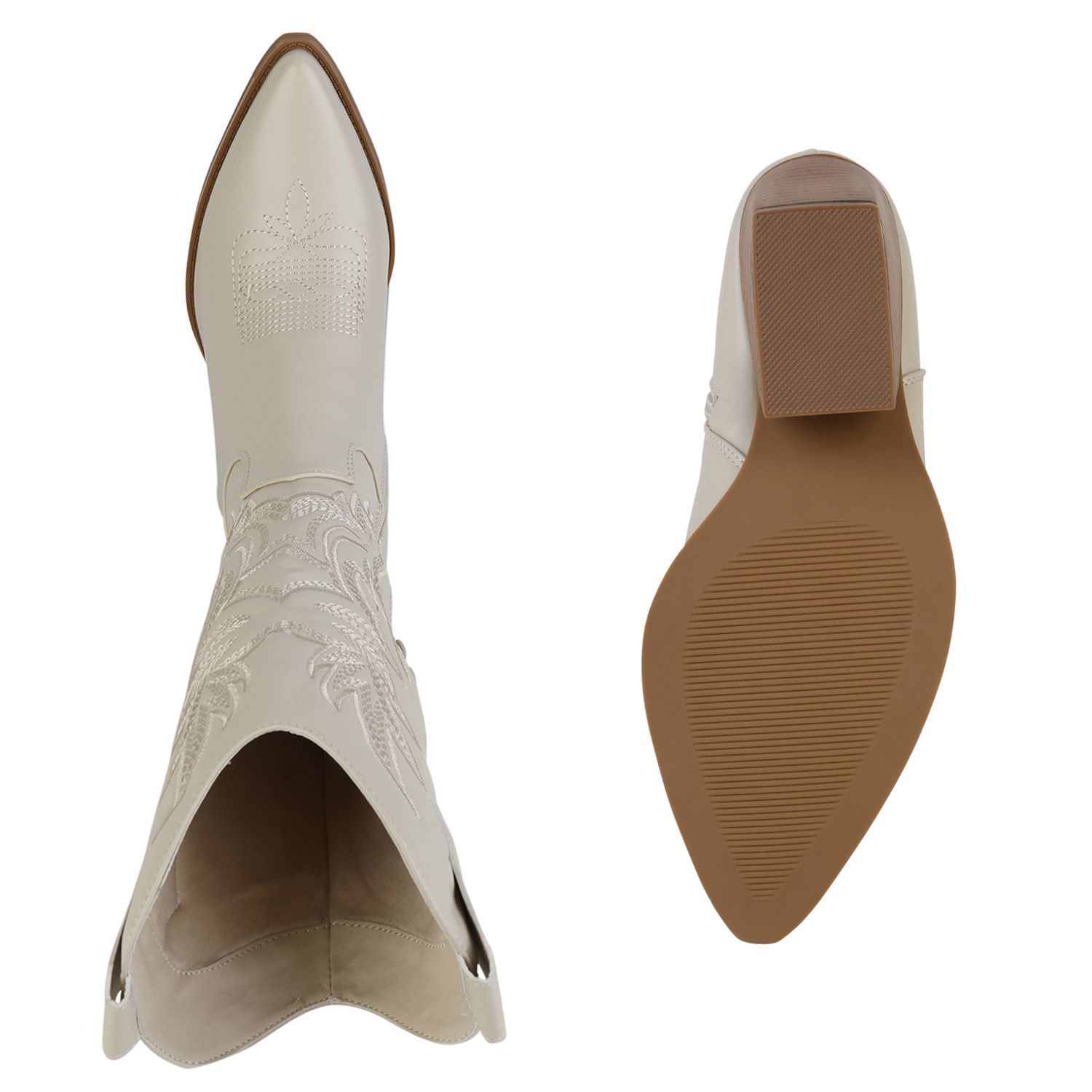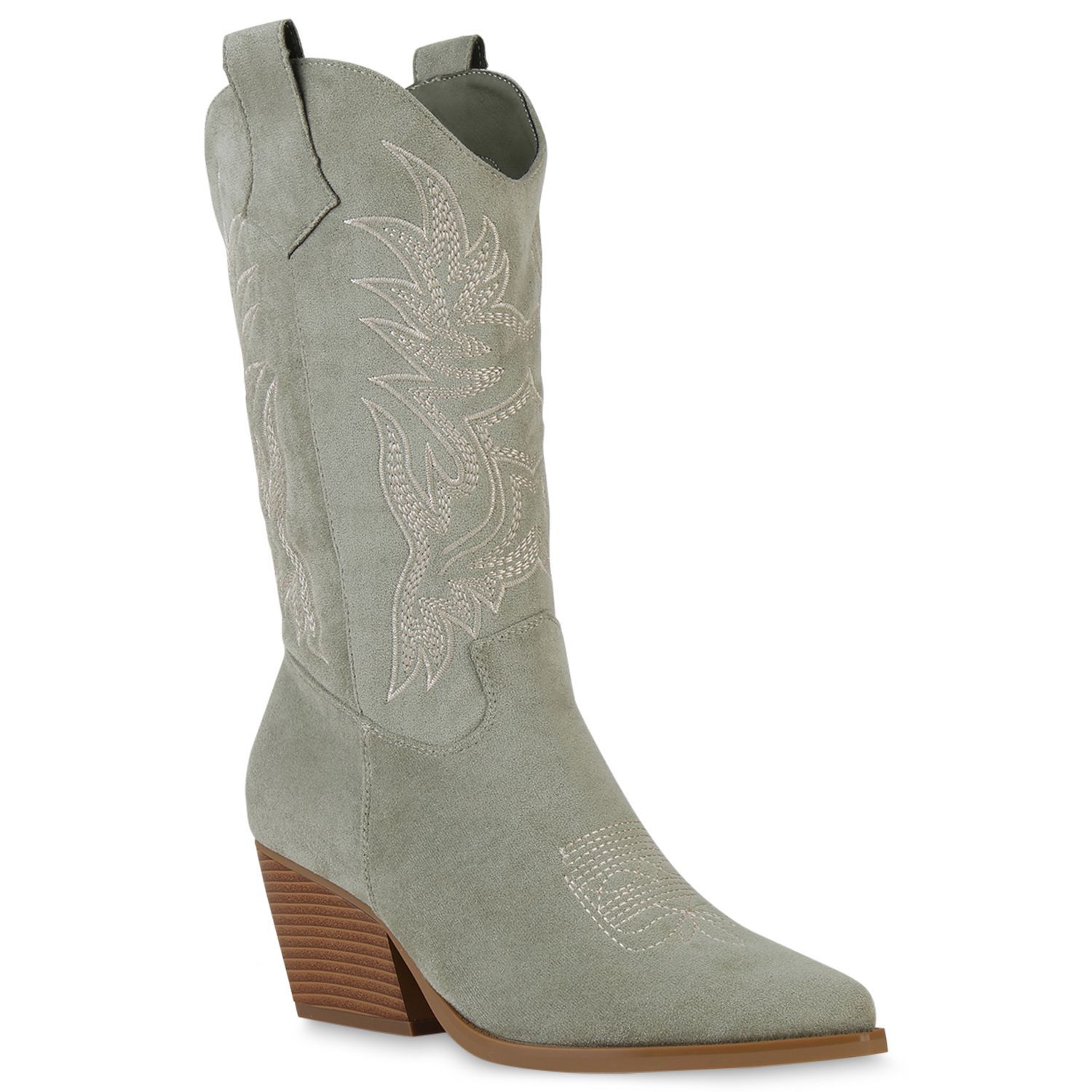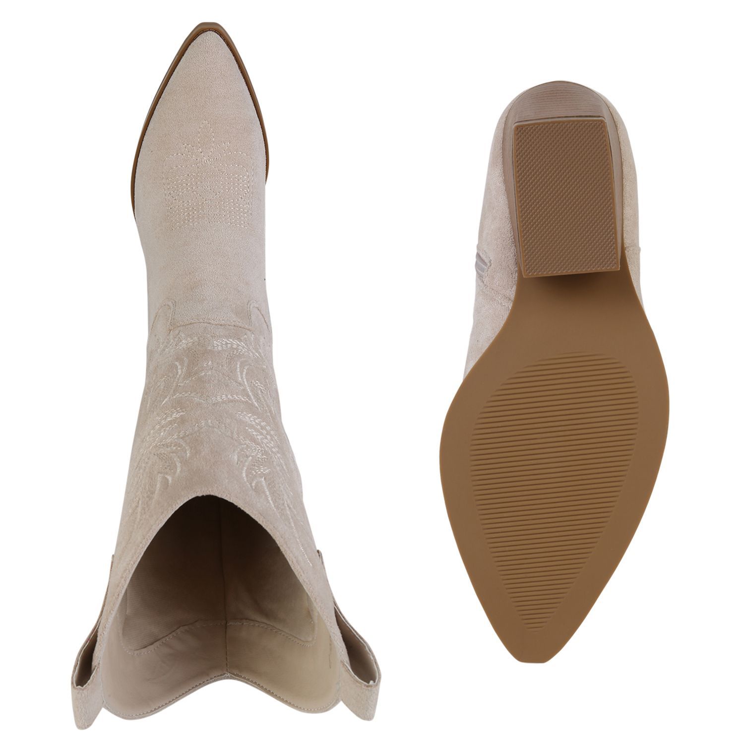 VAN HILL Damen Cowboystiefel Stiefel Stickereien Holzoptikabsatz Schuhe 840142