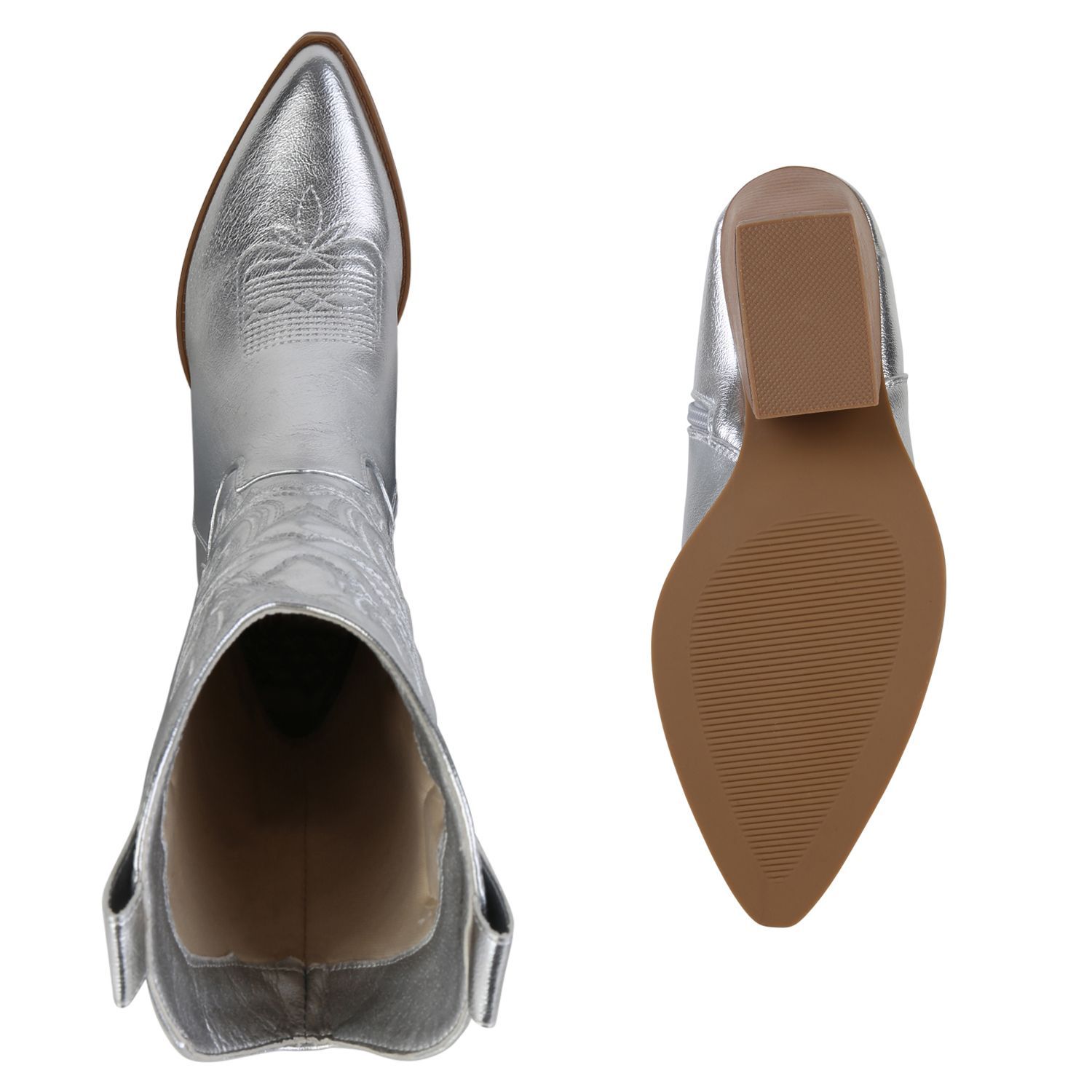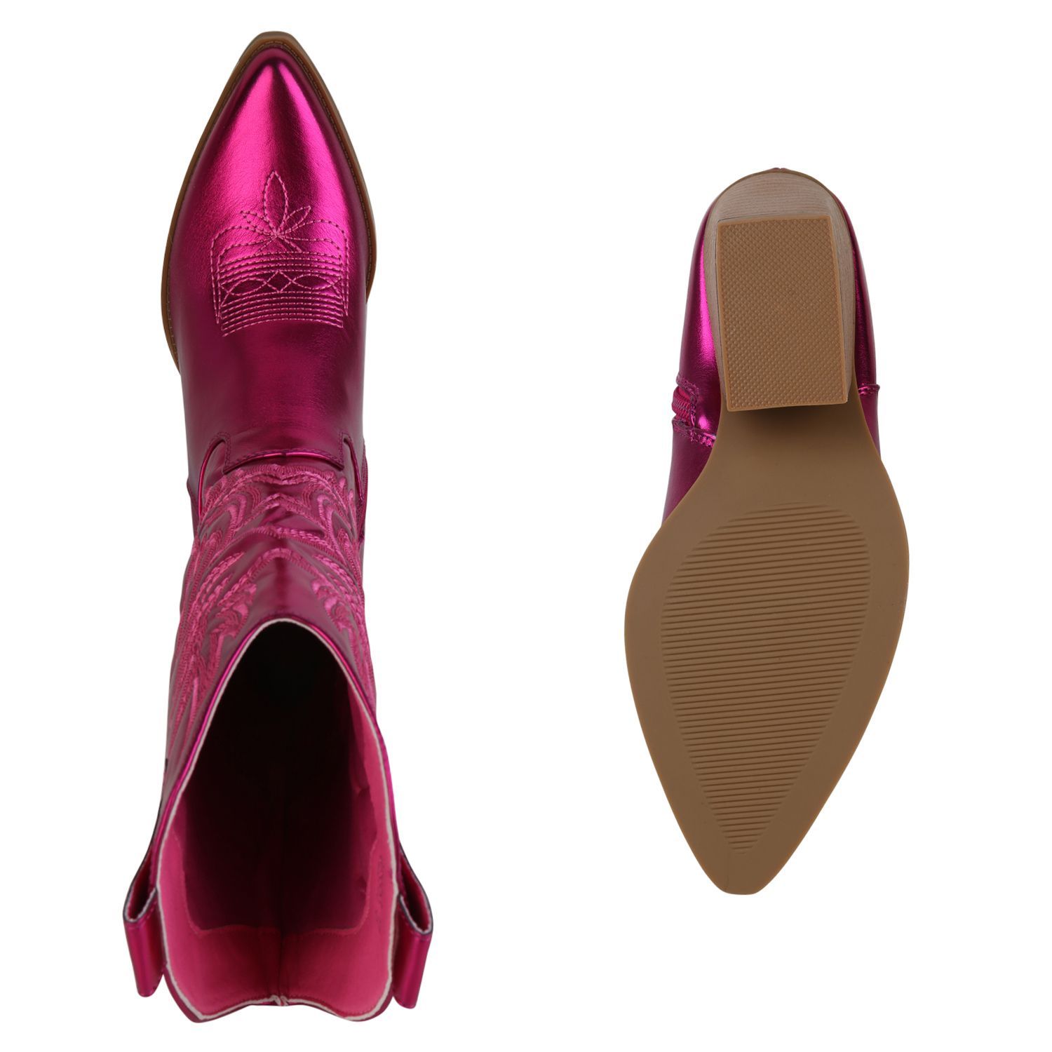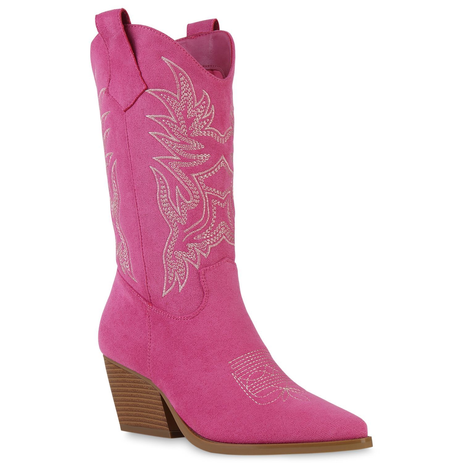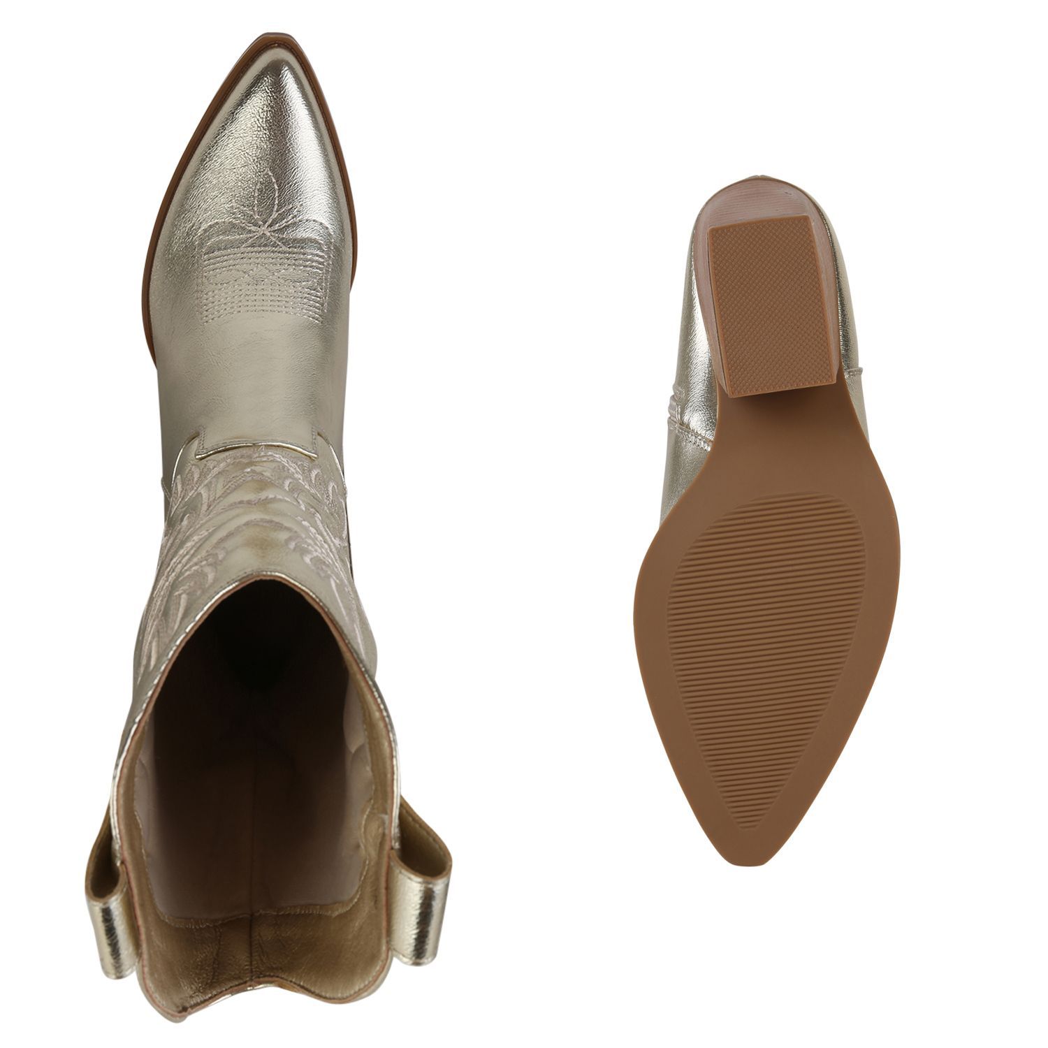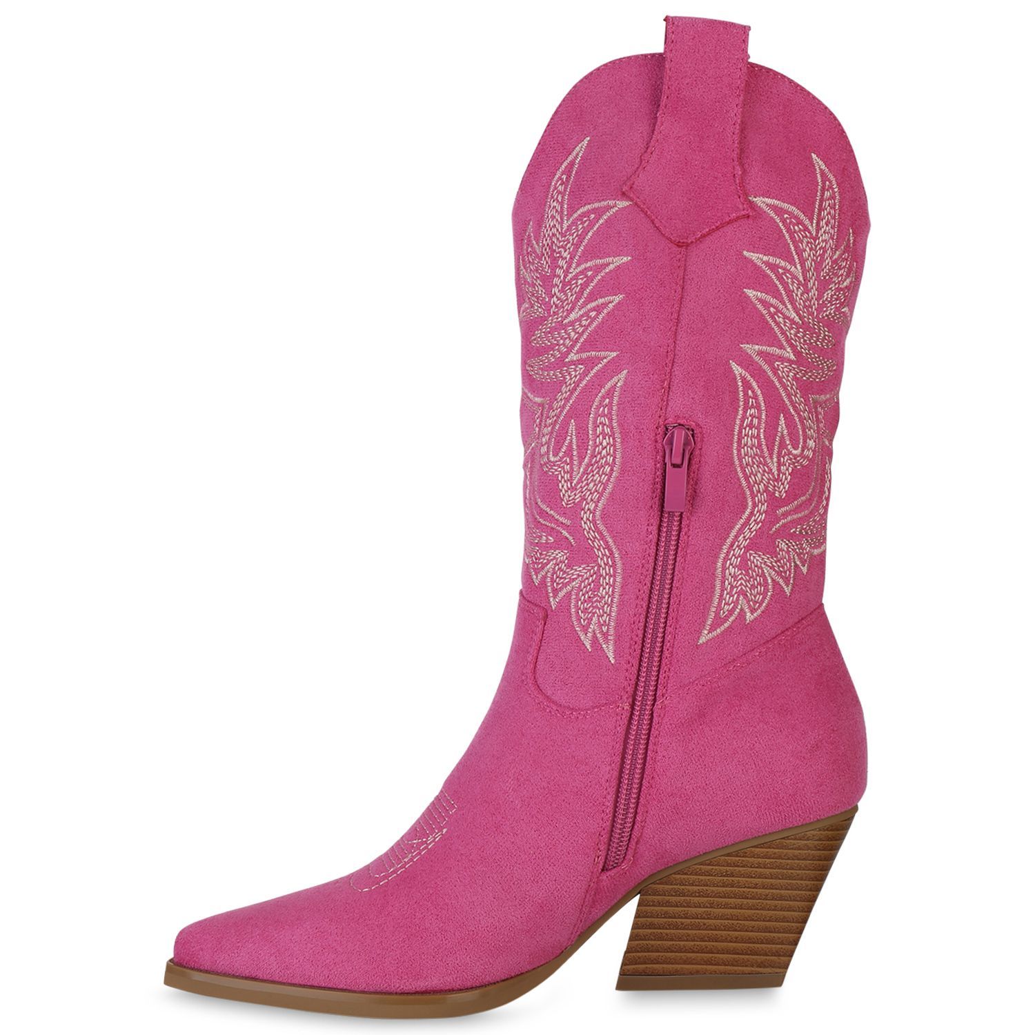 VAN HILL Damen Cowboystiefel Stiefel Stickereien Holzoptikabsatz Schuhe 840142