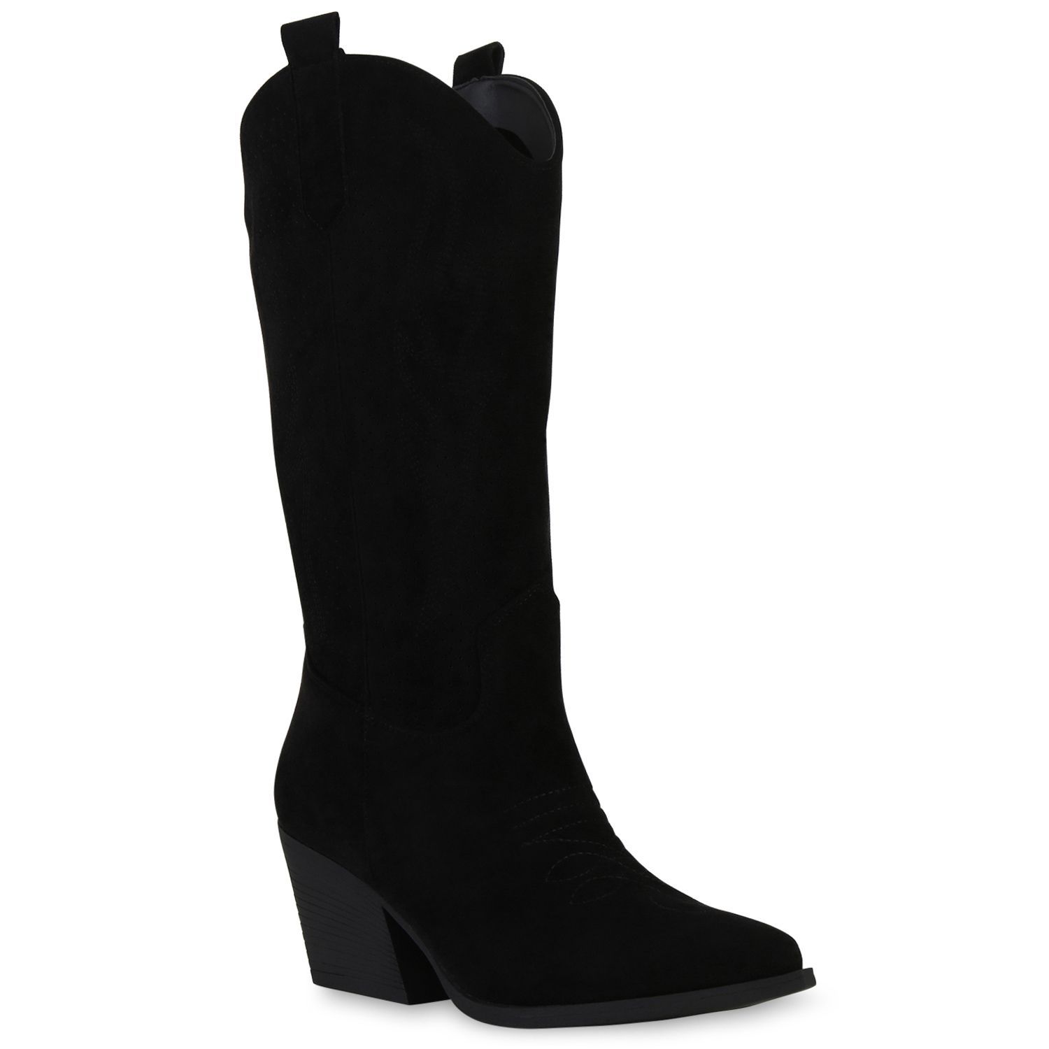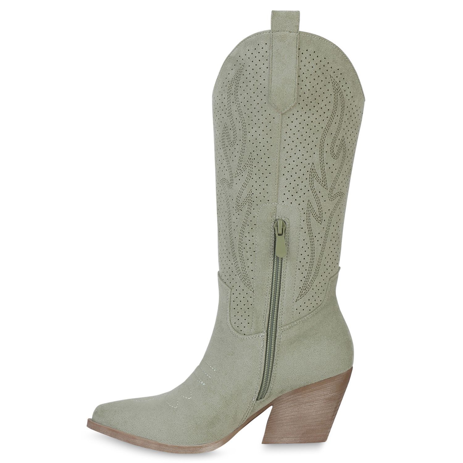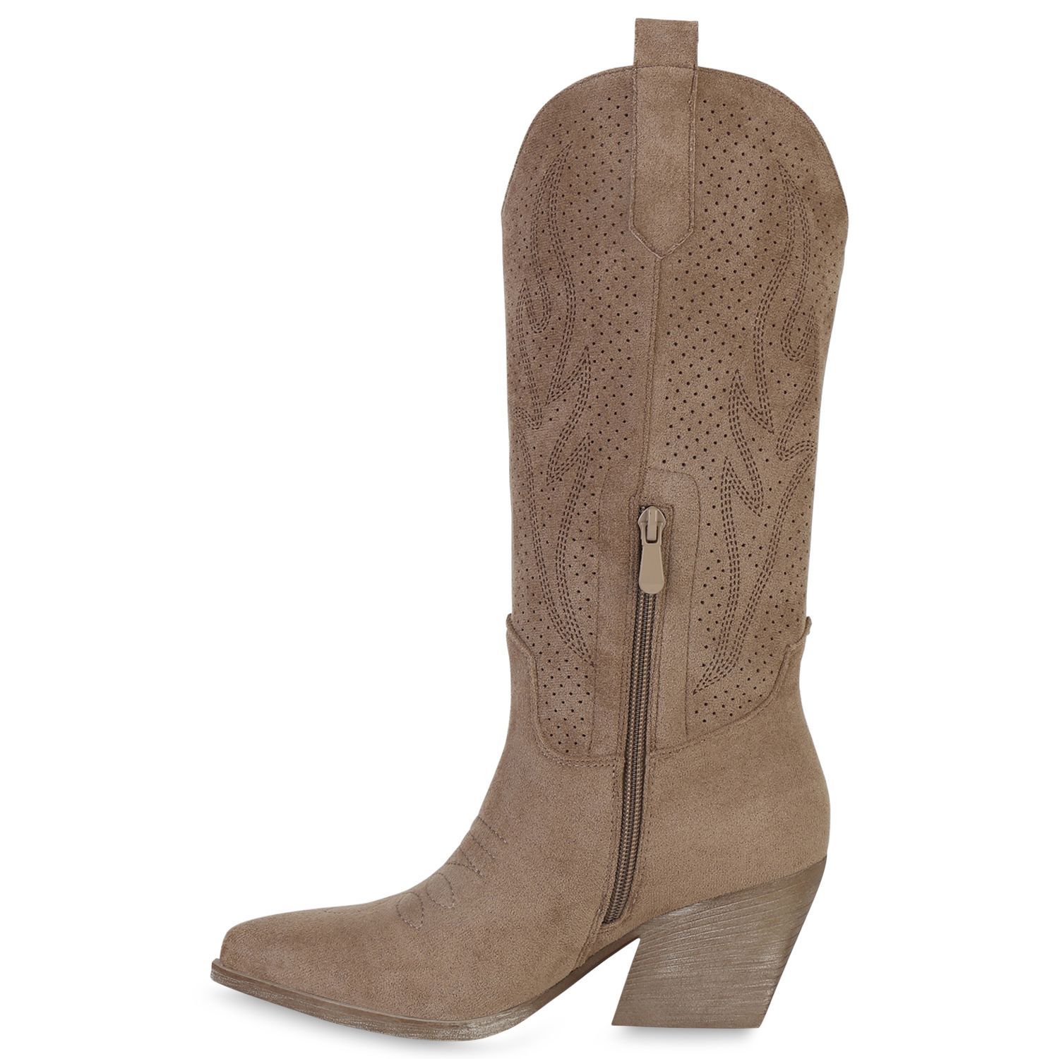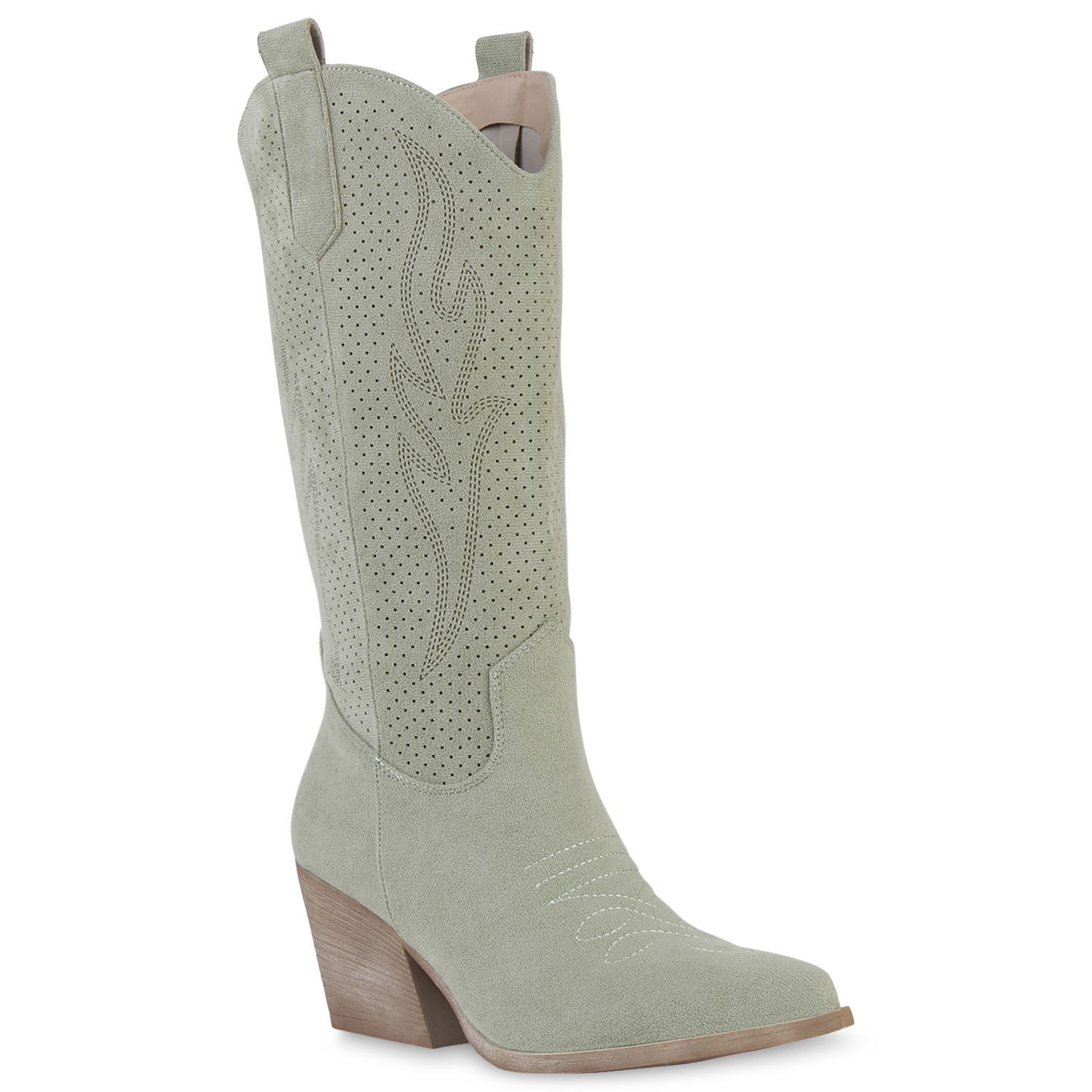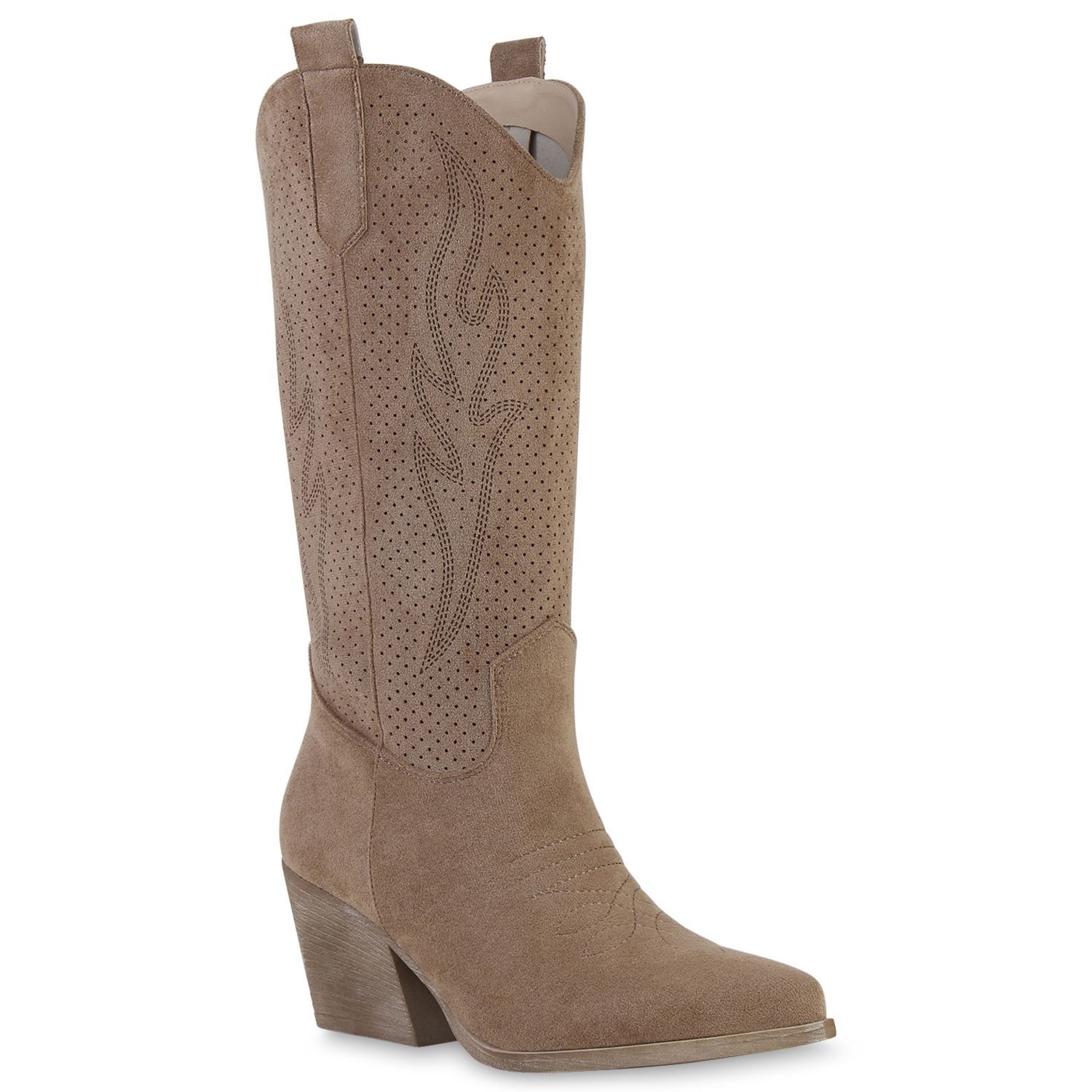 VAN HILL Damen Cowboystiefel Stiefel Stickereien Holzoptikabsatz Schuhe 840199