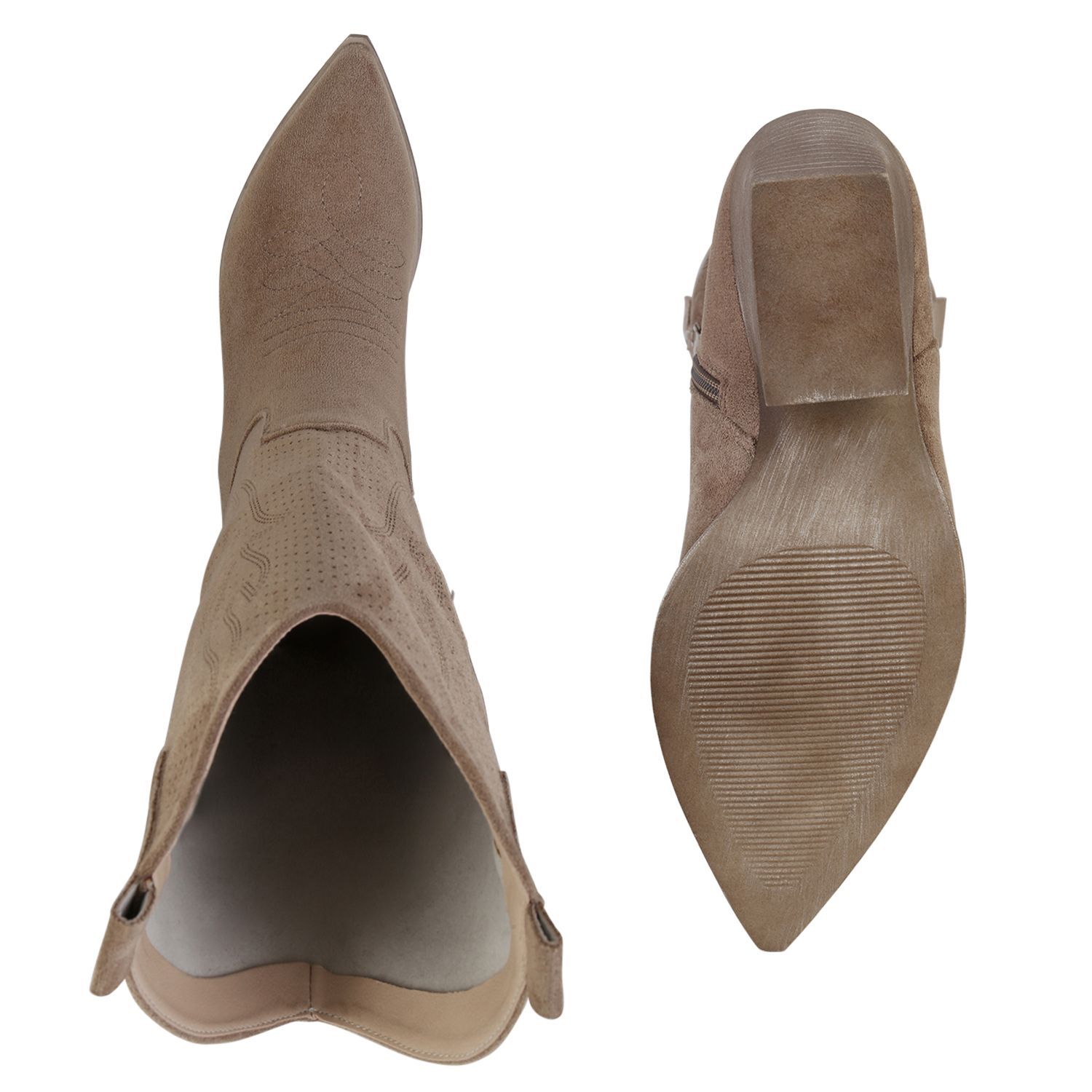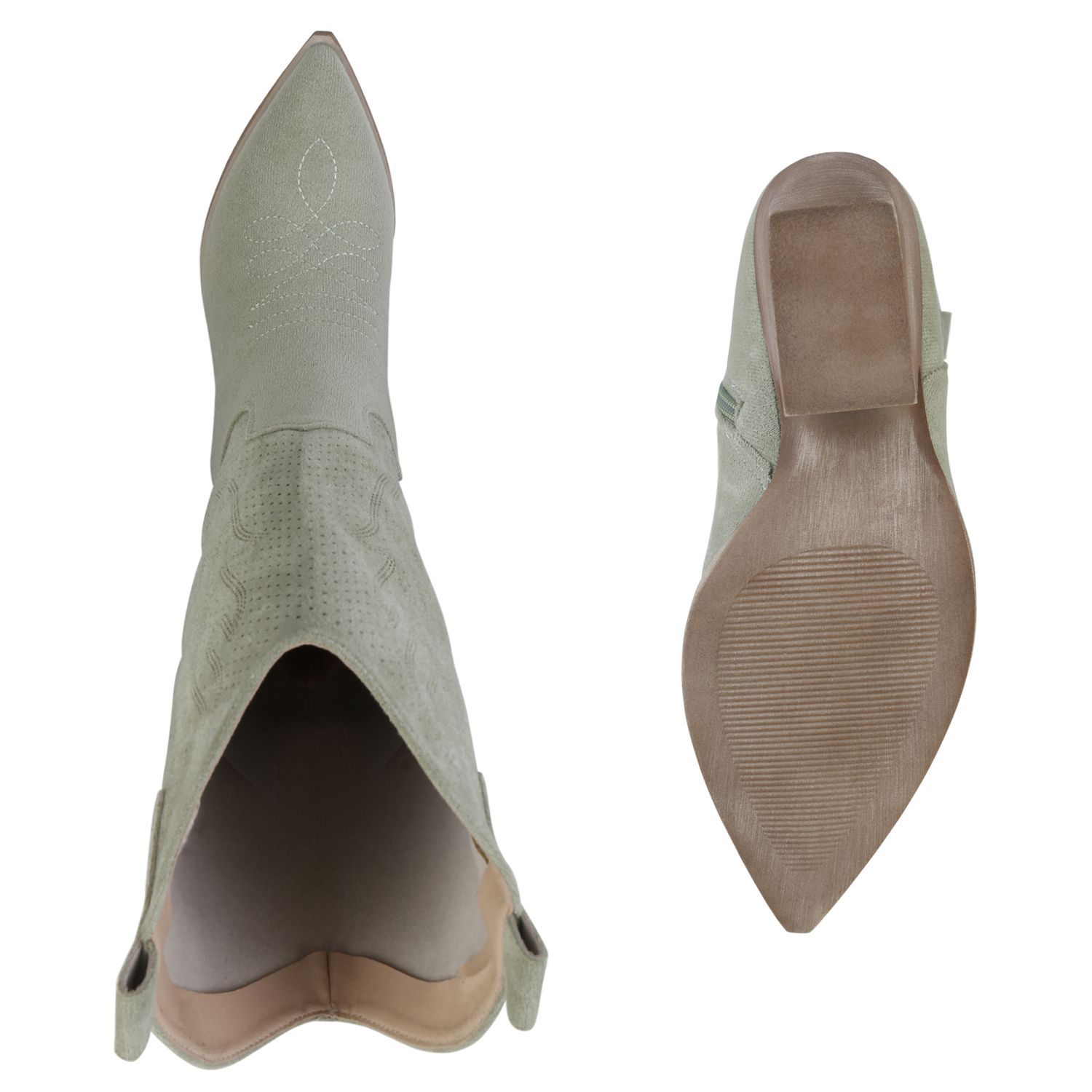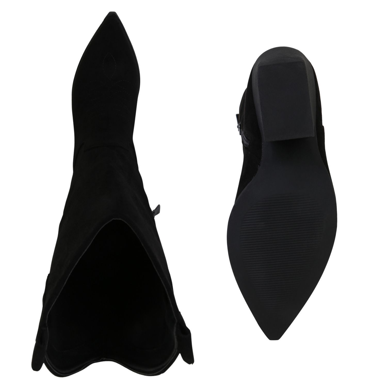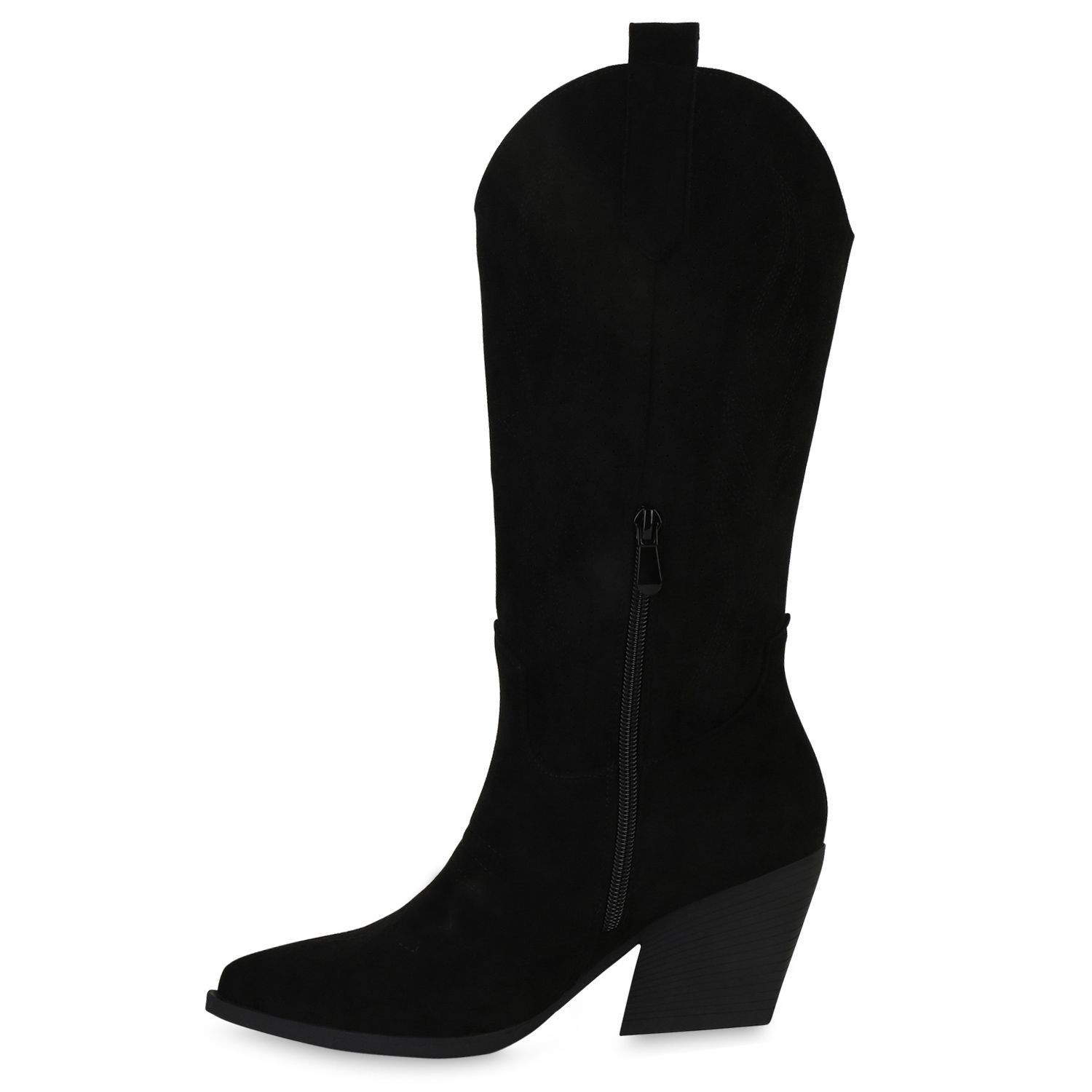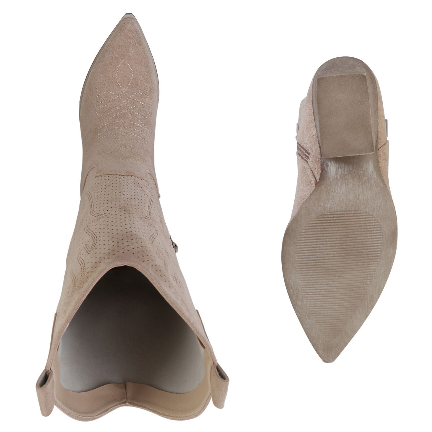 VAN HILL Damen Cowboystiefel Stiefel Stickereien Holzoptikabsatz Schuhe 840199
