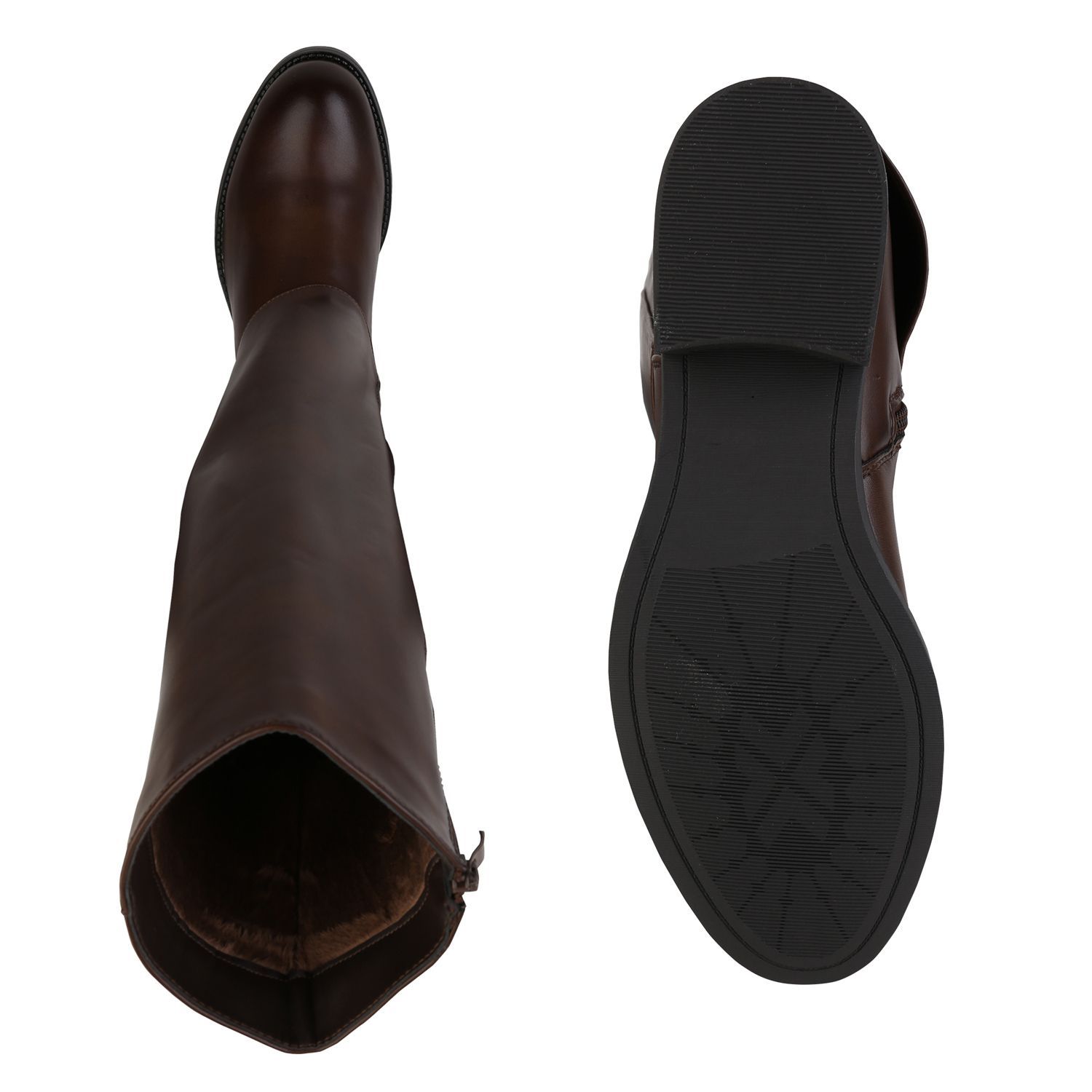 VAN HILL Damen Gefütterte Klassische Stiefel Leder-Optik Basic Schuhe 841330