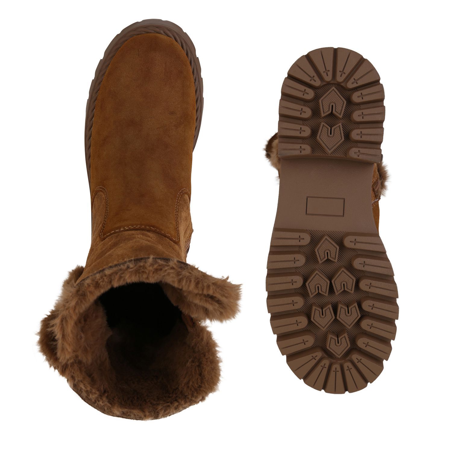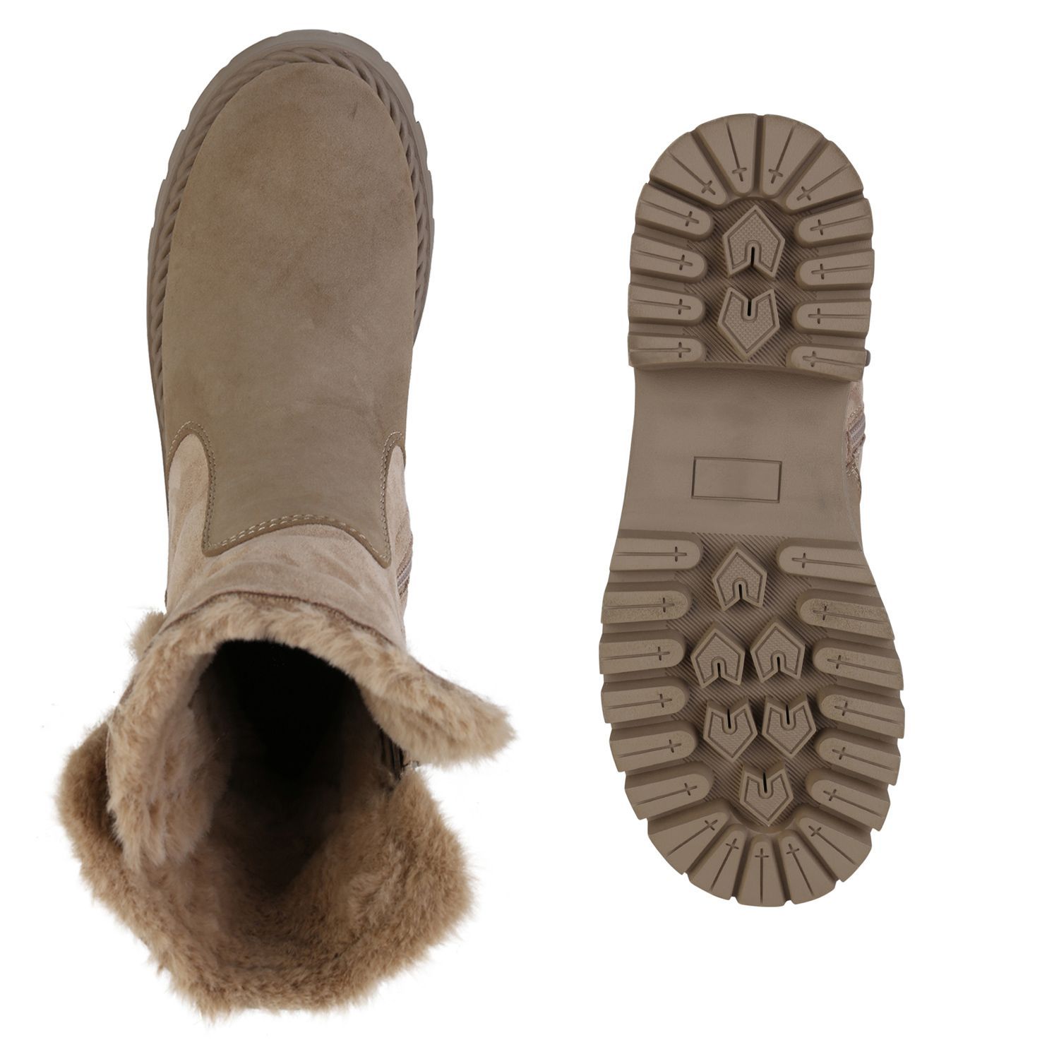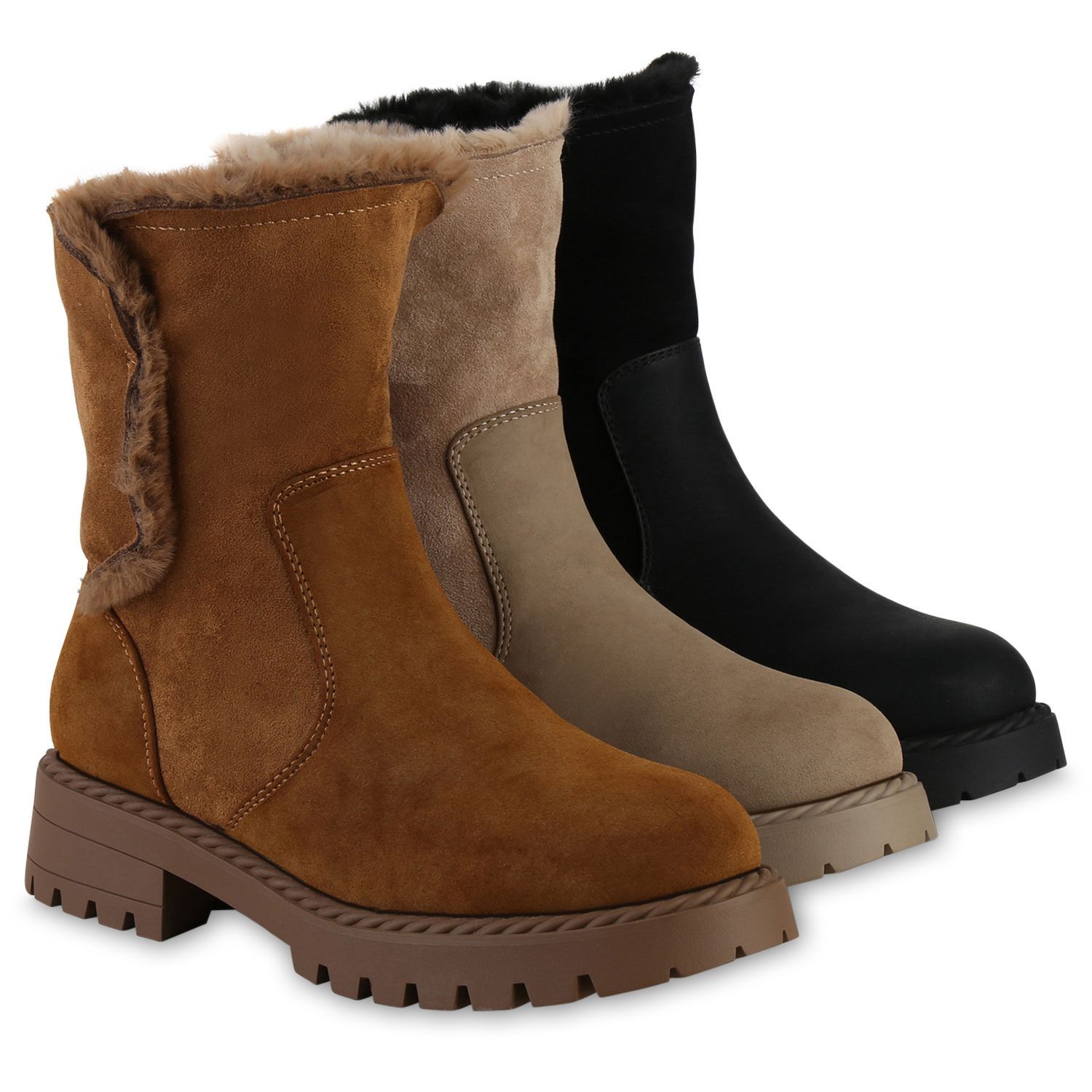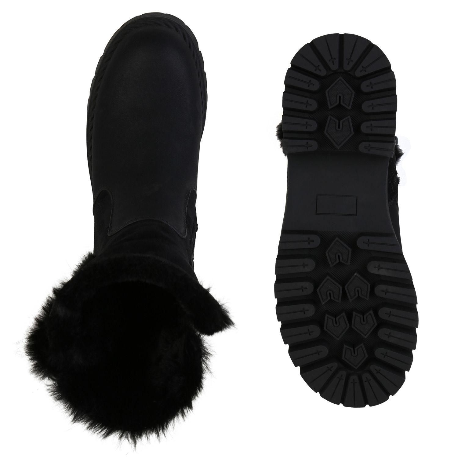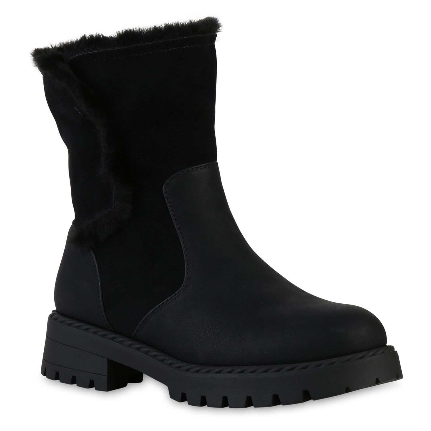 VAN HILL Damen Gefütterte Klassische Stiefeletten Kunstfell Plateau-Schuhe 841338