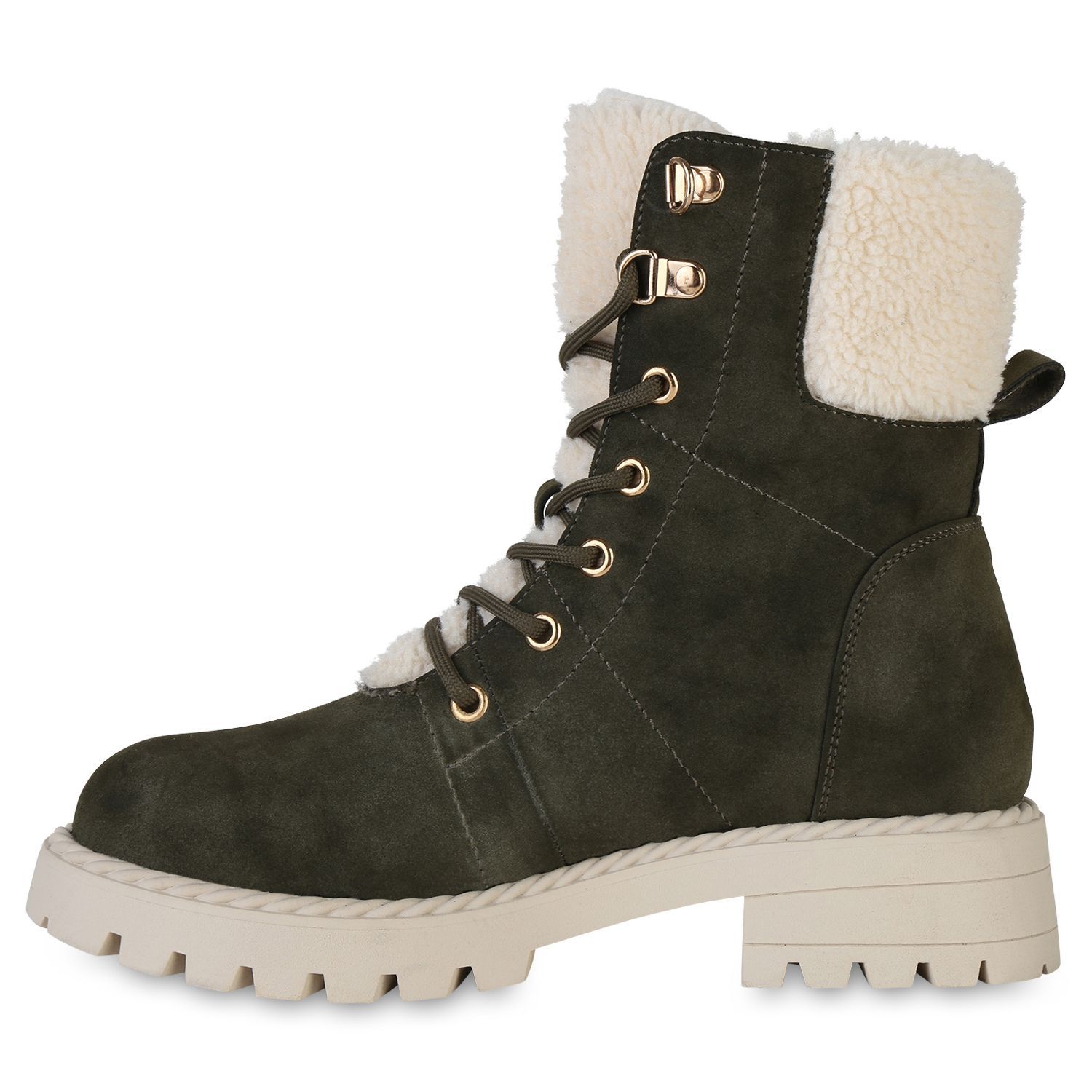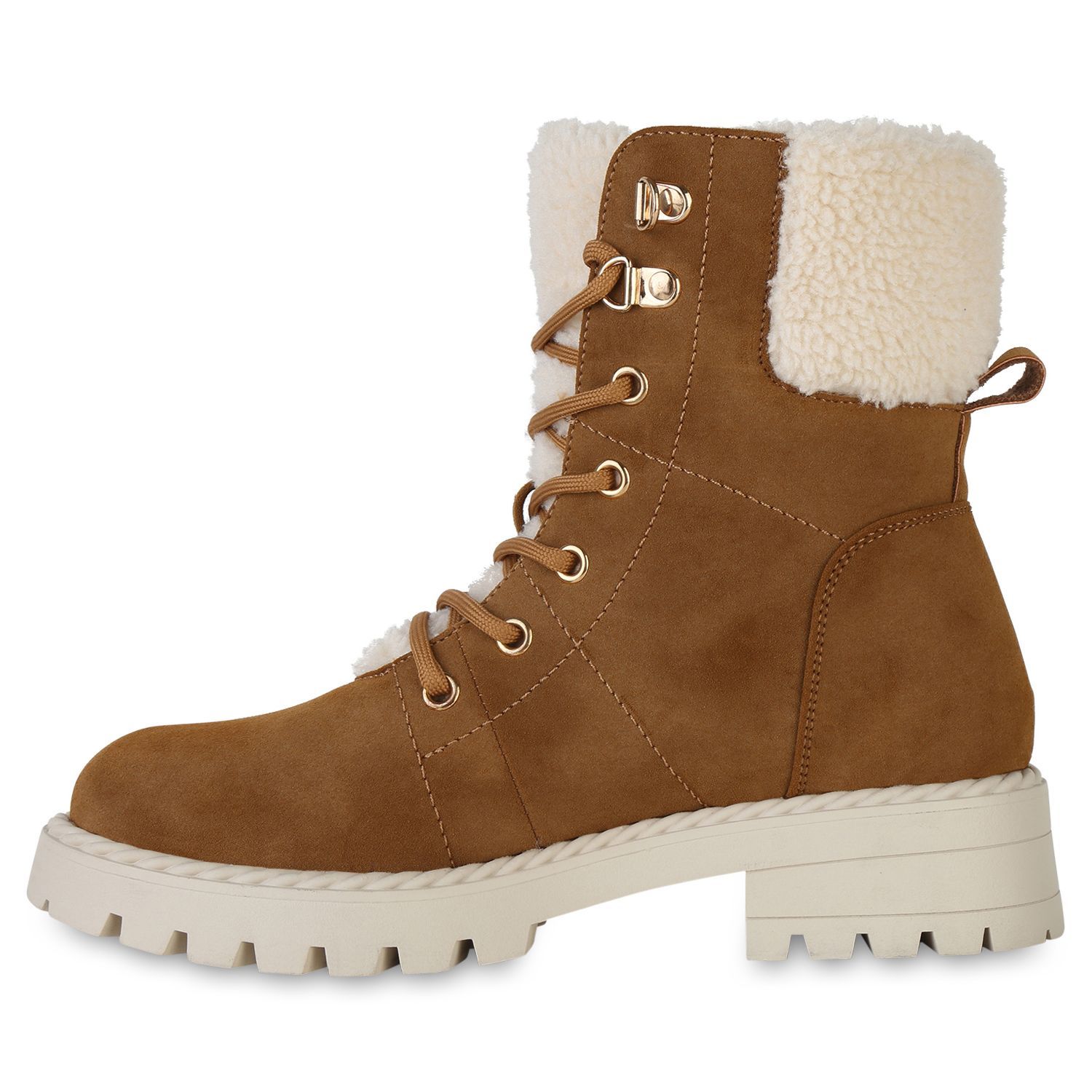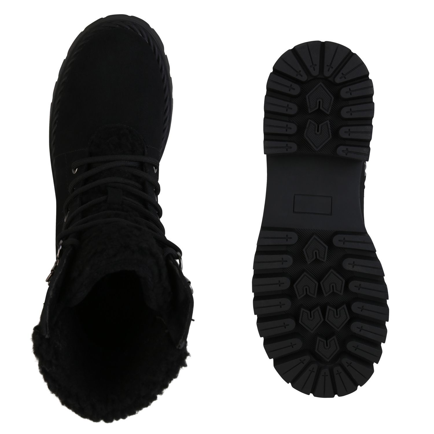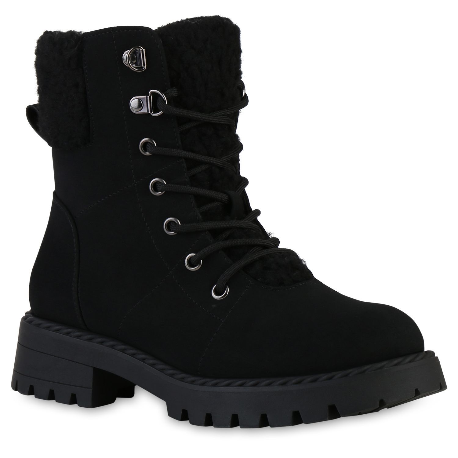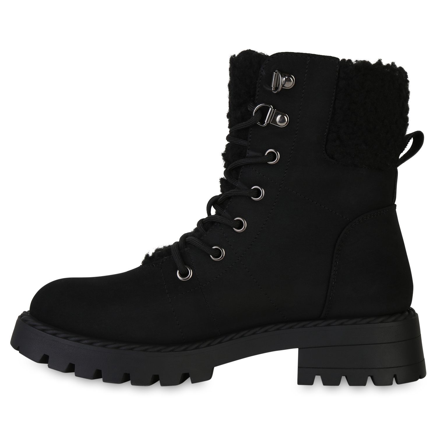 VAN HILL Damen Gefütterte Schnürstiefeletten Bequem Kunstfell Winter Schuhe 841345