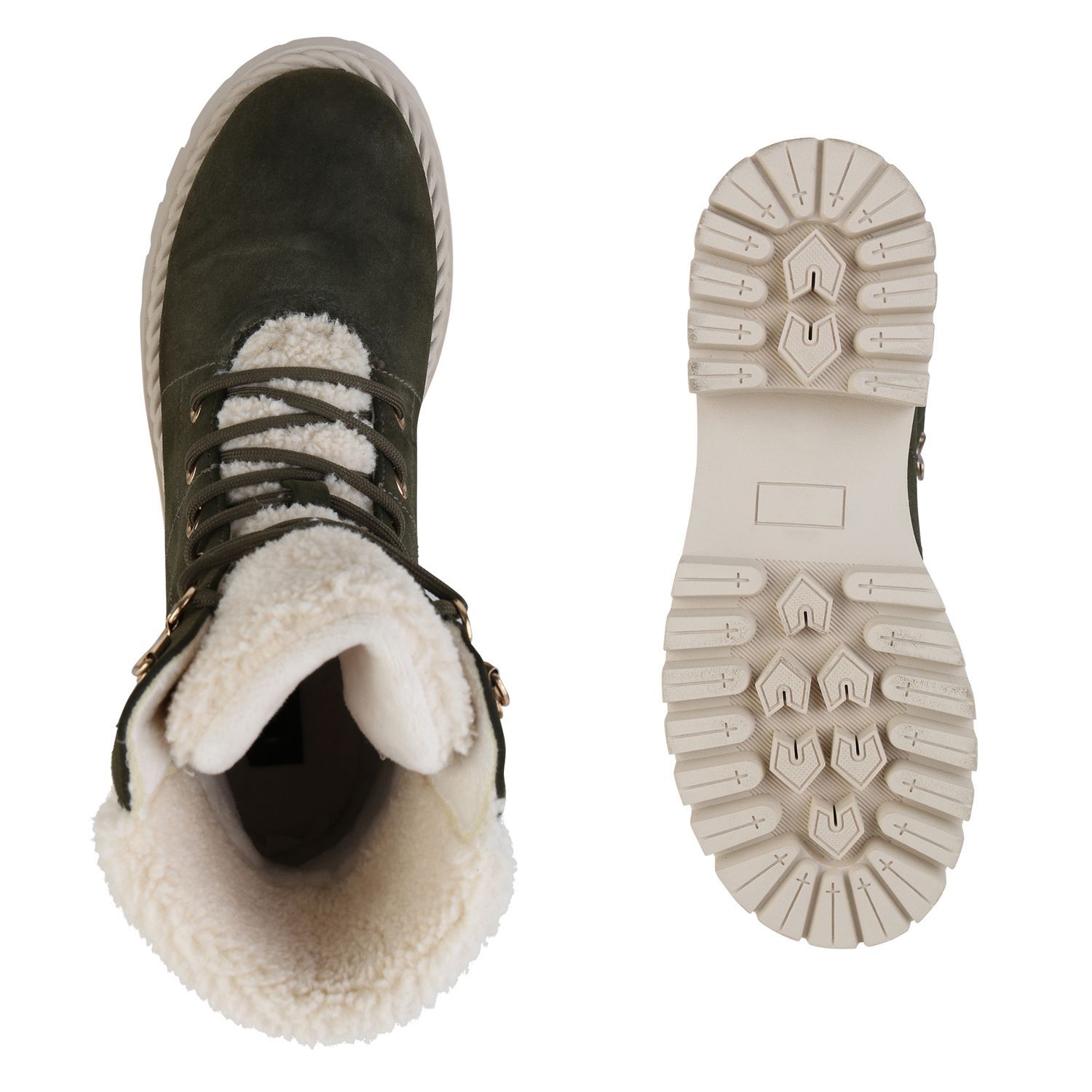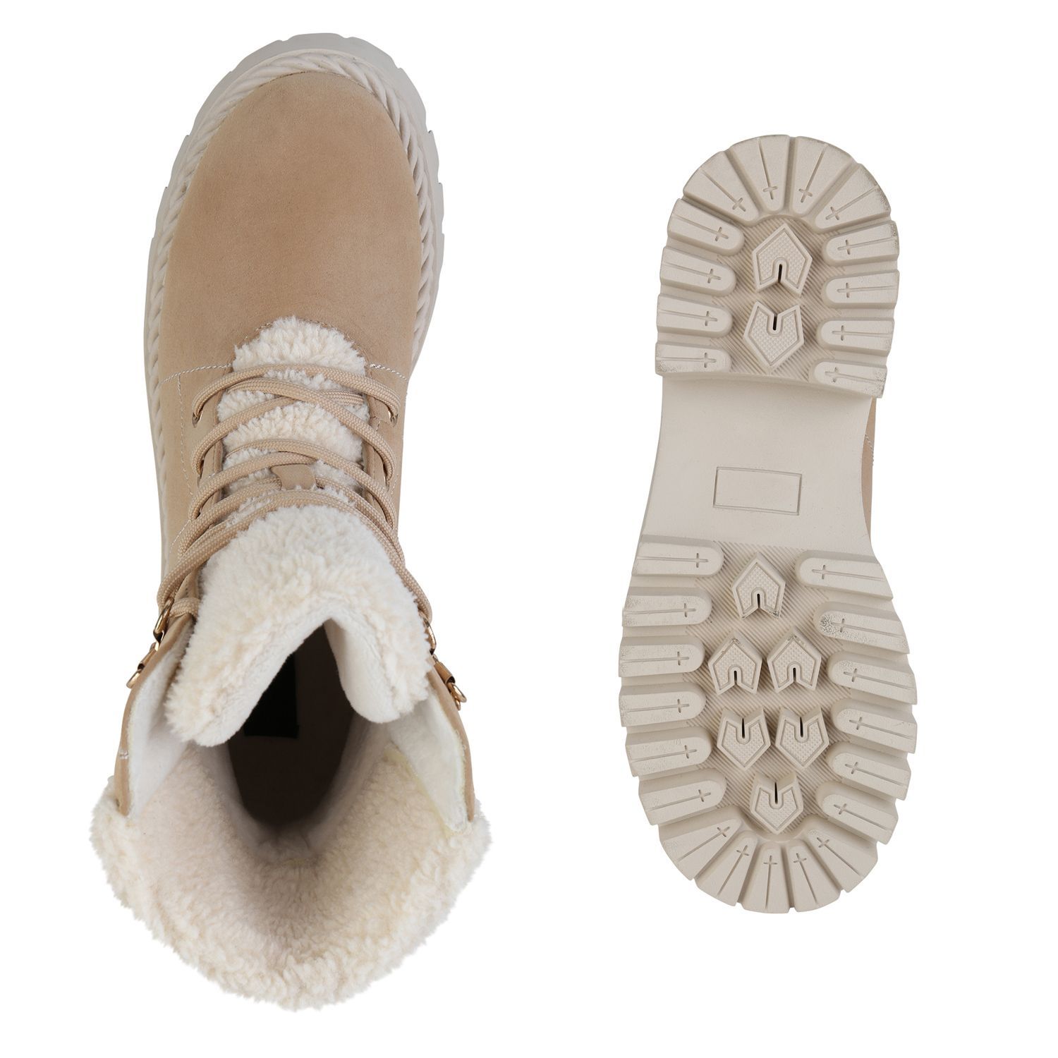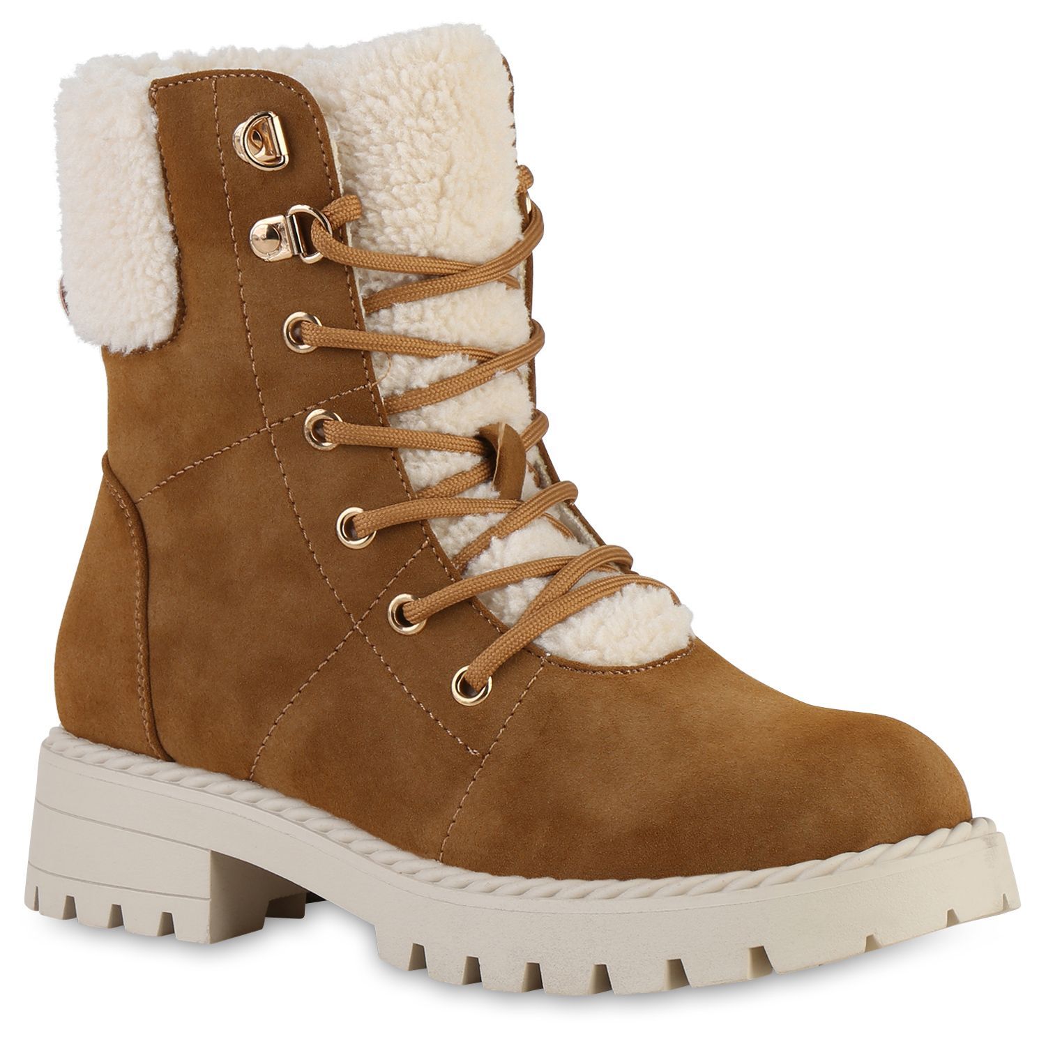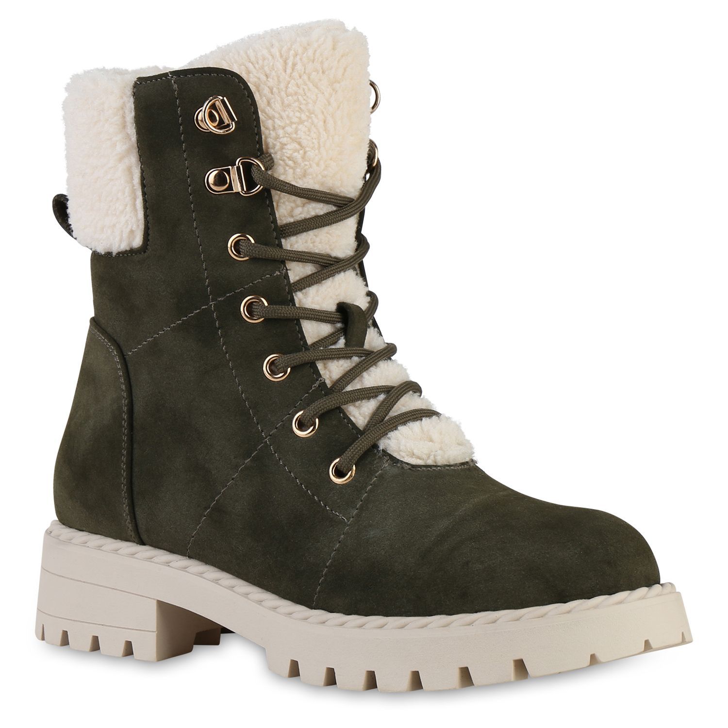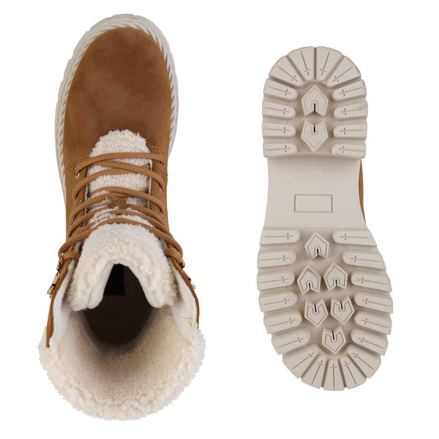 VAN HILL Damen Gefütterte Schnürstiefeletten Bequem Kunstfell Winter Schuhe 841345