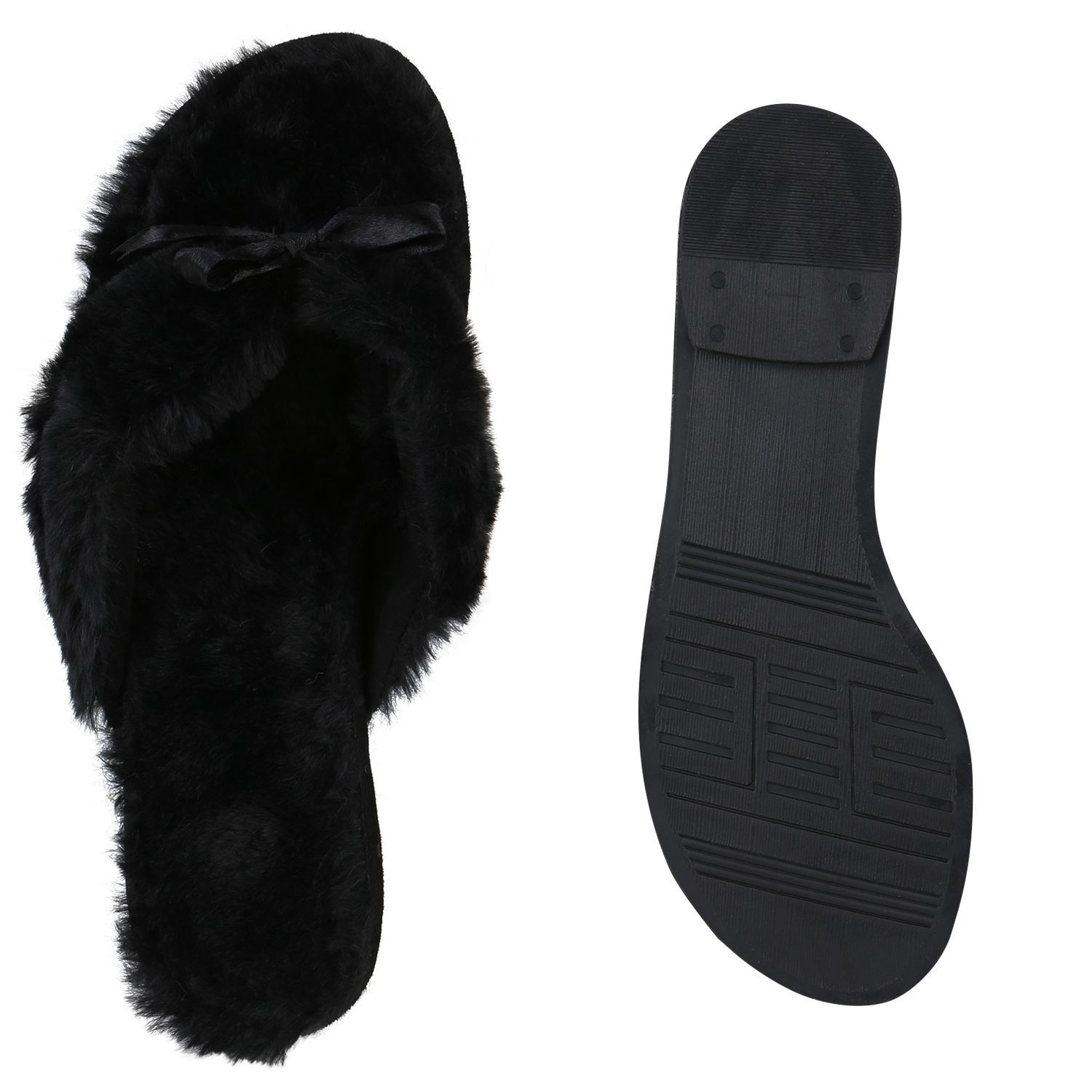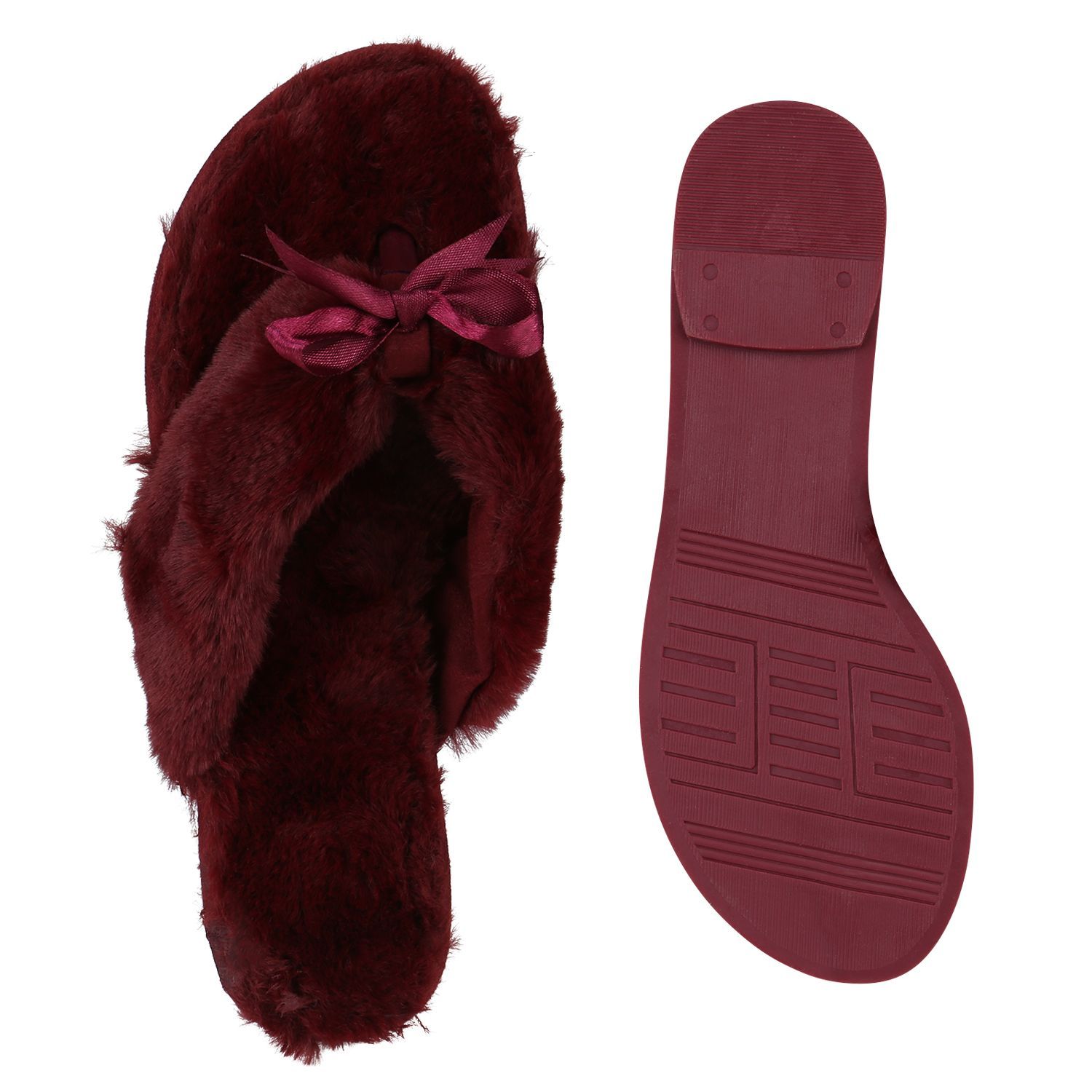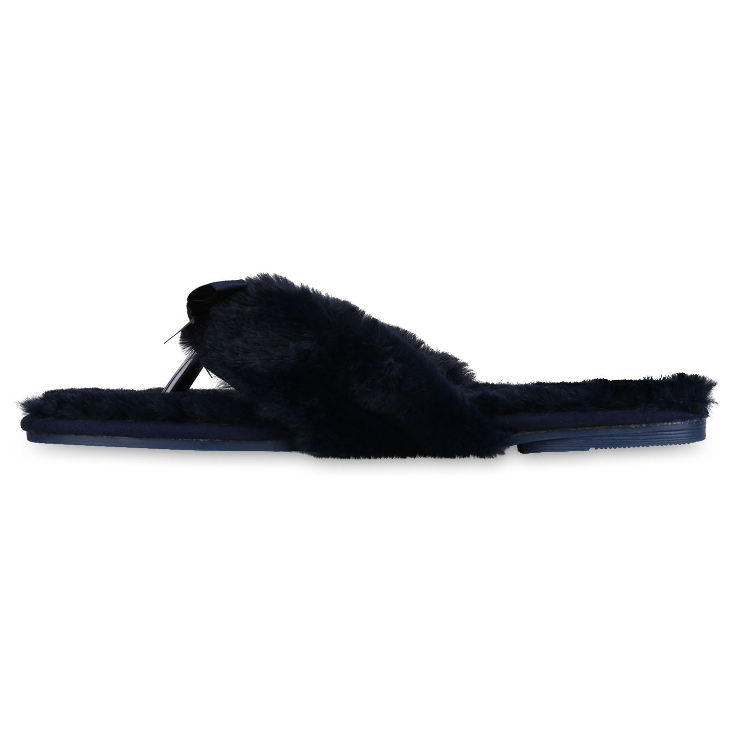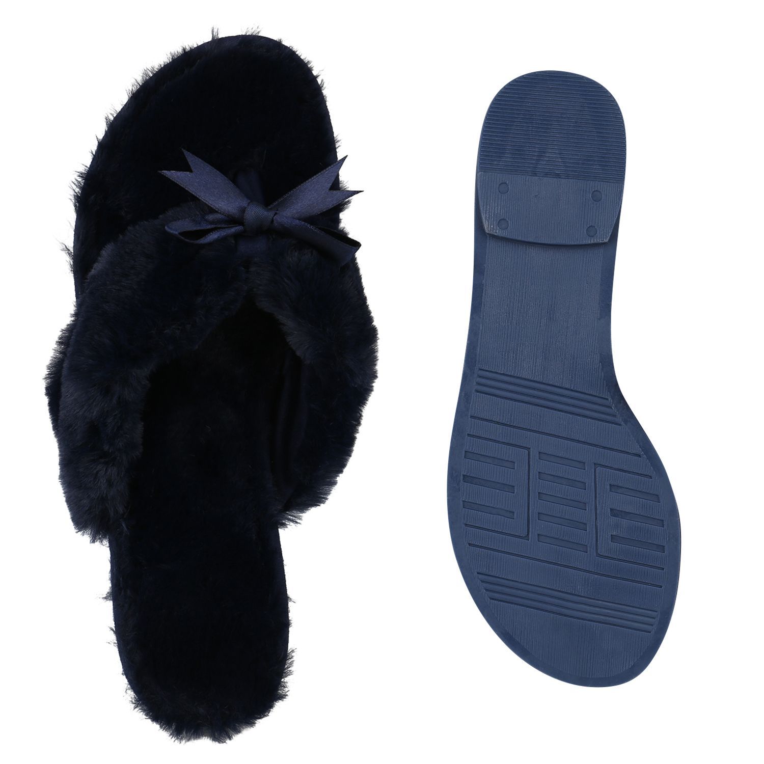 VAN HILL Damen Hausschuhe Warm Gefütterte Sandalen Zehentrenner Schleifen 818526