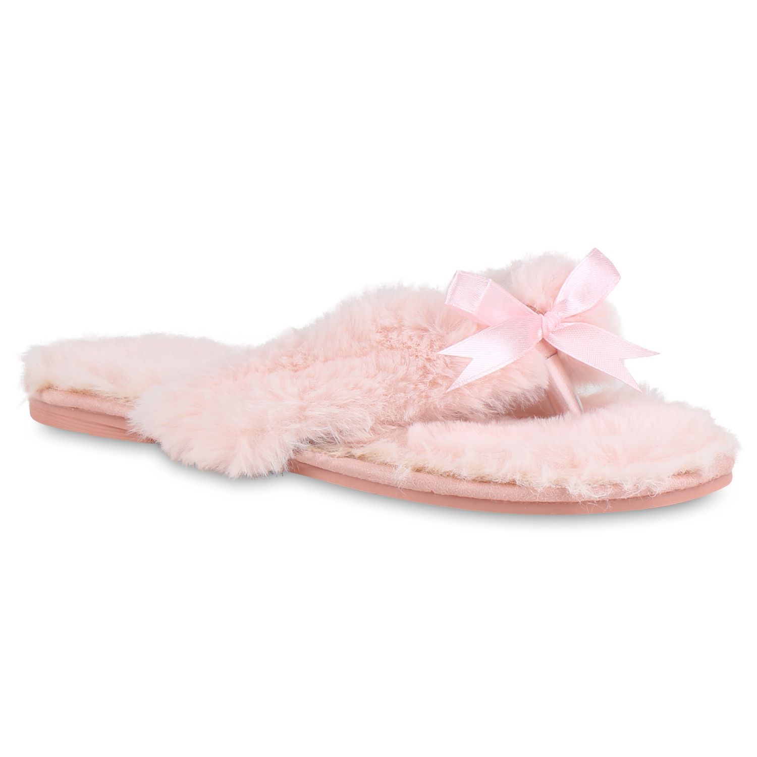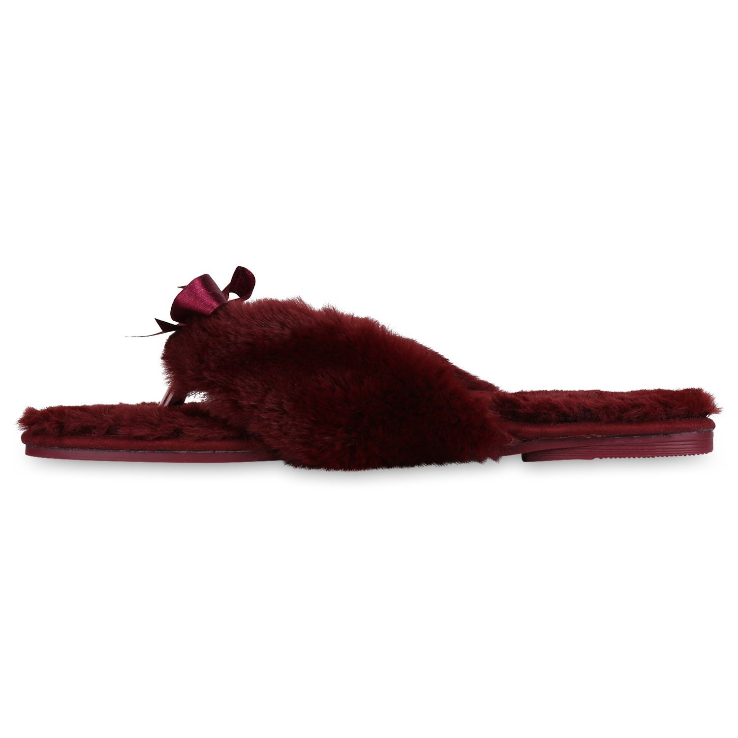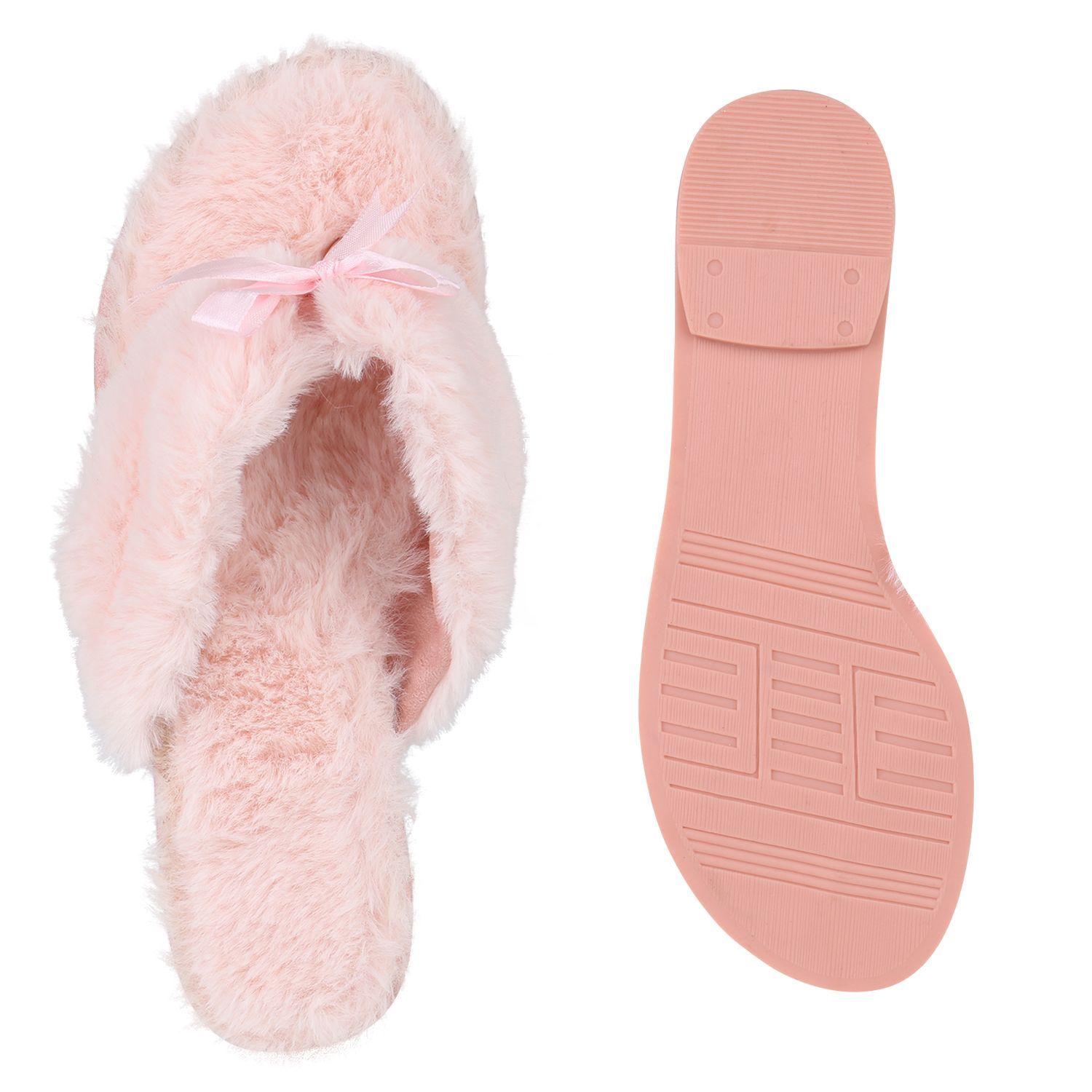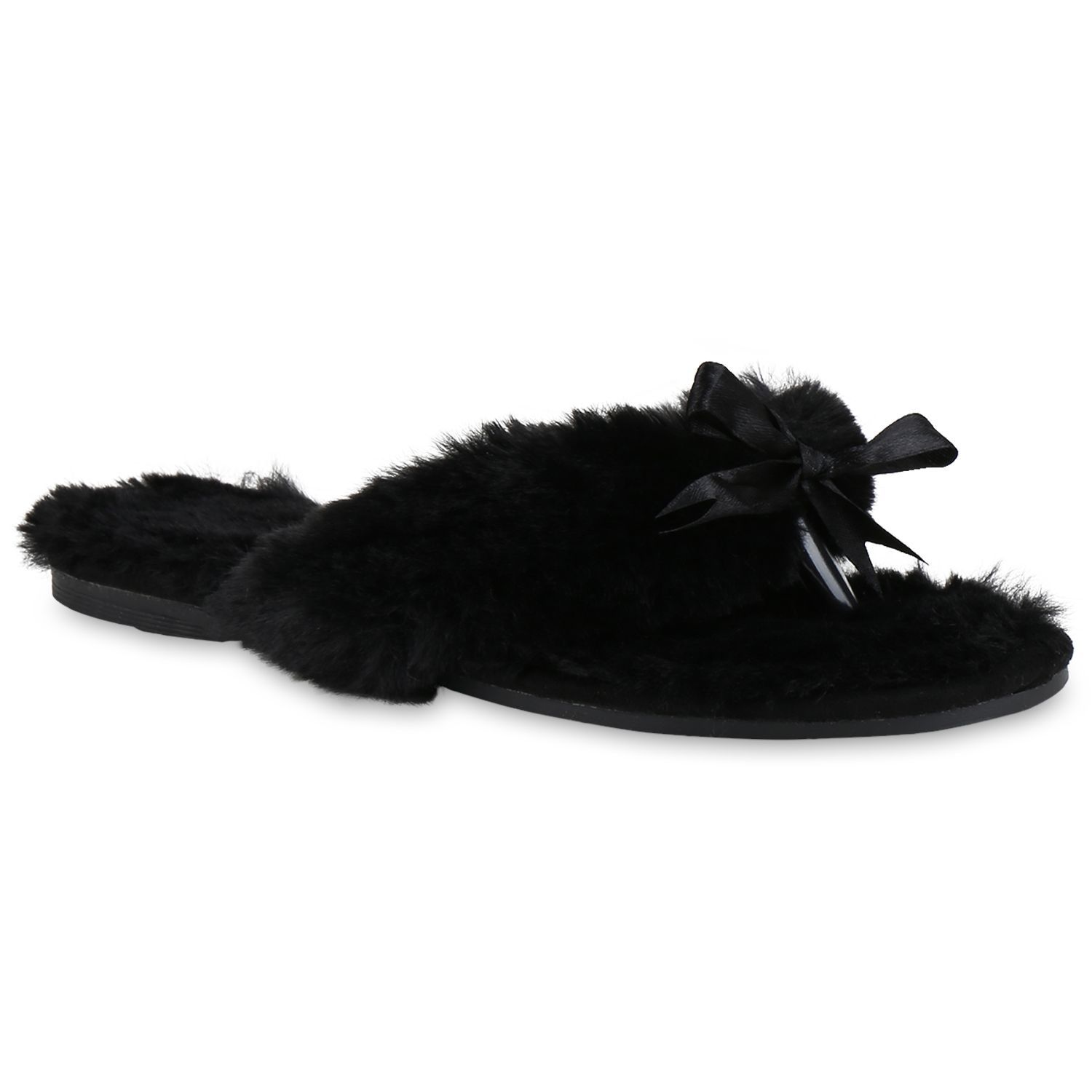 VAN HILL Damen Hausschuhe Warm Gefütterte Sandalen Zehentrenner Schleifen 818526