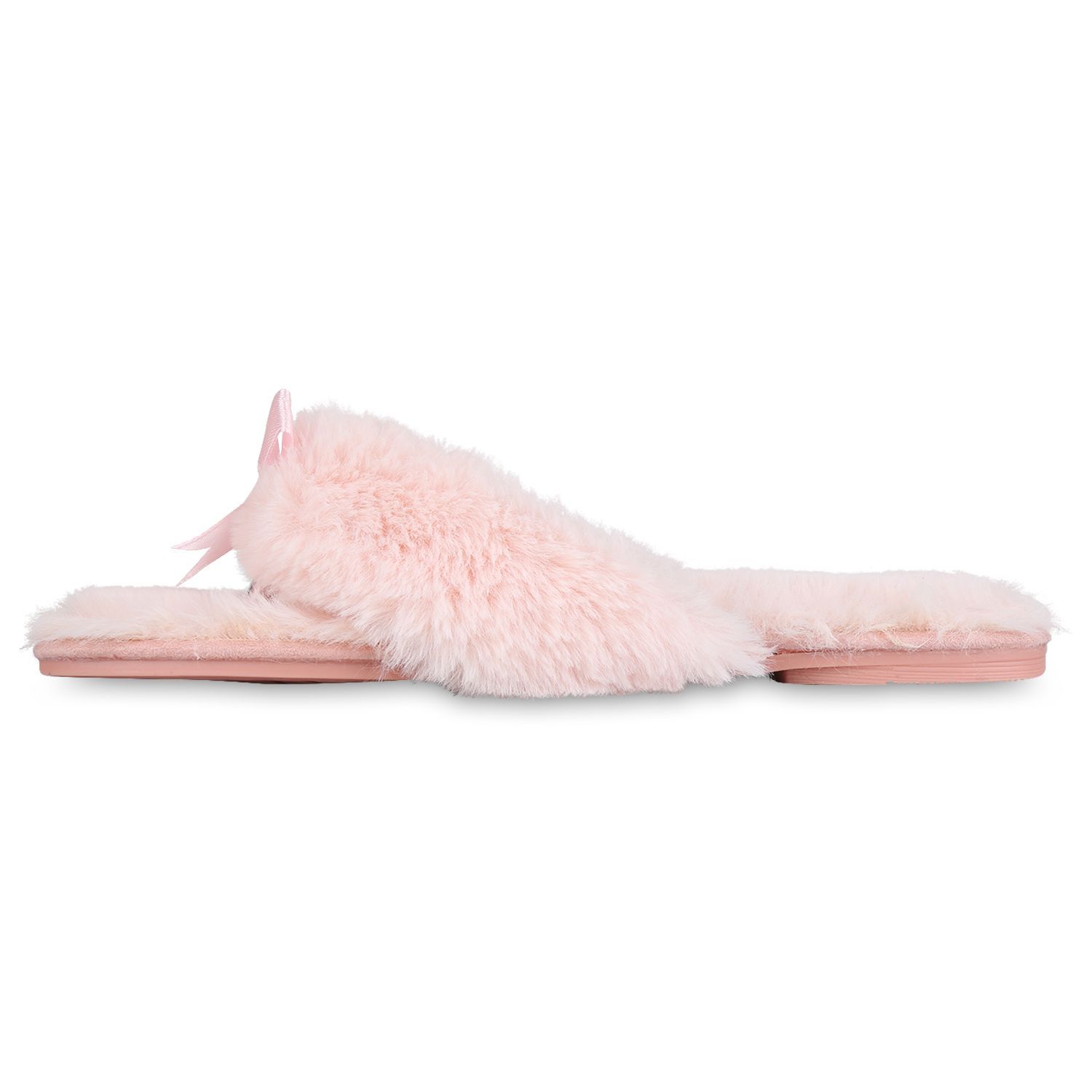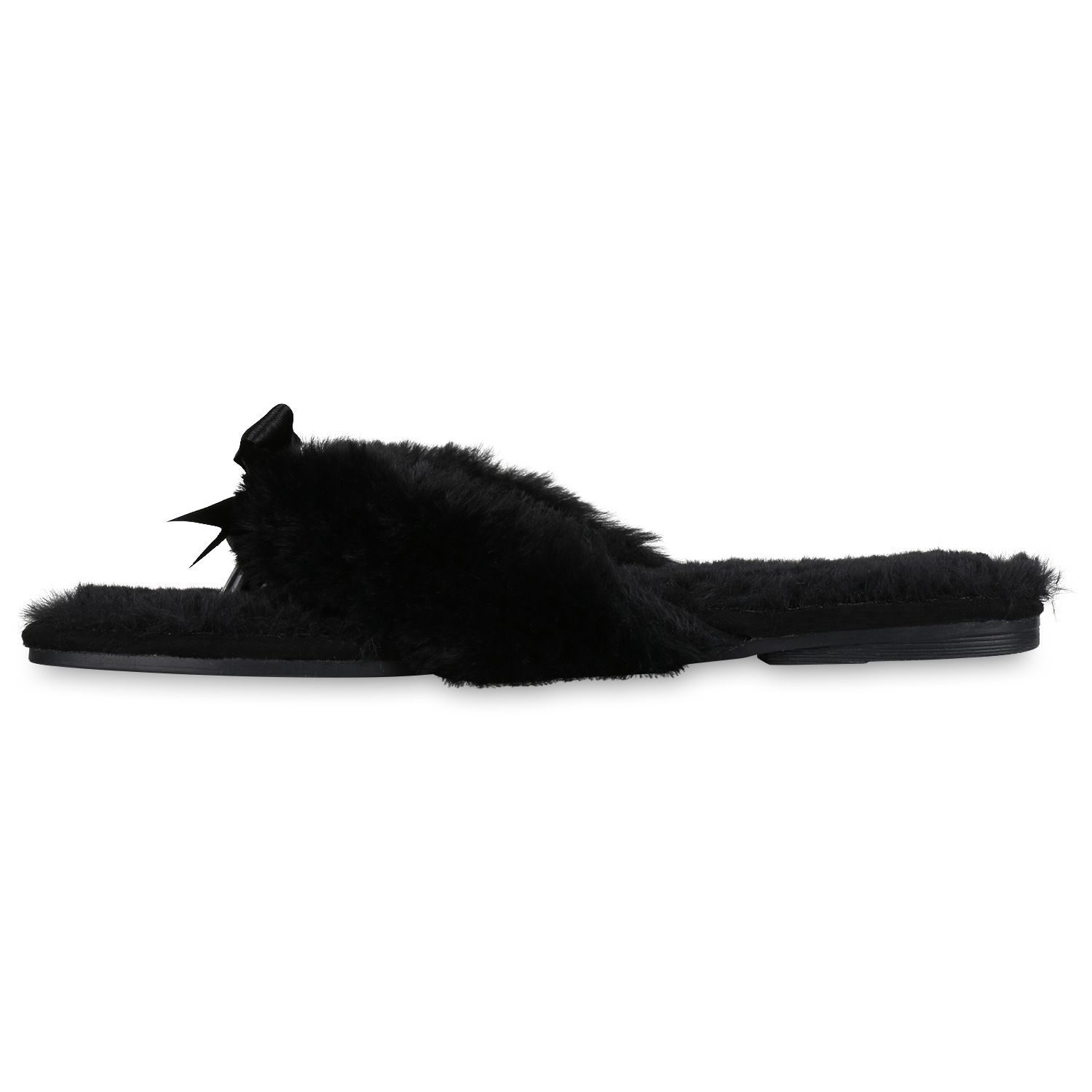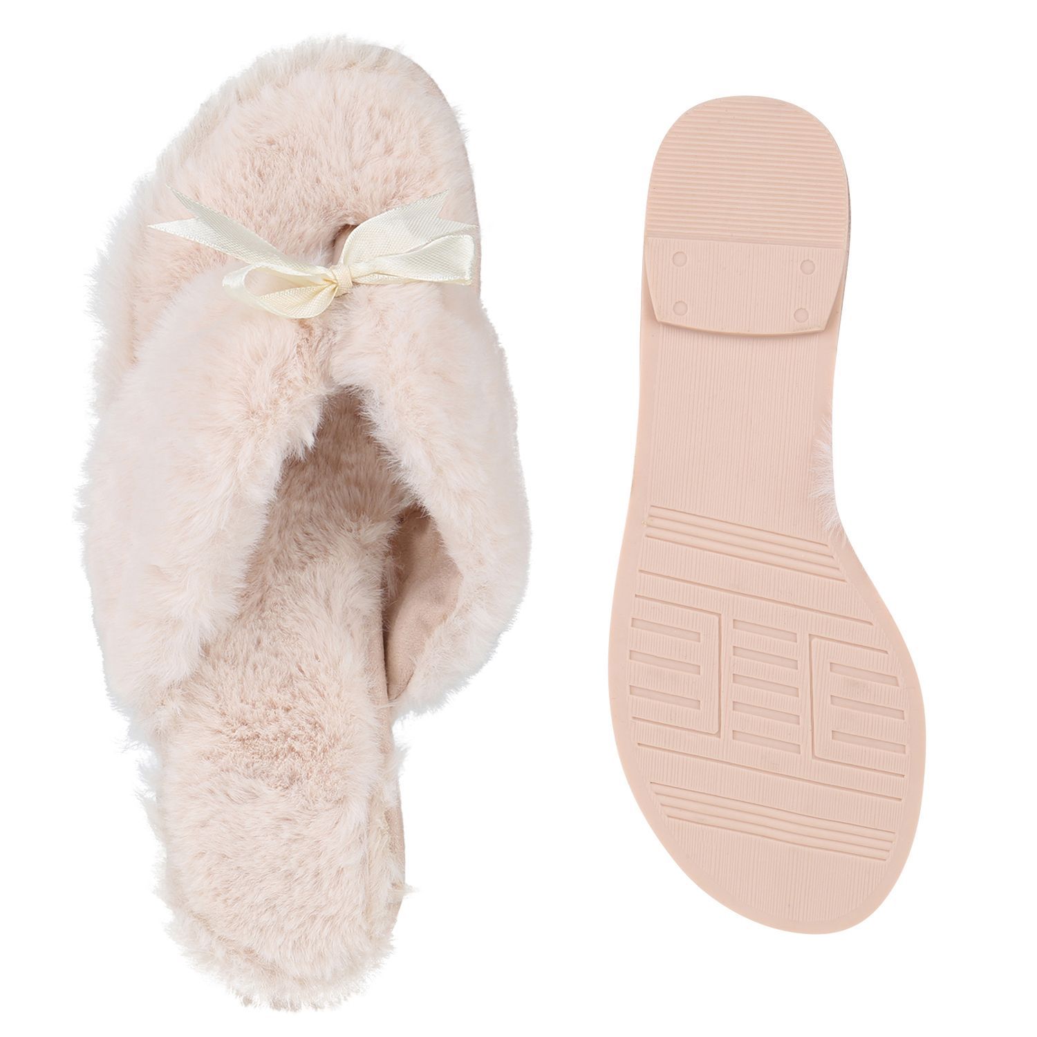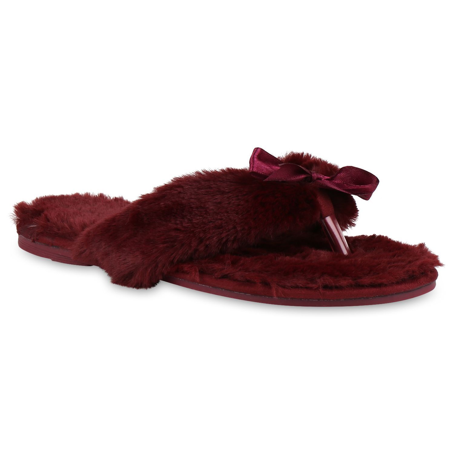 VAN HILL Damen Hausschuhe Warm Gefütterte Sandalen Zehentrenner Schleifen 818526