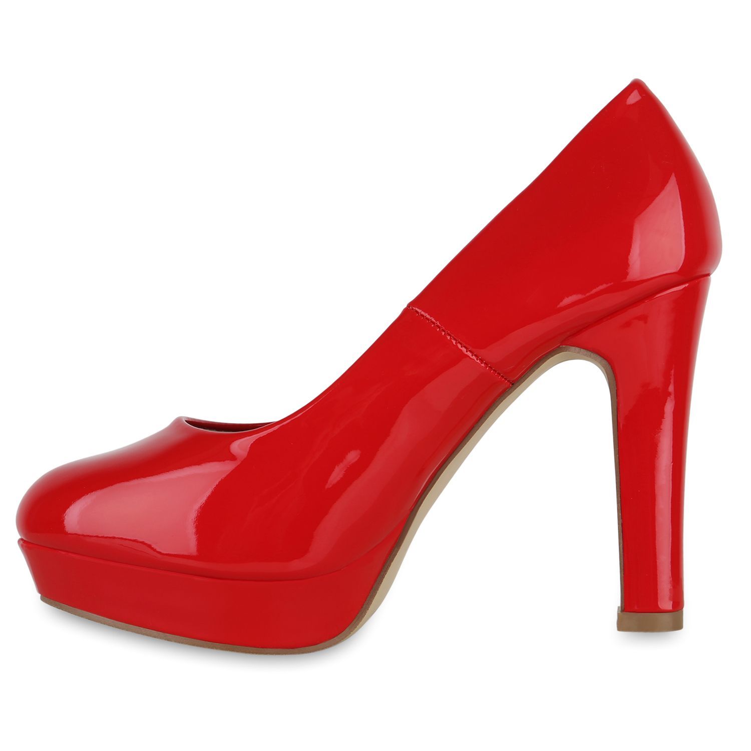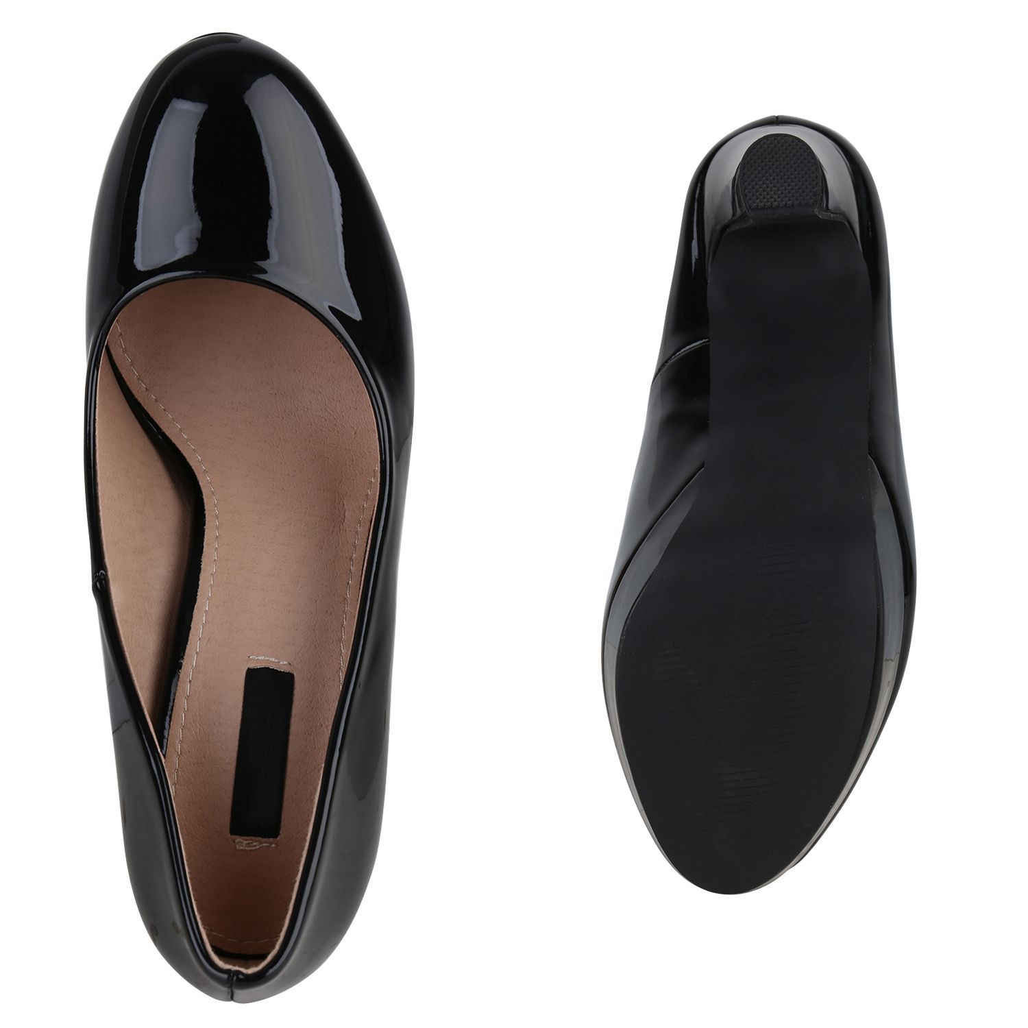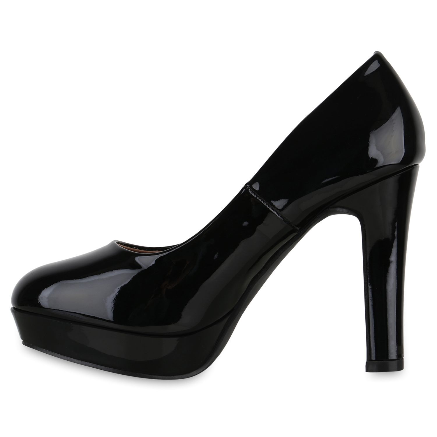 VAN HILL Damen Klassische Pumps Stiletto Plateau Vorne Lack Schuhe 840023