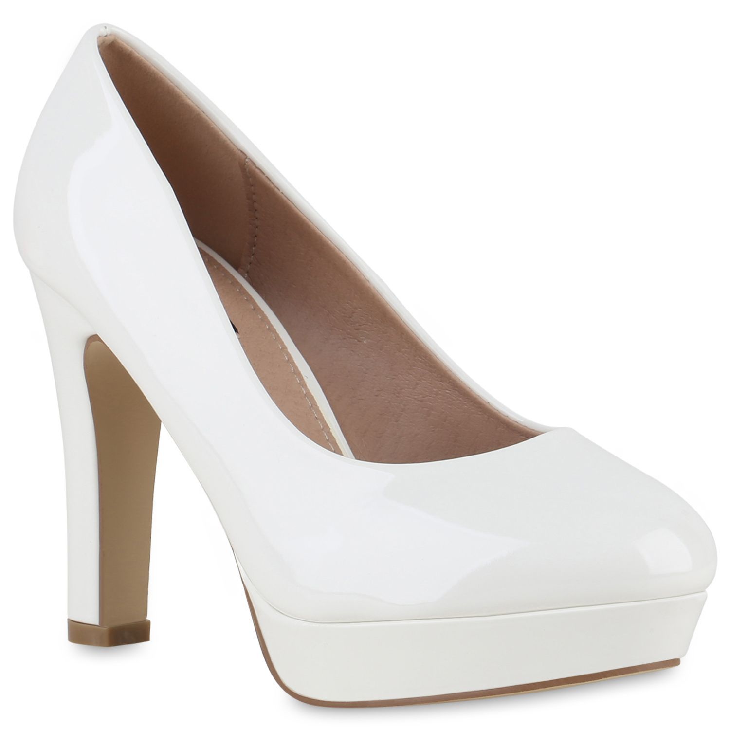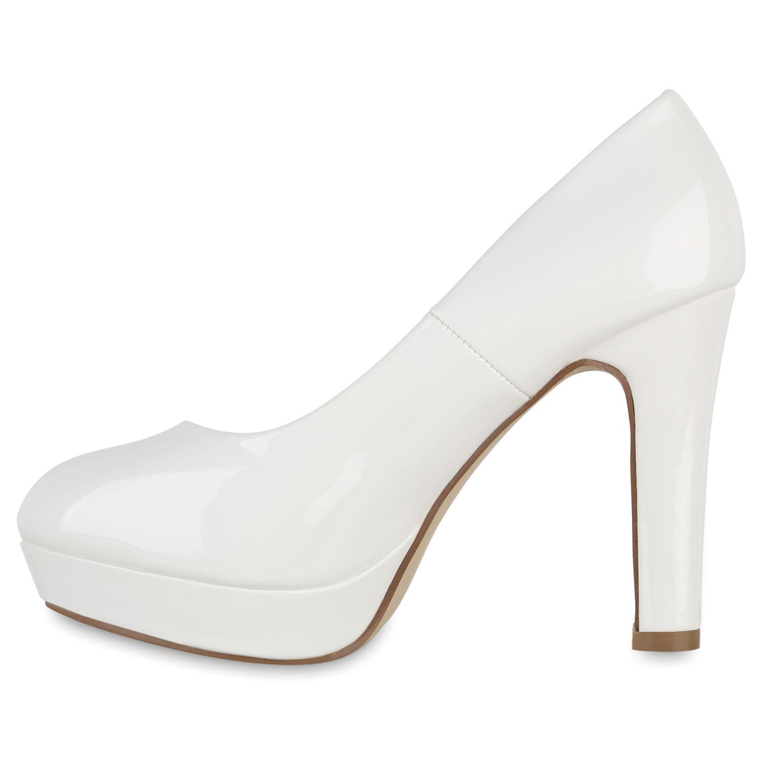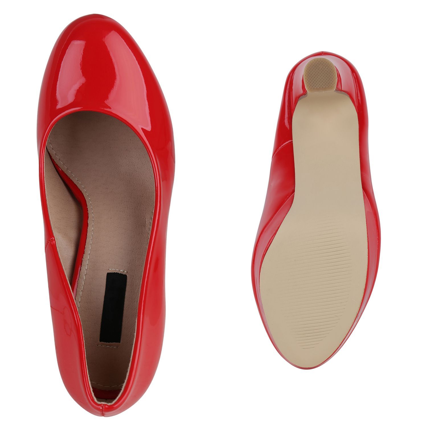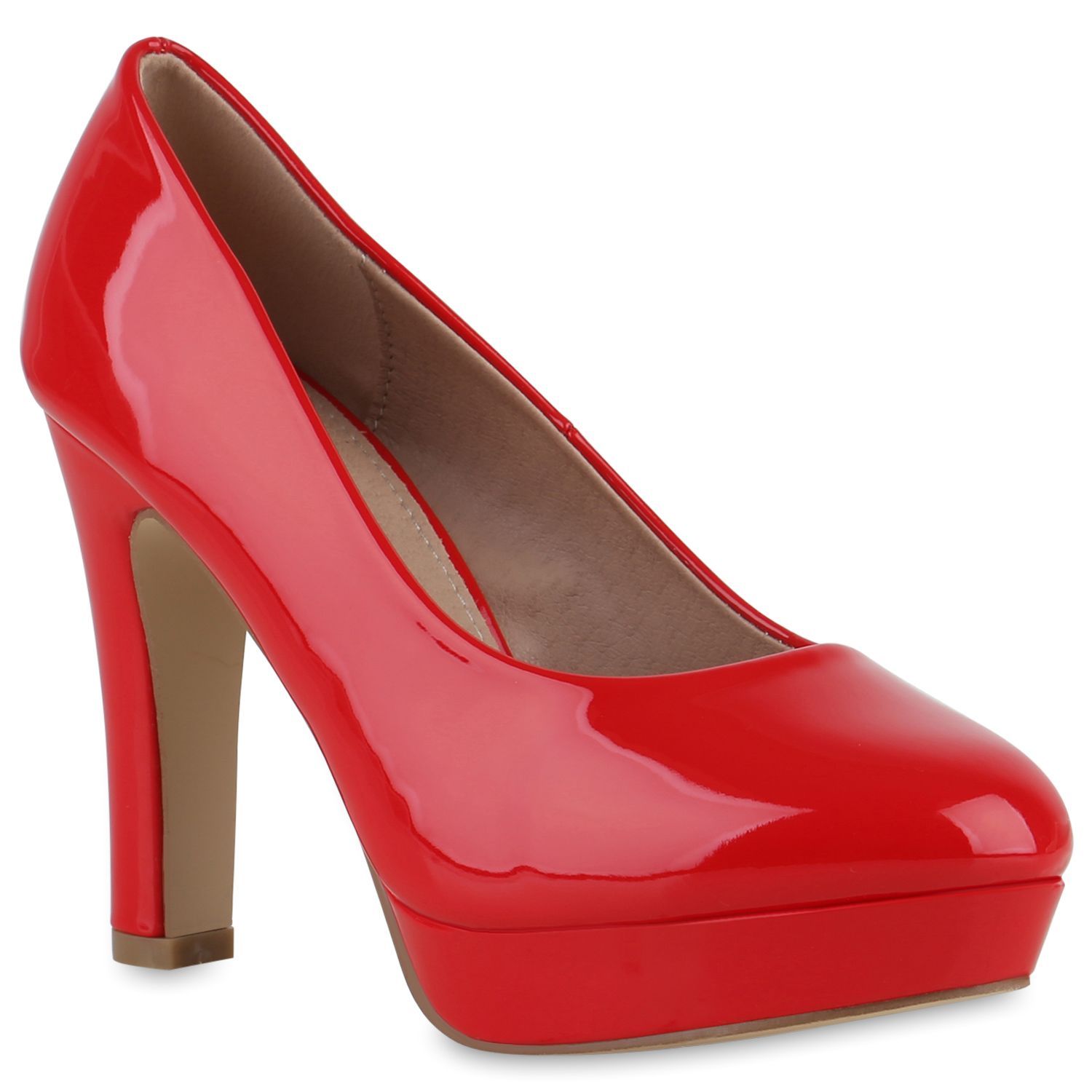 VAN HILL Damen Klassische Pumps Stiletto Plateau Vorne Lack Schuhe 840023