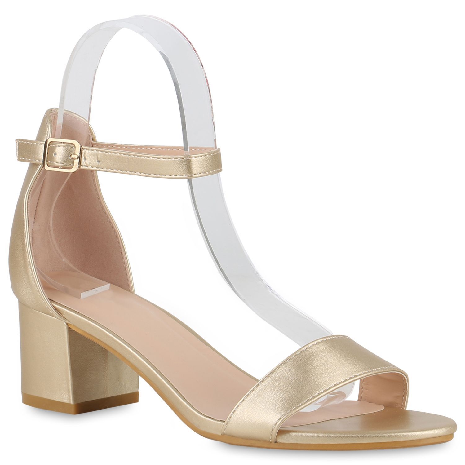 VAN HILL Damen Klassische Sandaletten Blockabsatz Leder-Optik Schuhe 840130