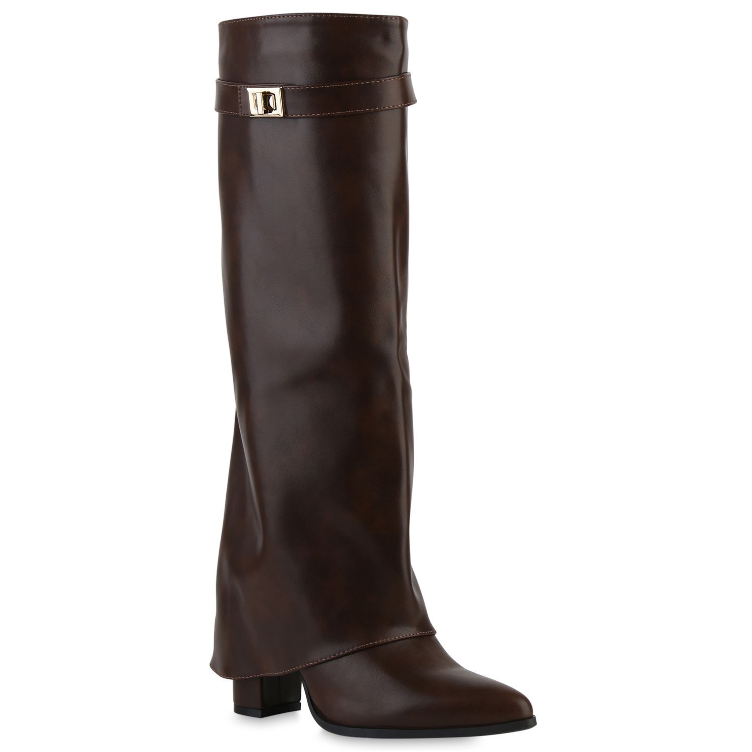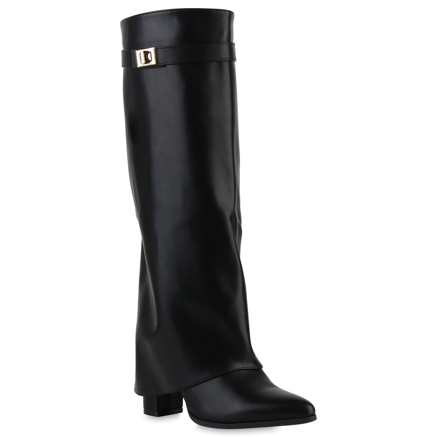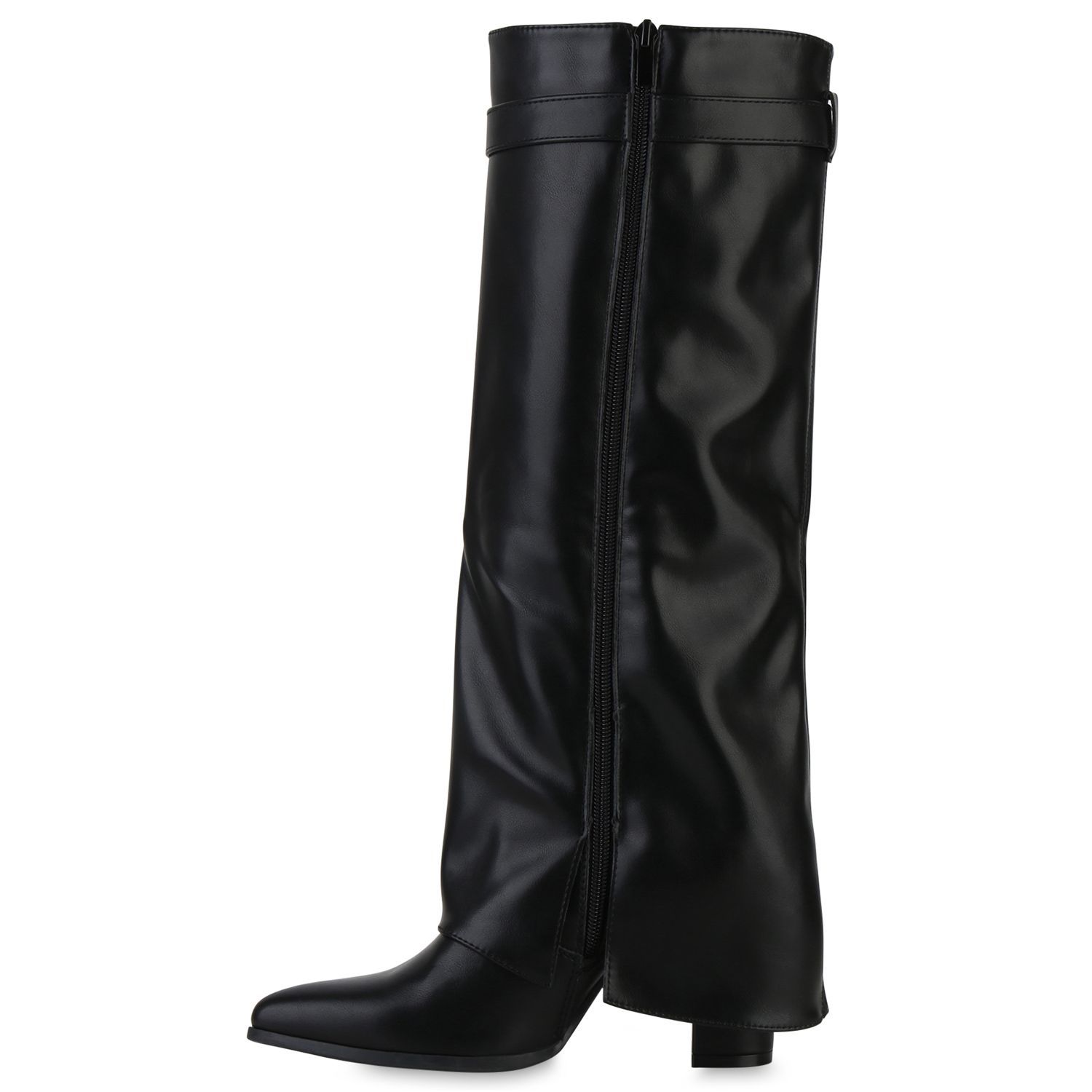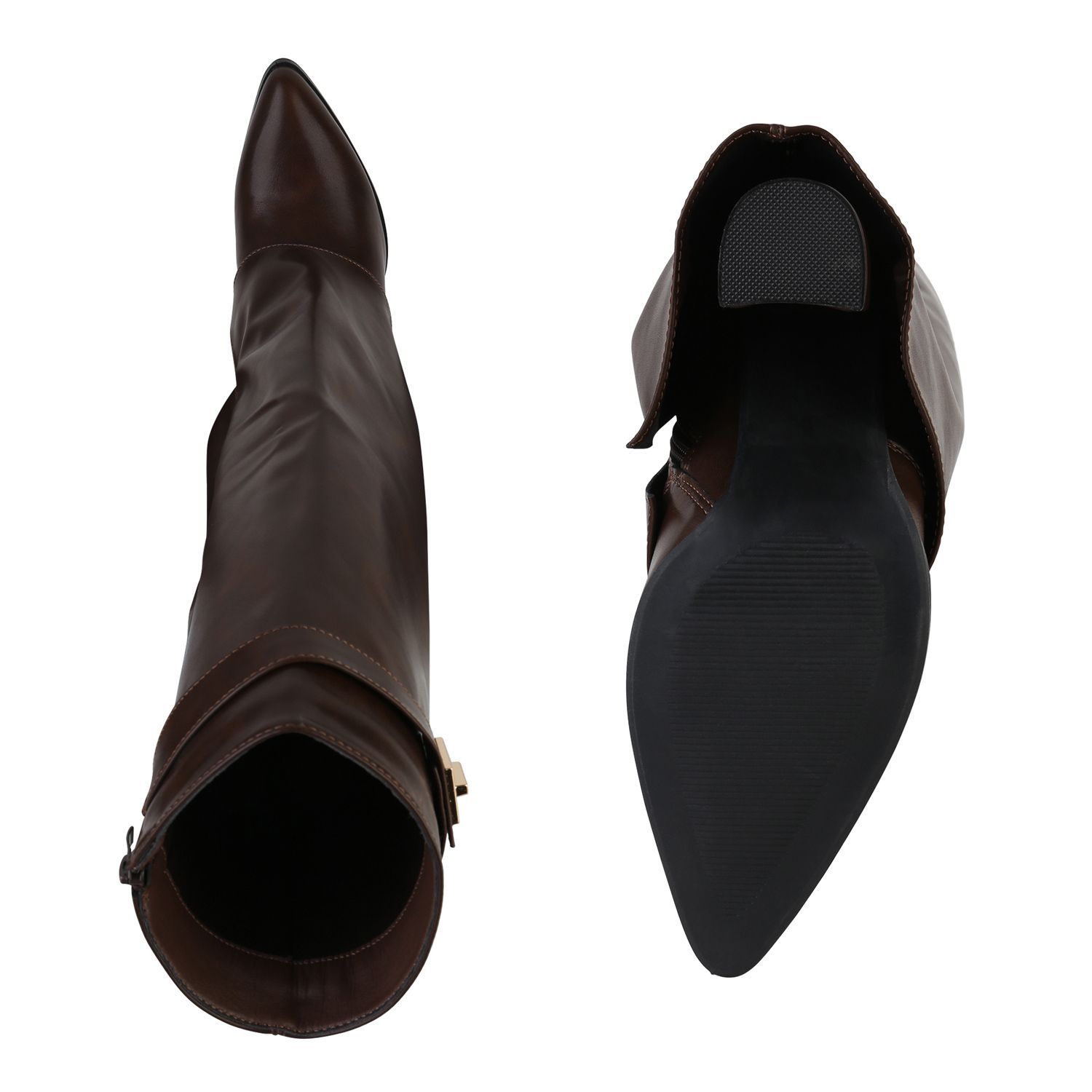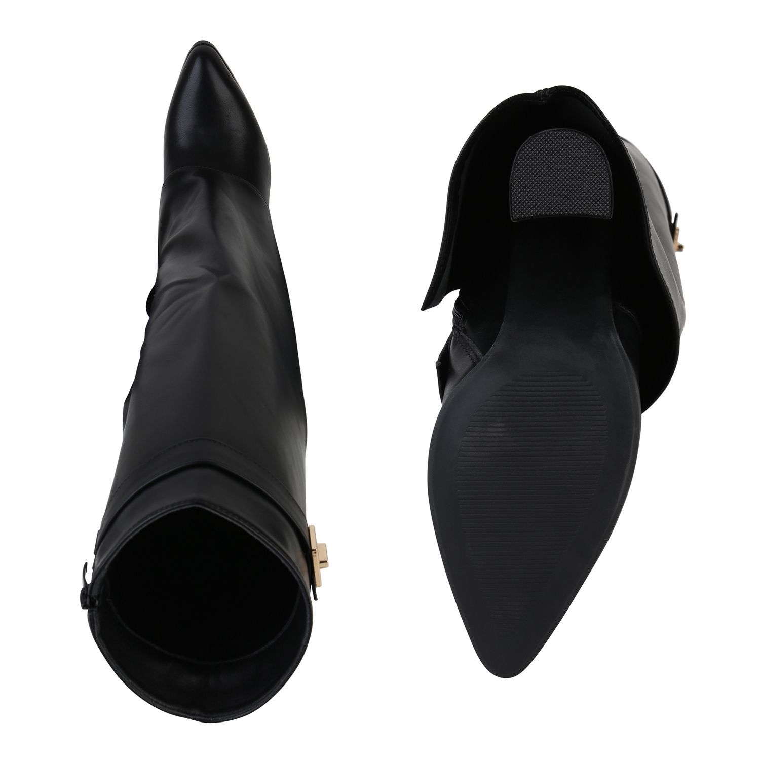VAN HILL Damen Klassische Stiefel Spitze Schnallen Leder-Optik Schuhe 841807