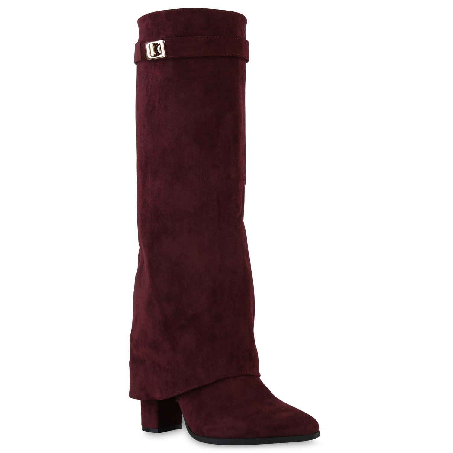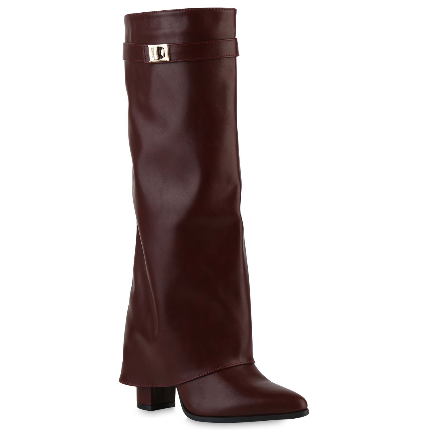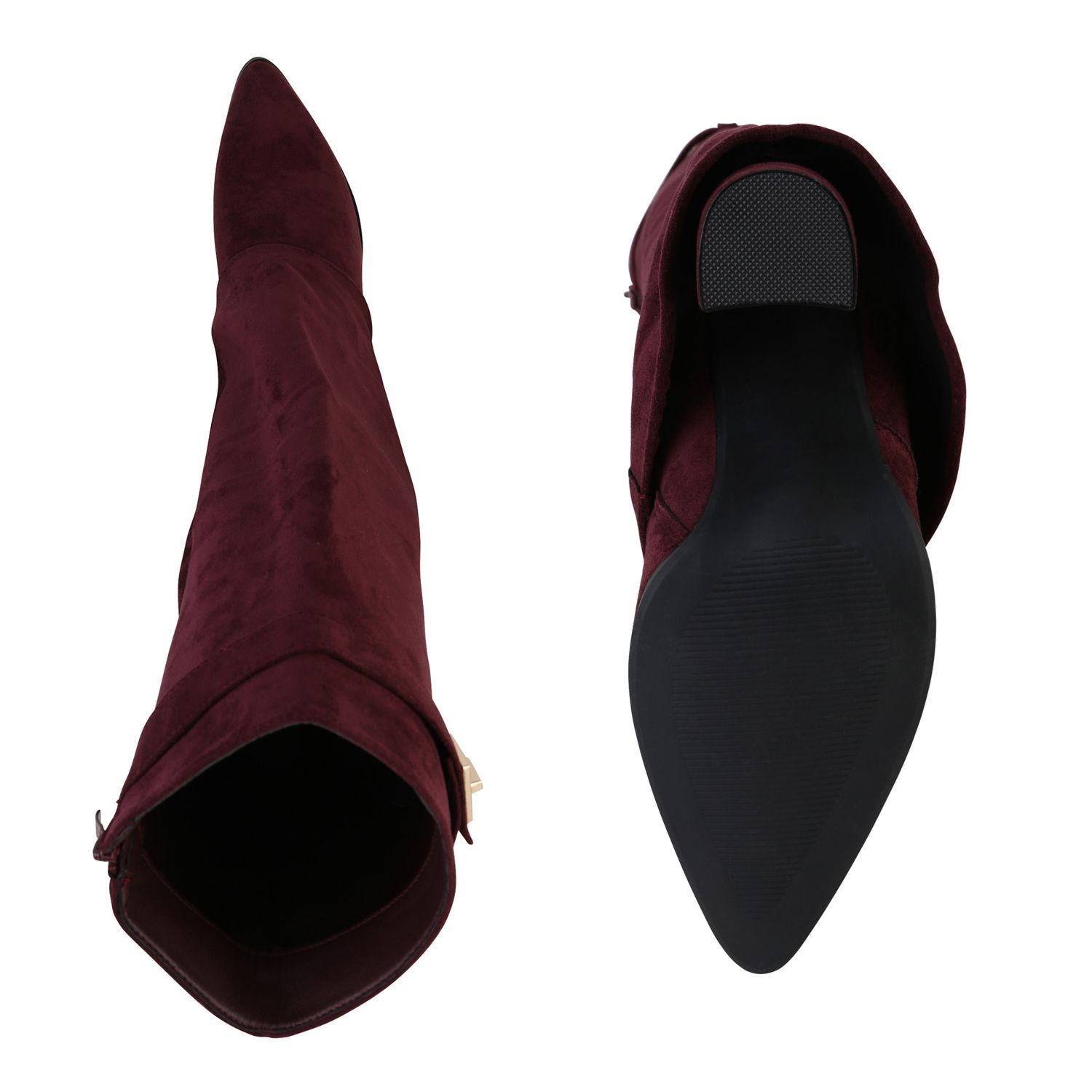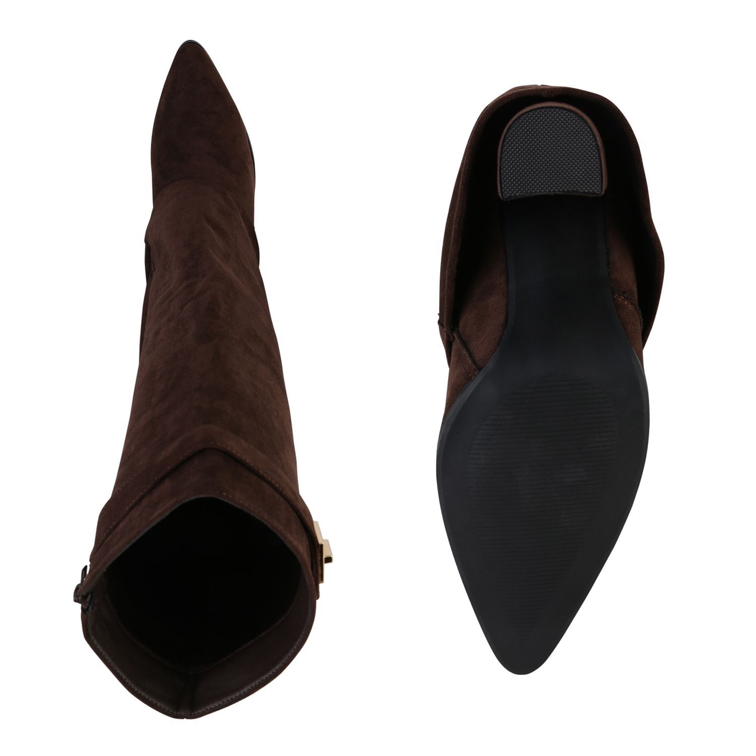 VAN HILL Damen Klassische Stiefel Spitze Schnallen Leder-Optik Schuhe 841807