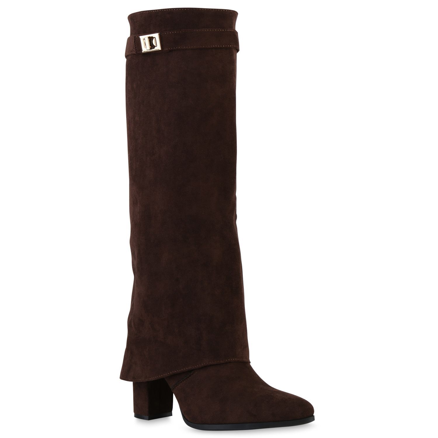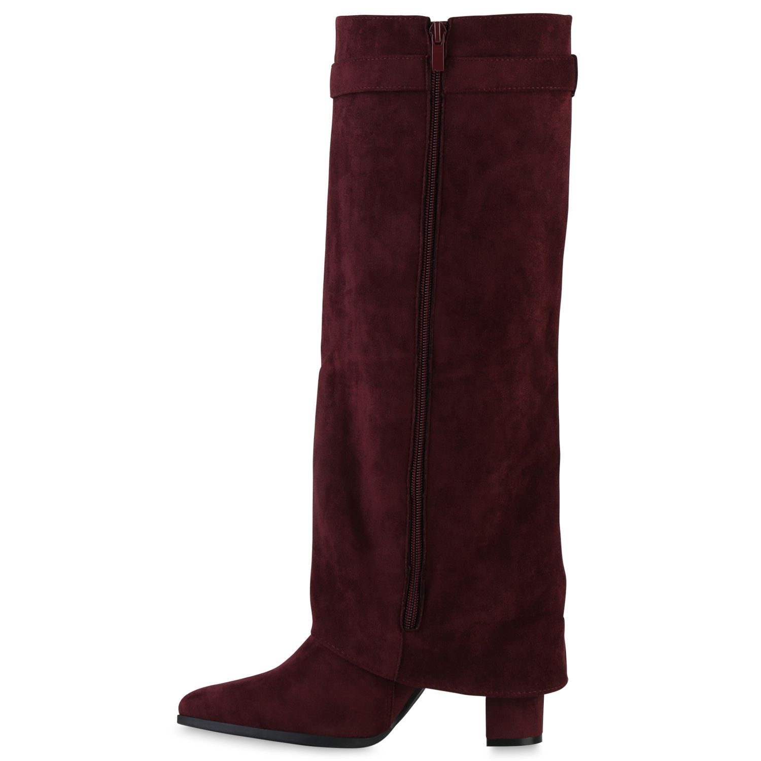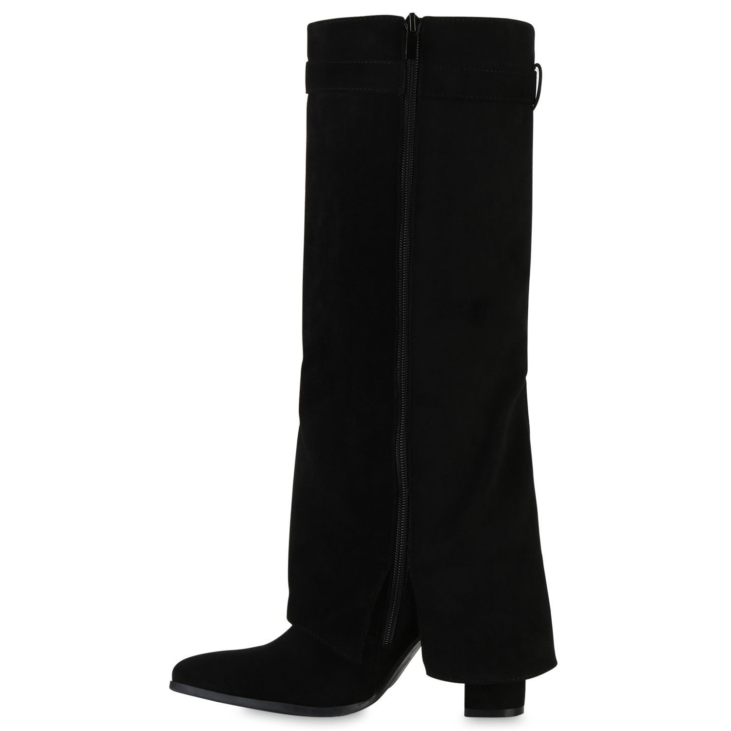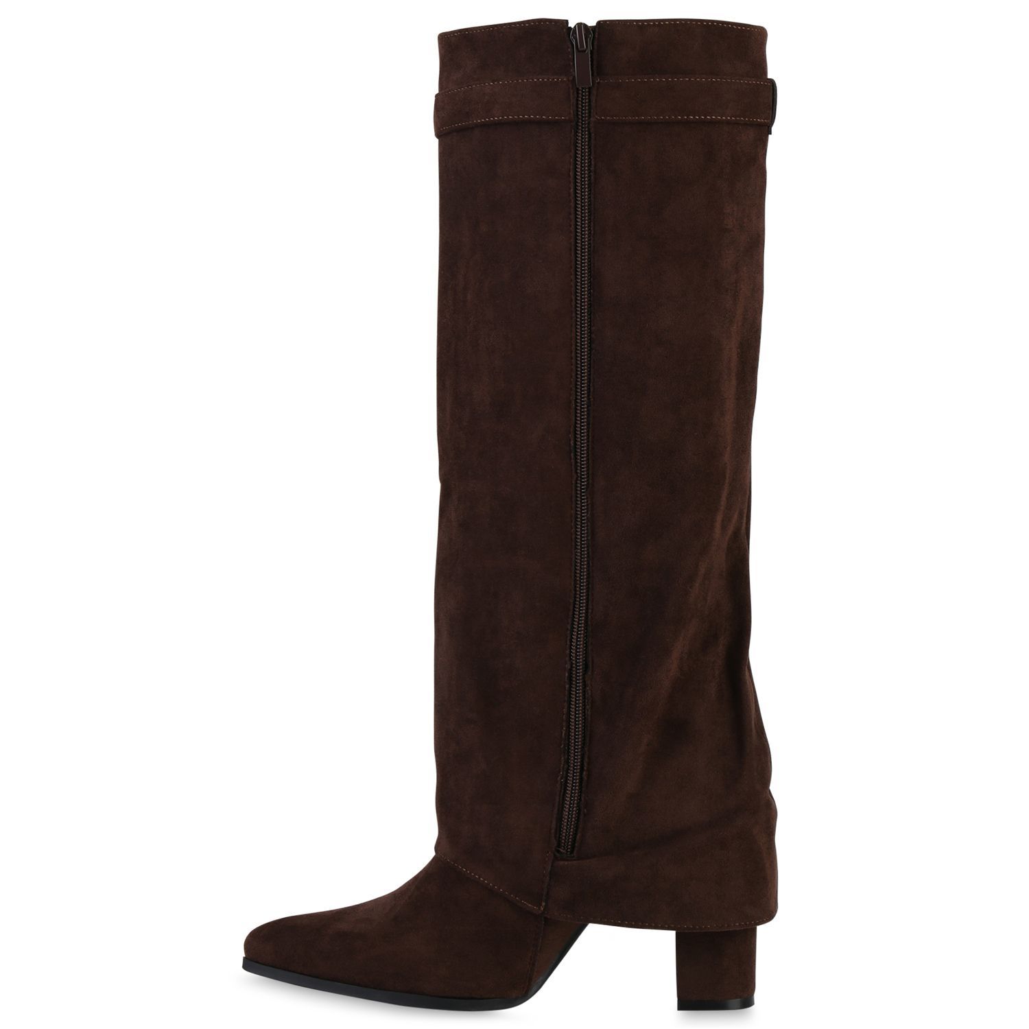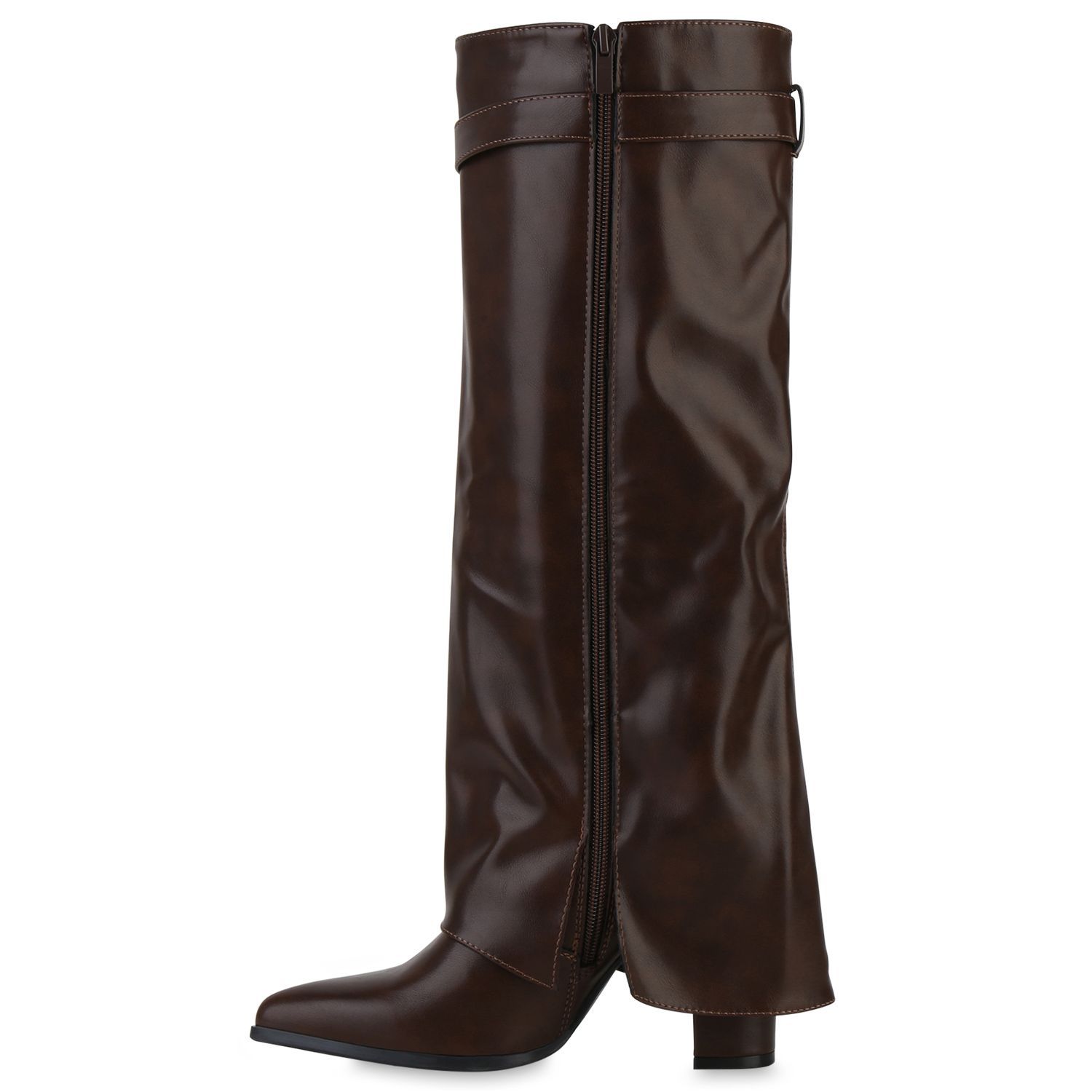 VAN HILL Damen Klassische Stiefel Spitze Schnallen Leder-Optik Schuhe 841807