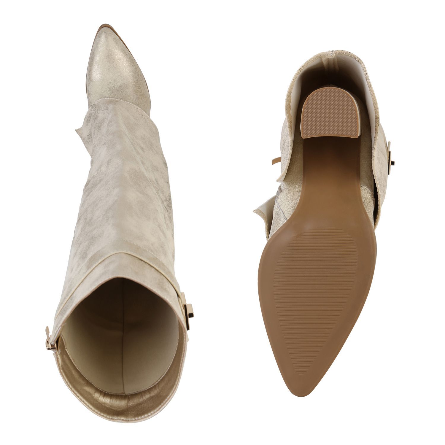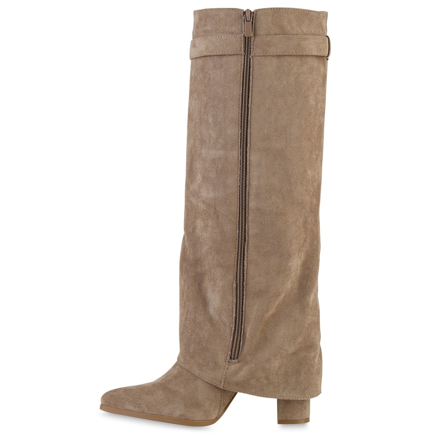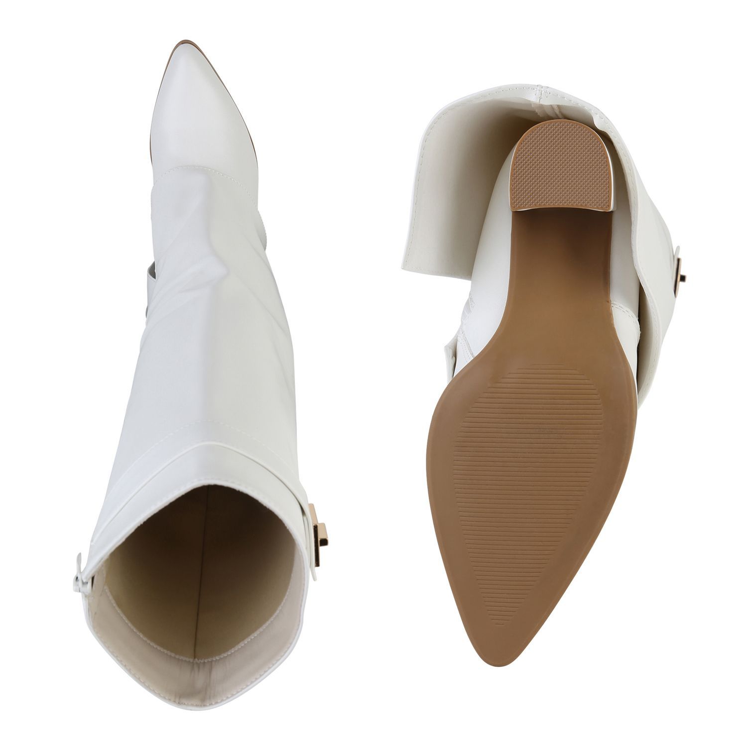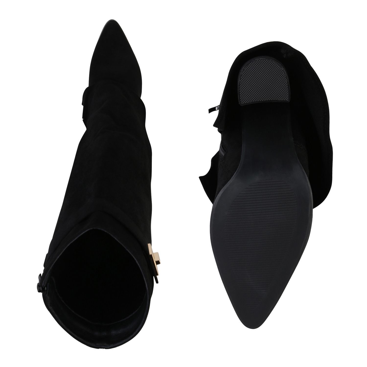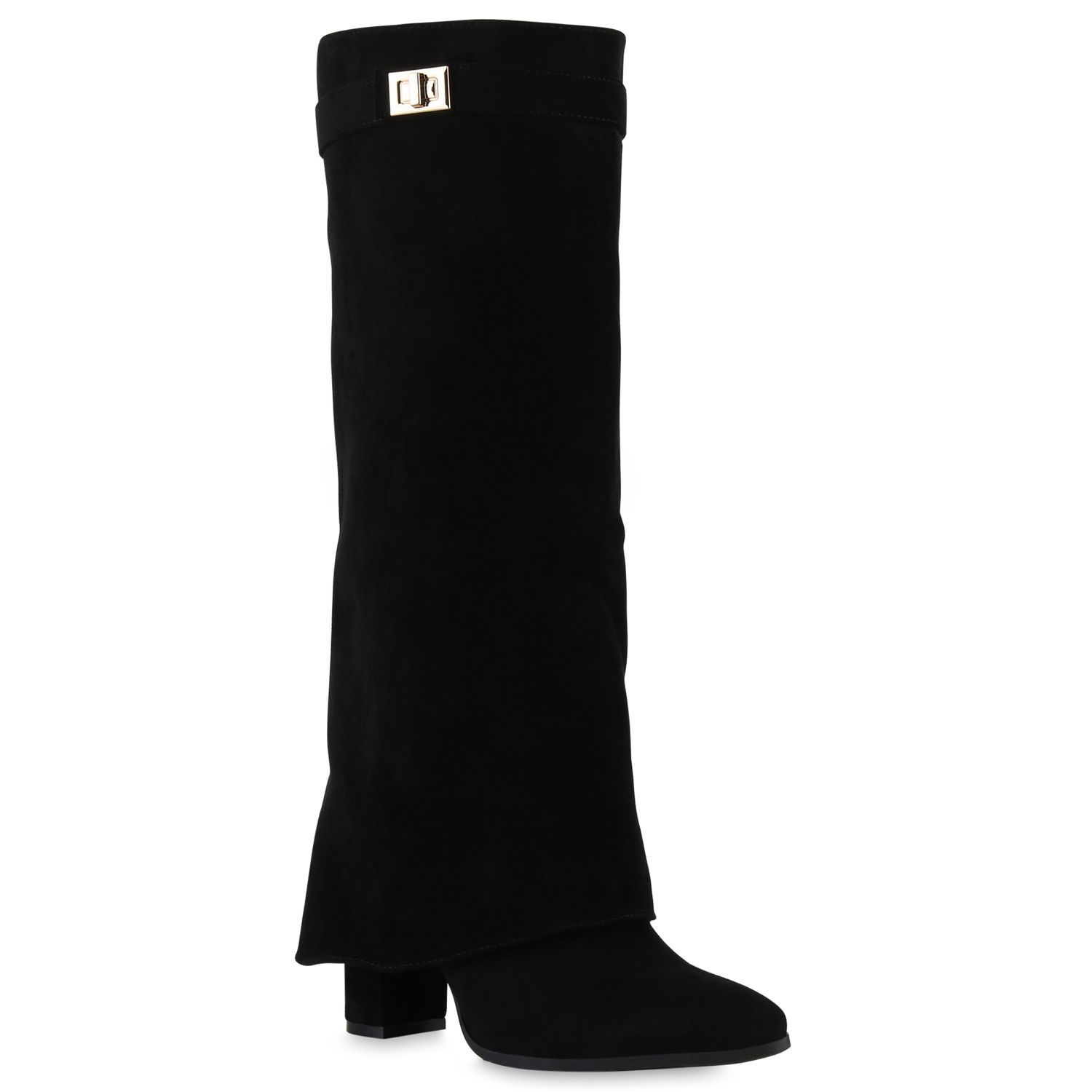 VAN HILL Damen Klassische Stiefel Spitze Schnallen Leder-Optik Schuhe 841807