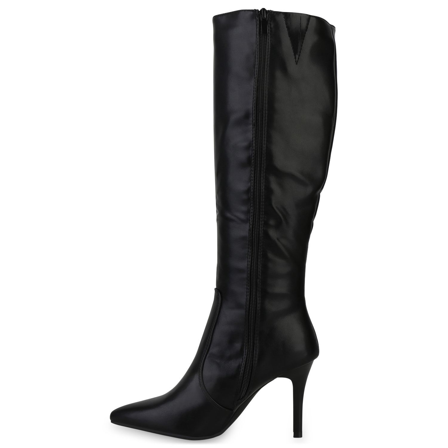 VAN HILL Damen Klassische Stiefel Spitze Stiletto Basic Absatz-Schuhe 840775