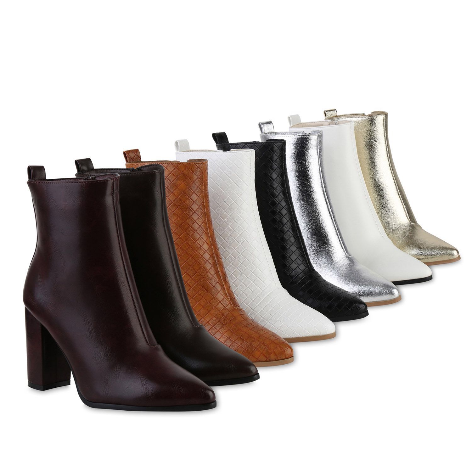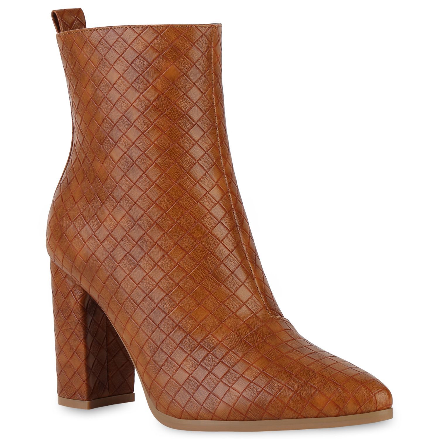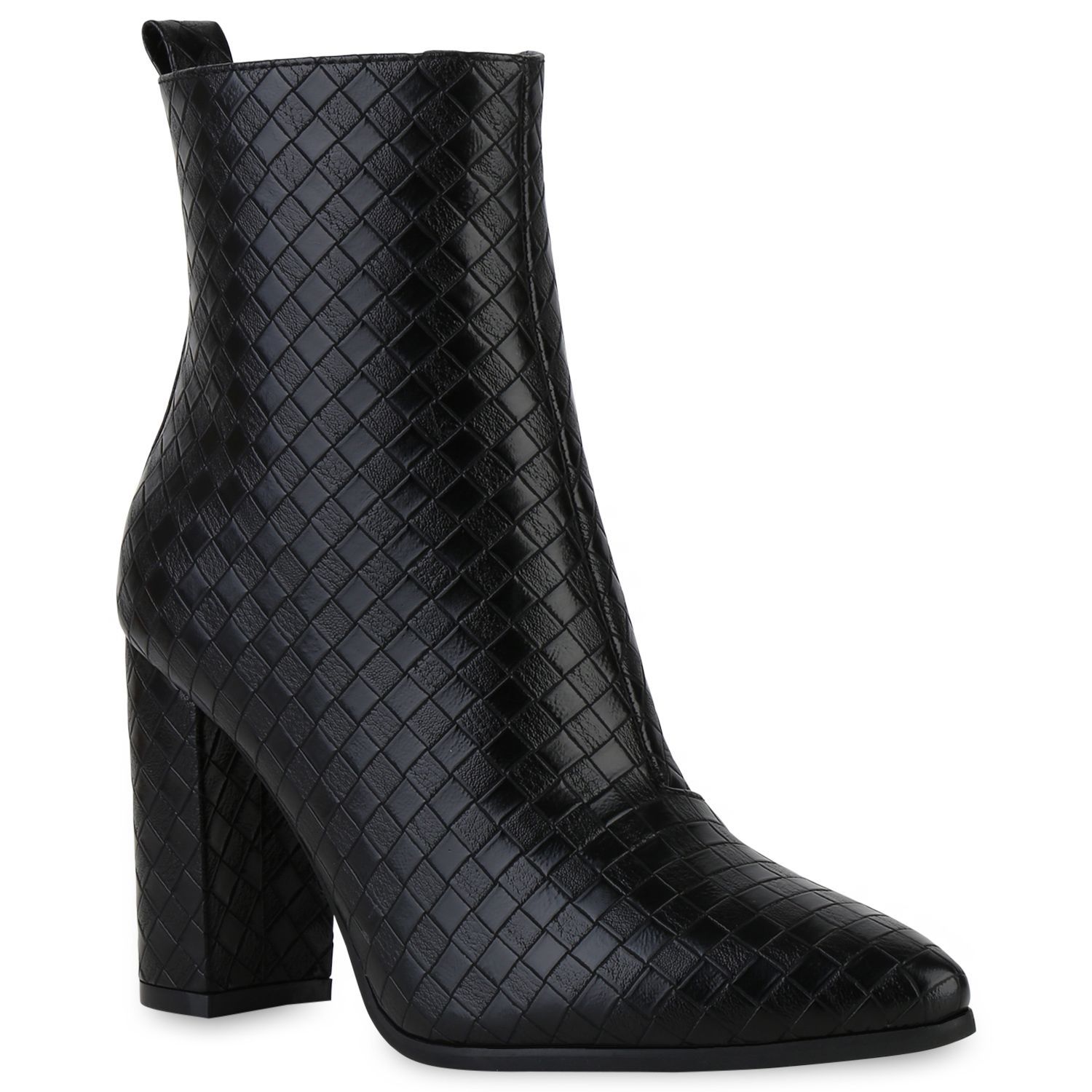 VAN HILL Damen Klassische Stiefeletten Blockabsatz Prints Absatz-Schuhe 840337