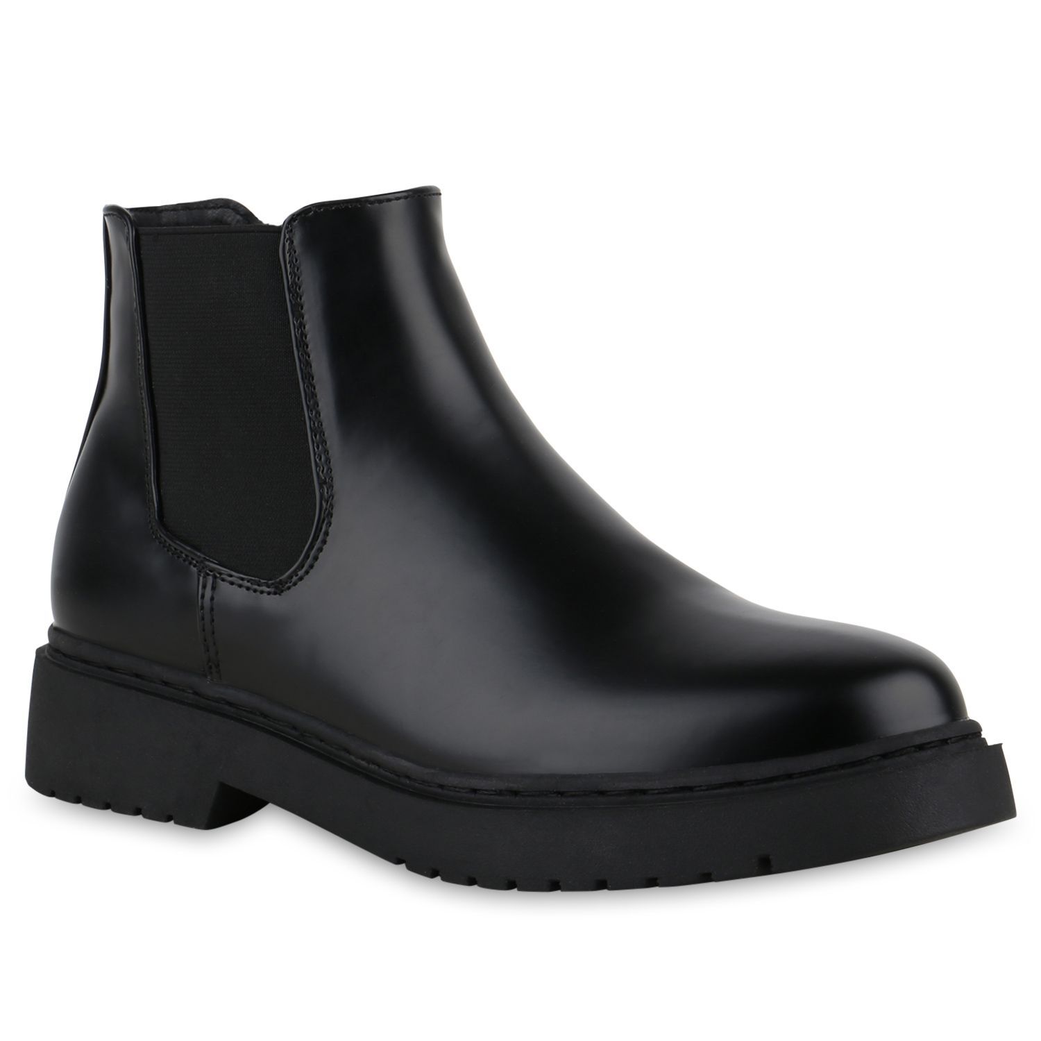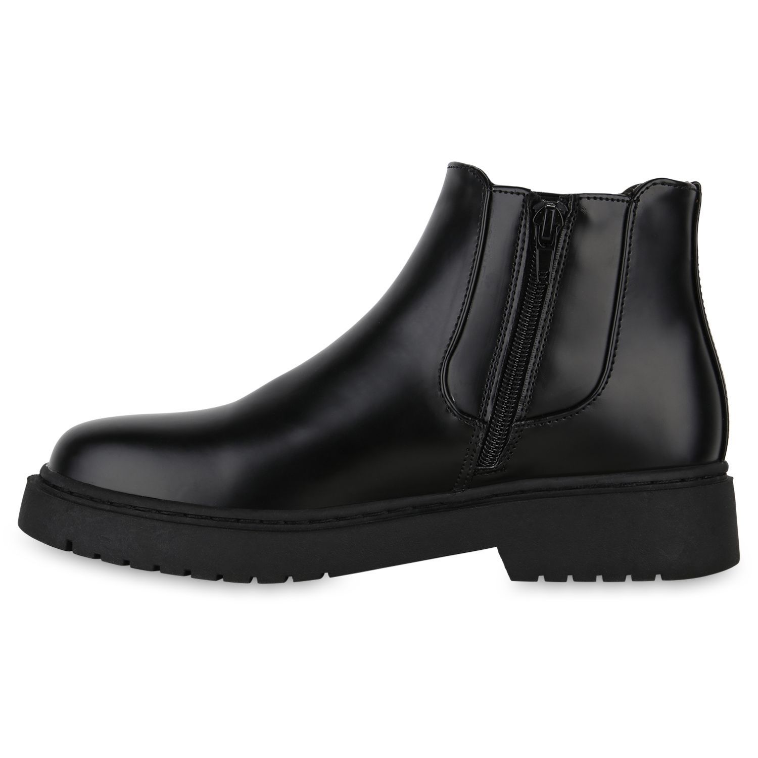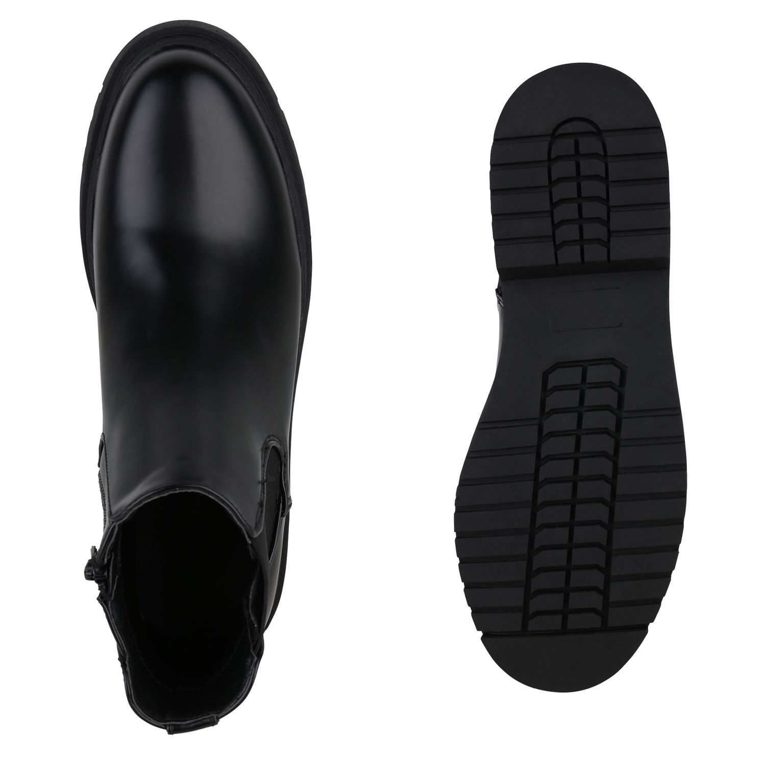 VAN HILL Damen Klassische Stiefeletten Blockabsatz Profil-Sohle Schuhe 841439