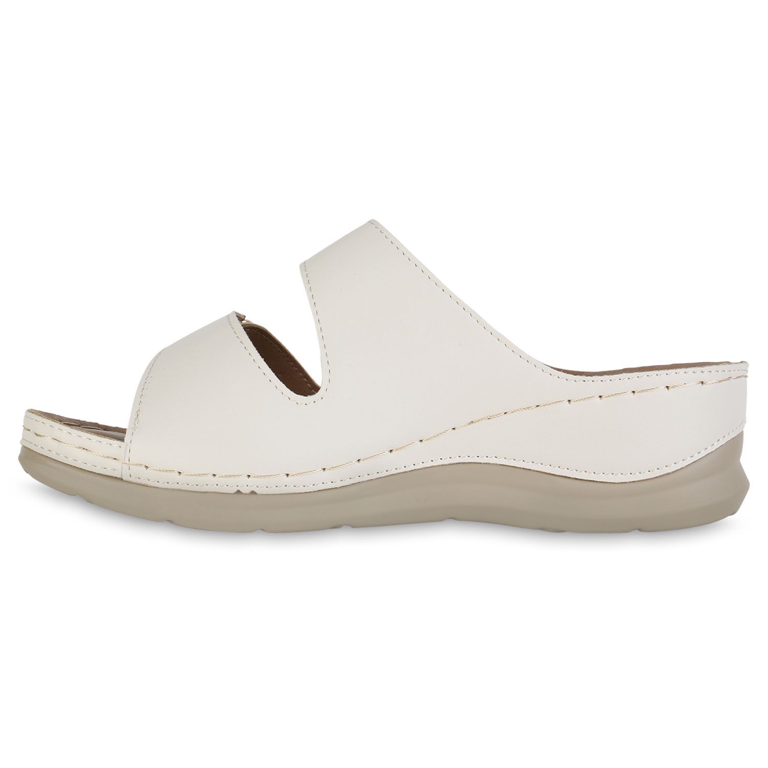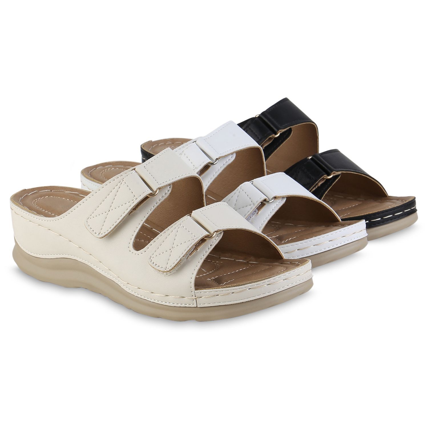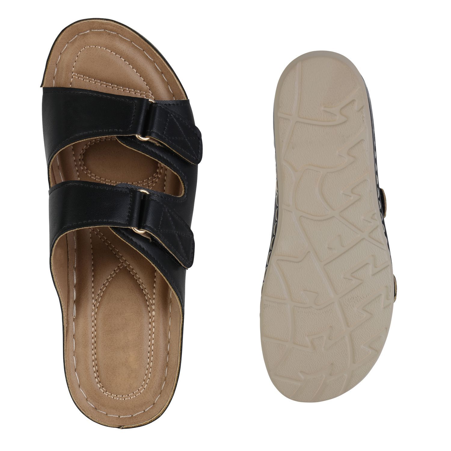 VAN HILL Damen Komfort Sandalen Bequeme Keilabsatz Basic Leder-Optik Schuhe 841615