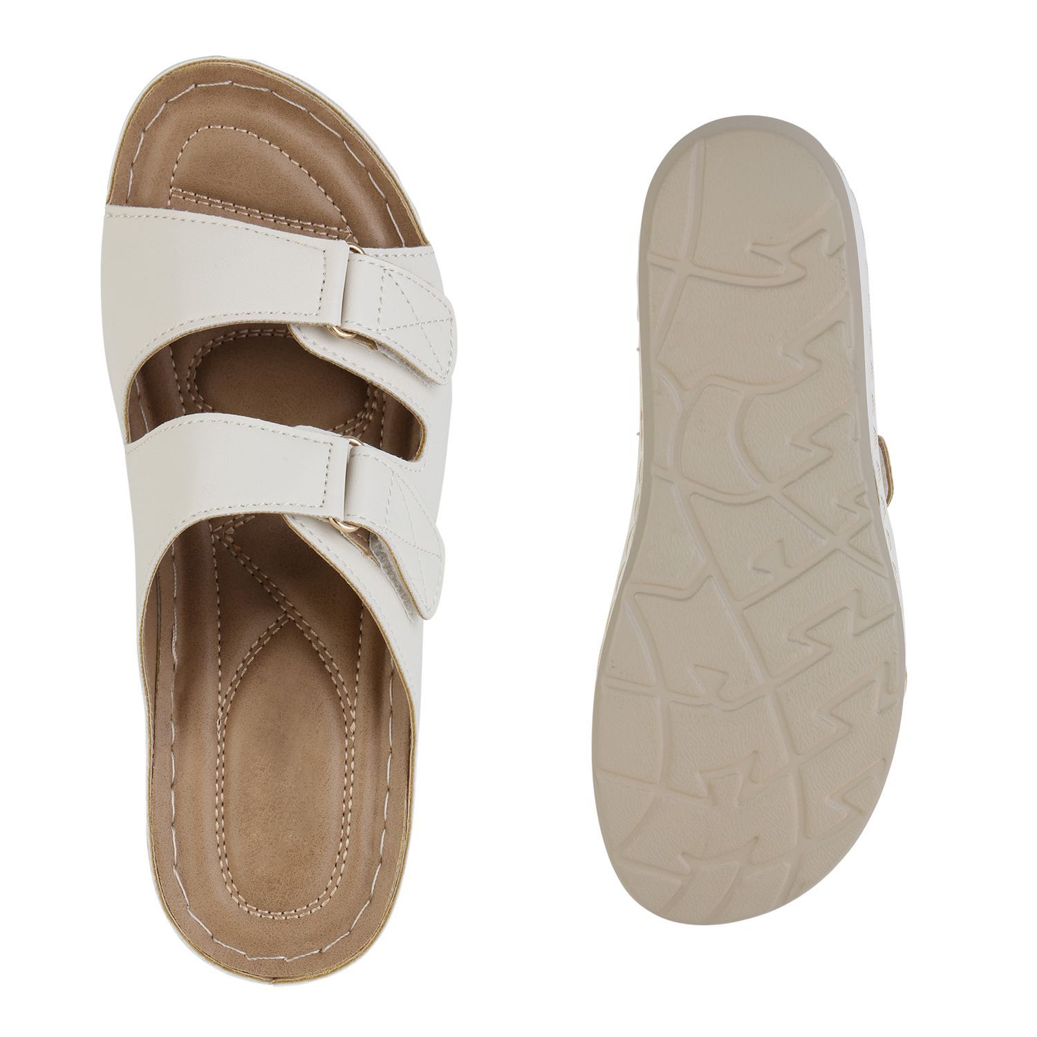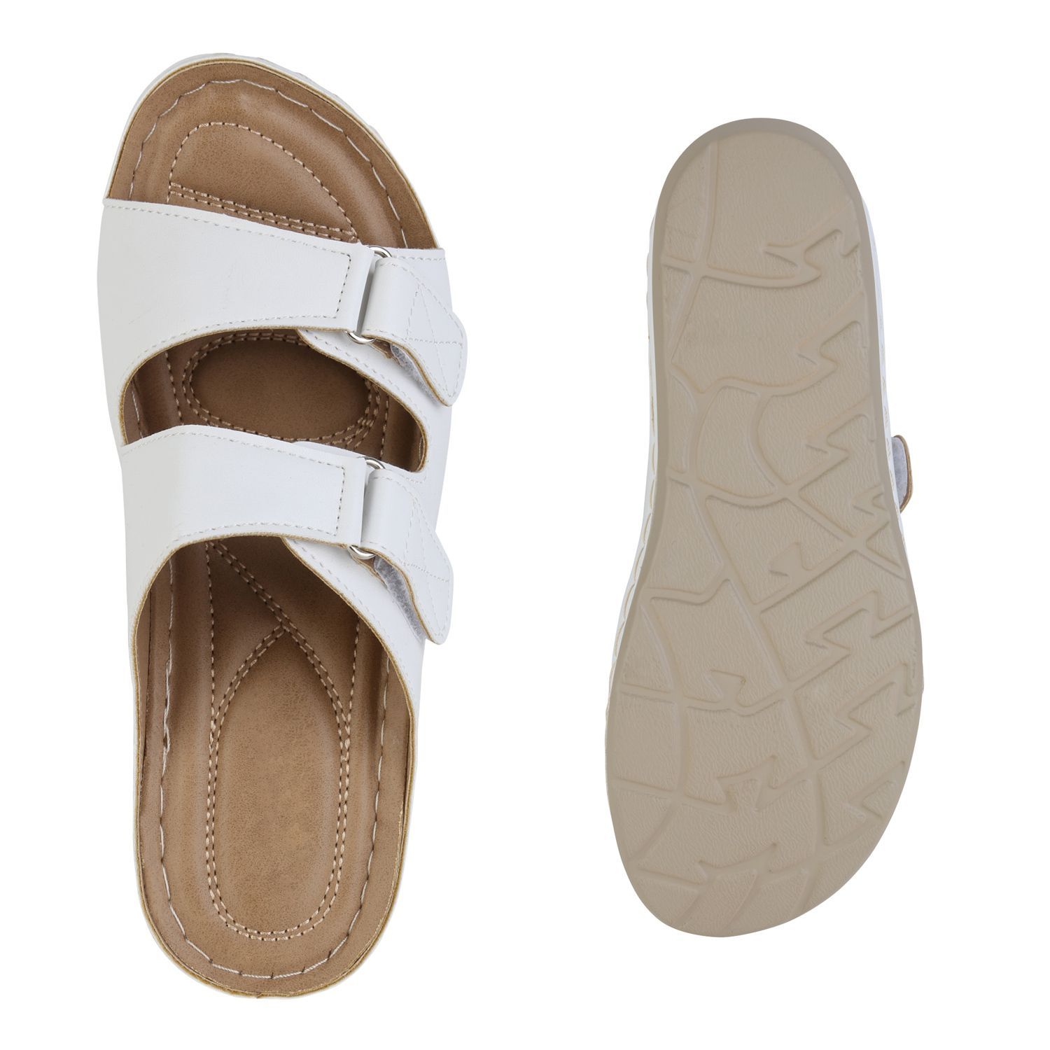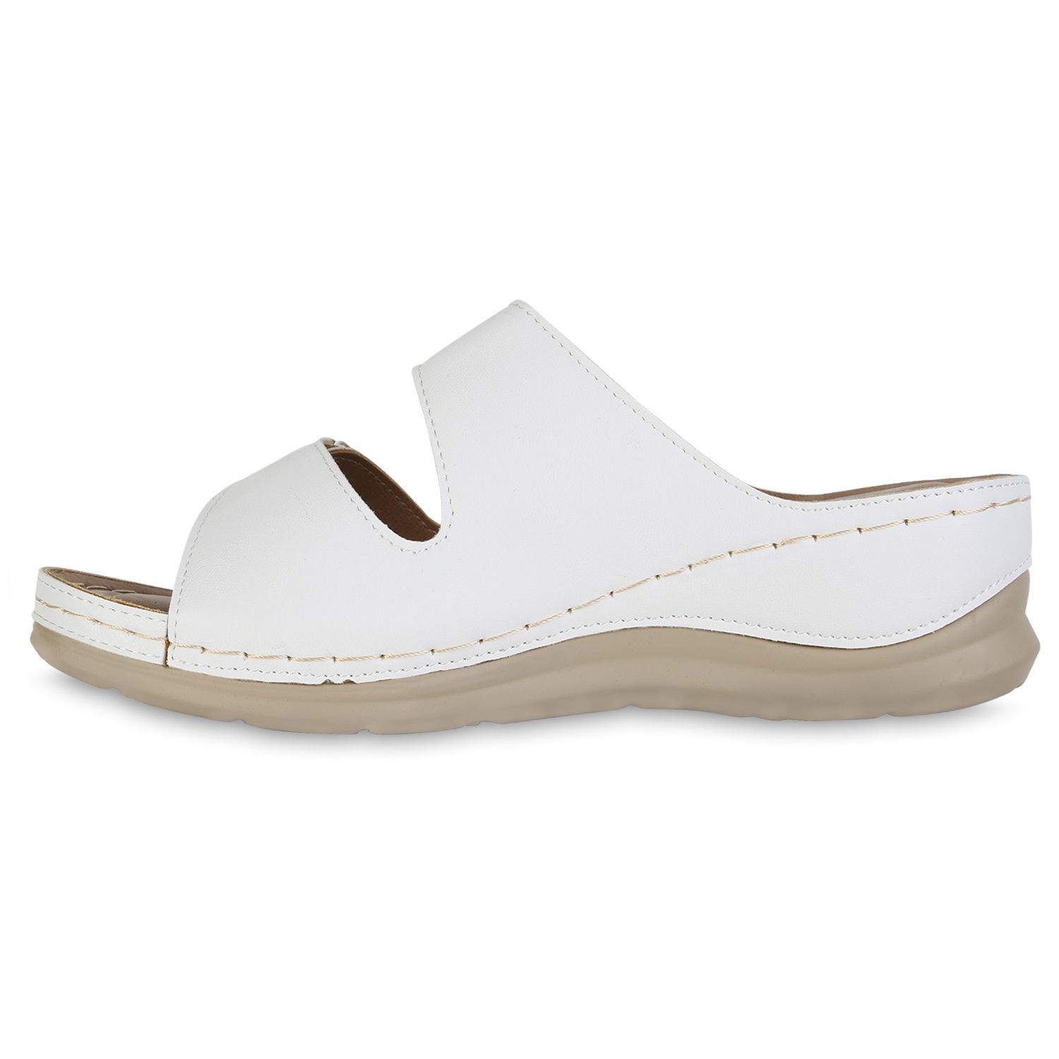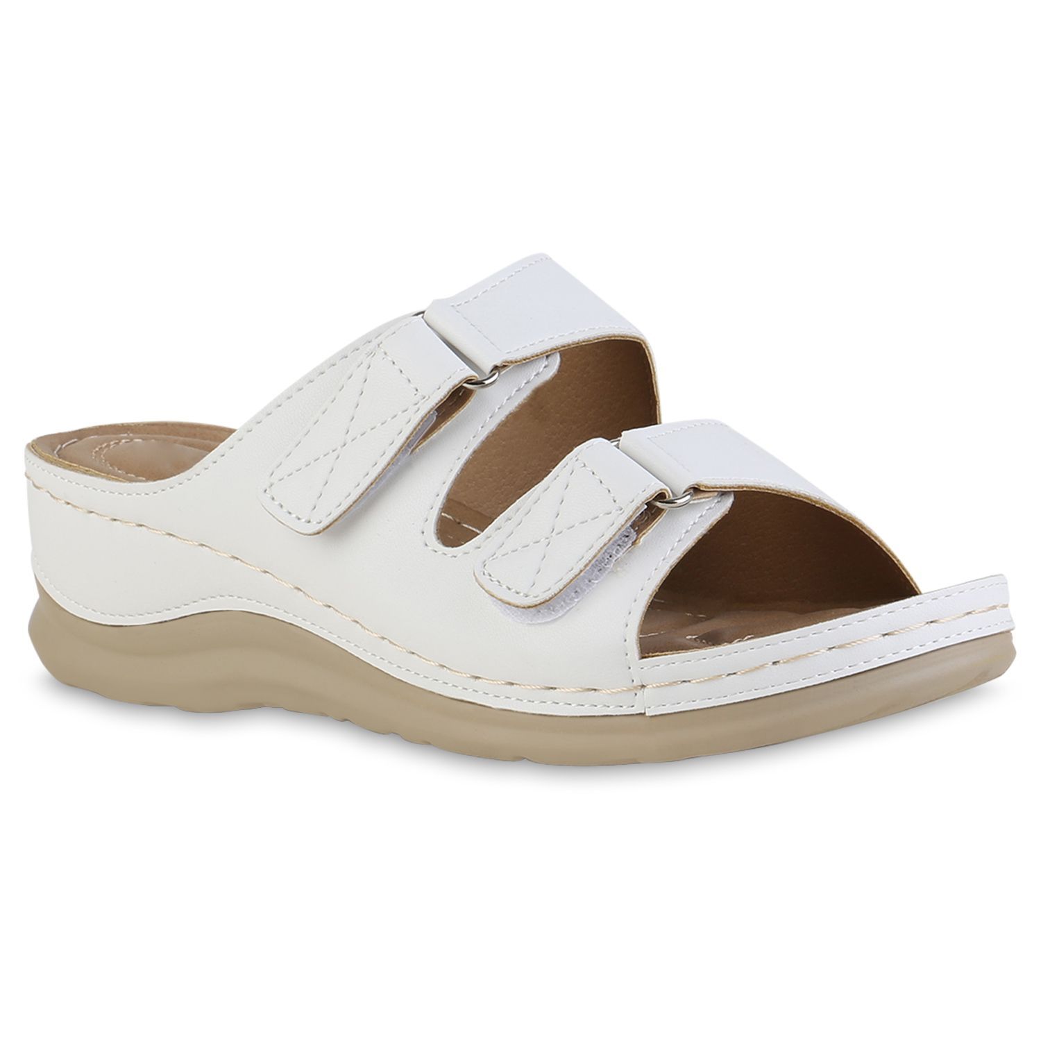 VAN HILL Damen Komfort Sandalen Bequeme Keilabsatz Basic Leder-Optik Schuhe 841615