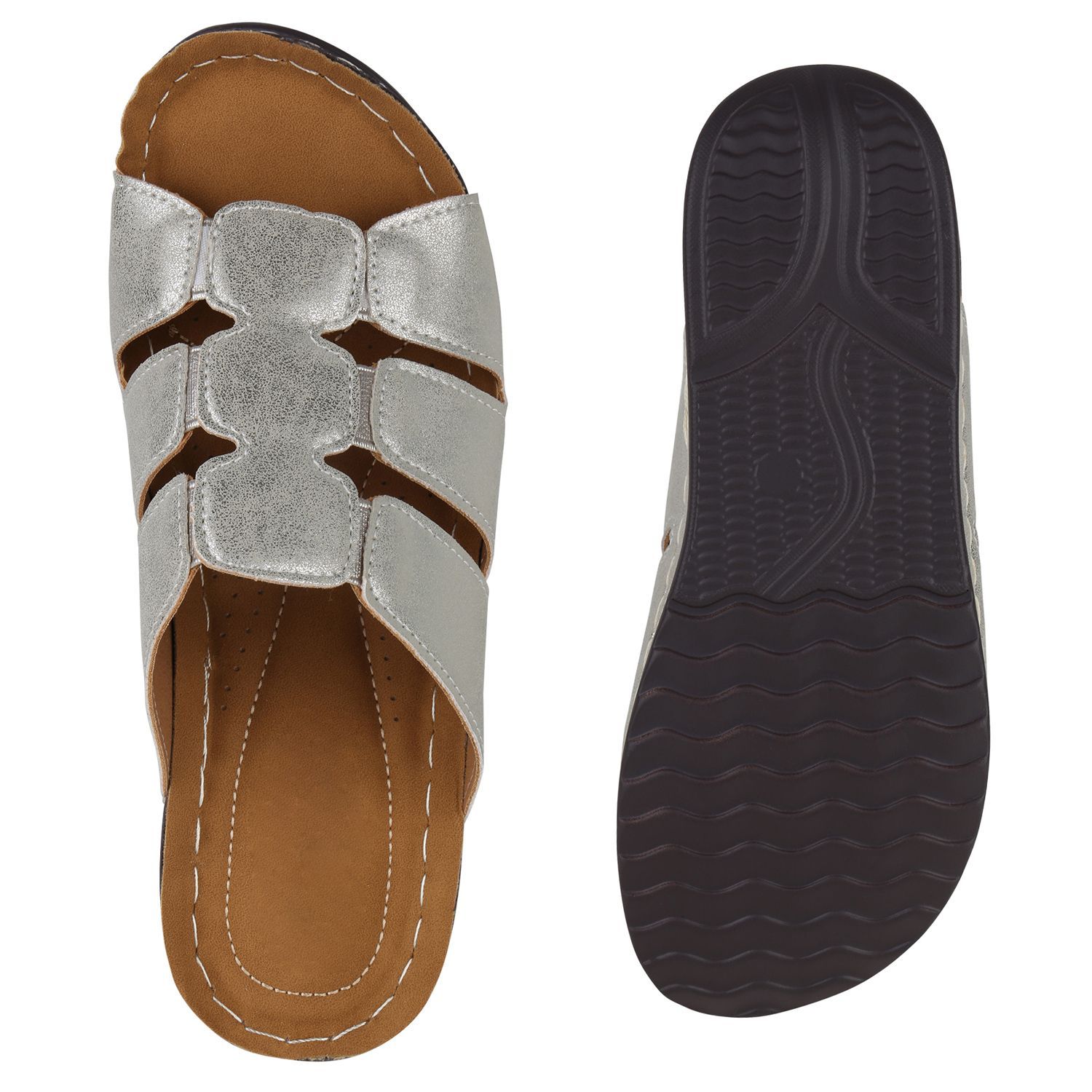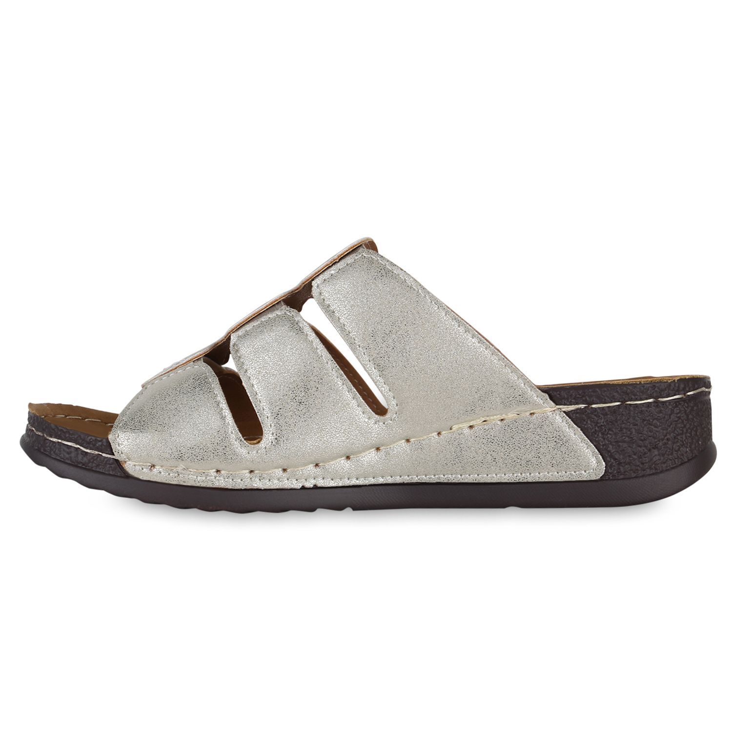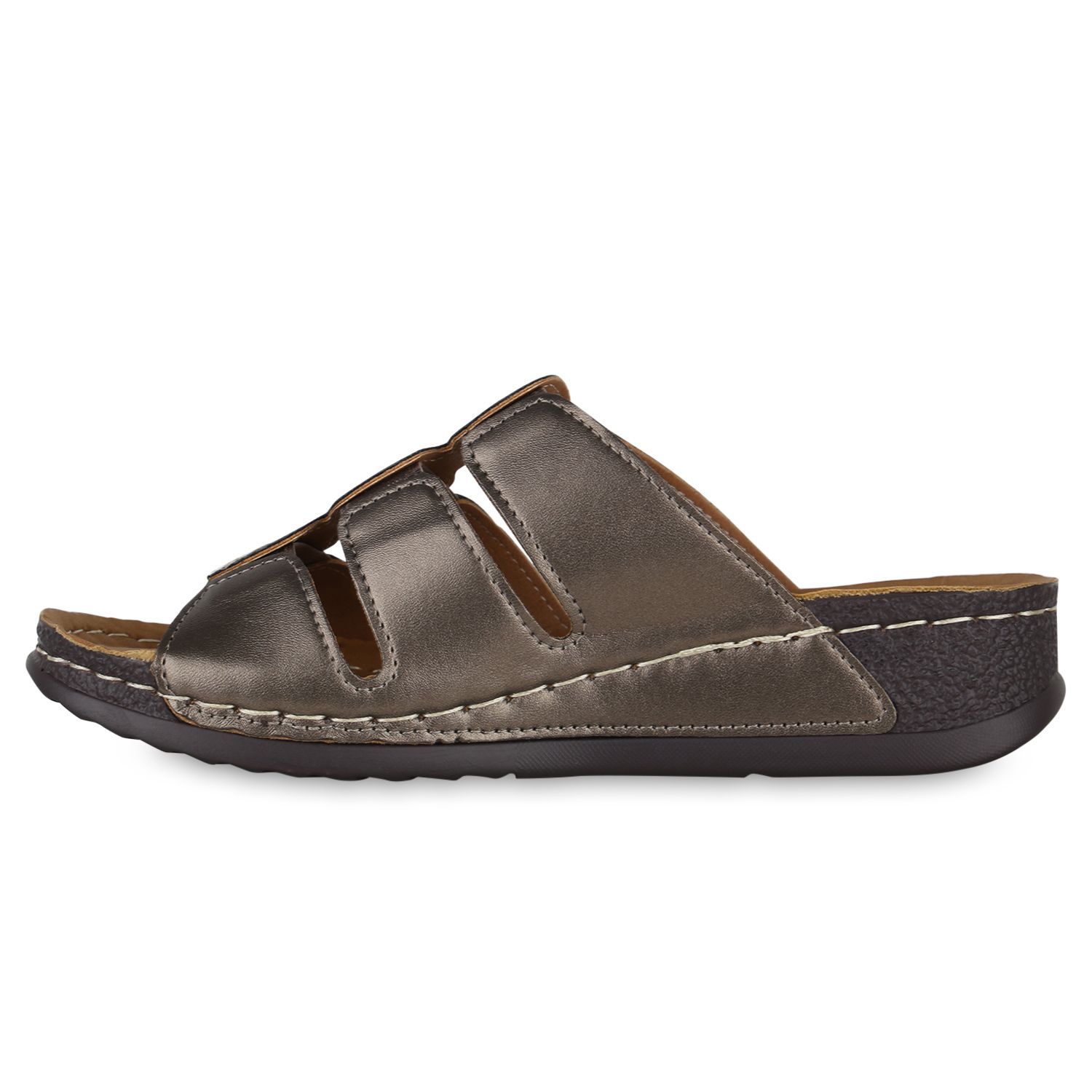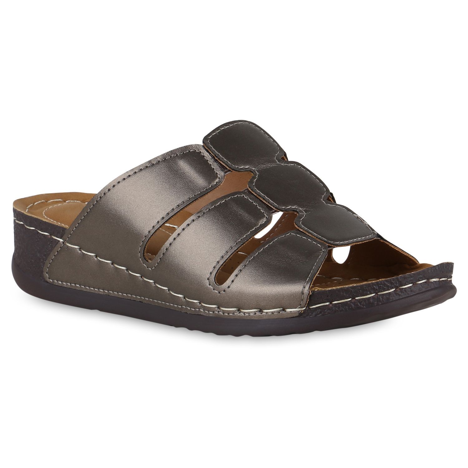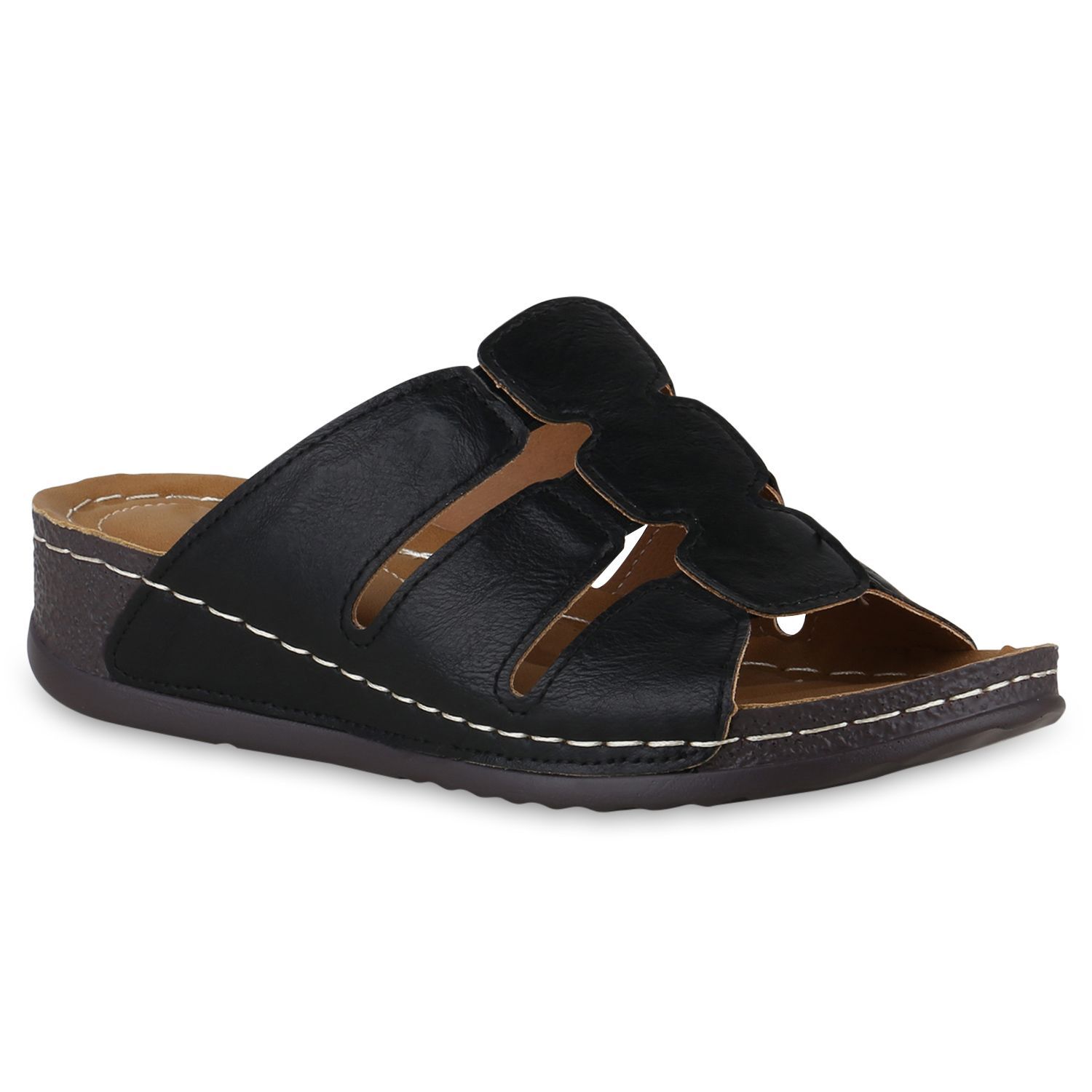 VAN HILL Damen Komfort Sandalen Bequeme Keilabsatz Cut-outs Schuhe 841047
