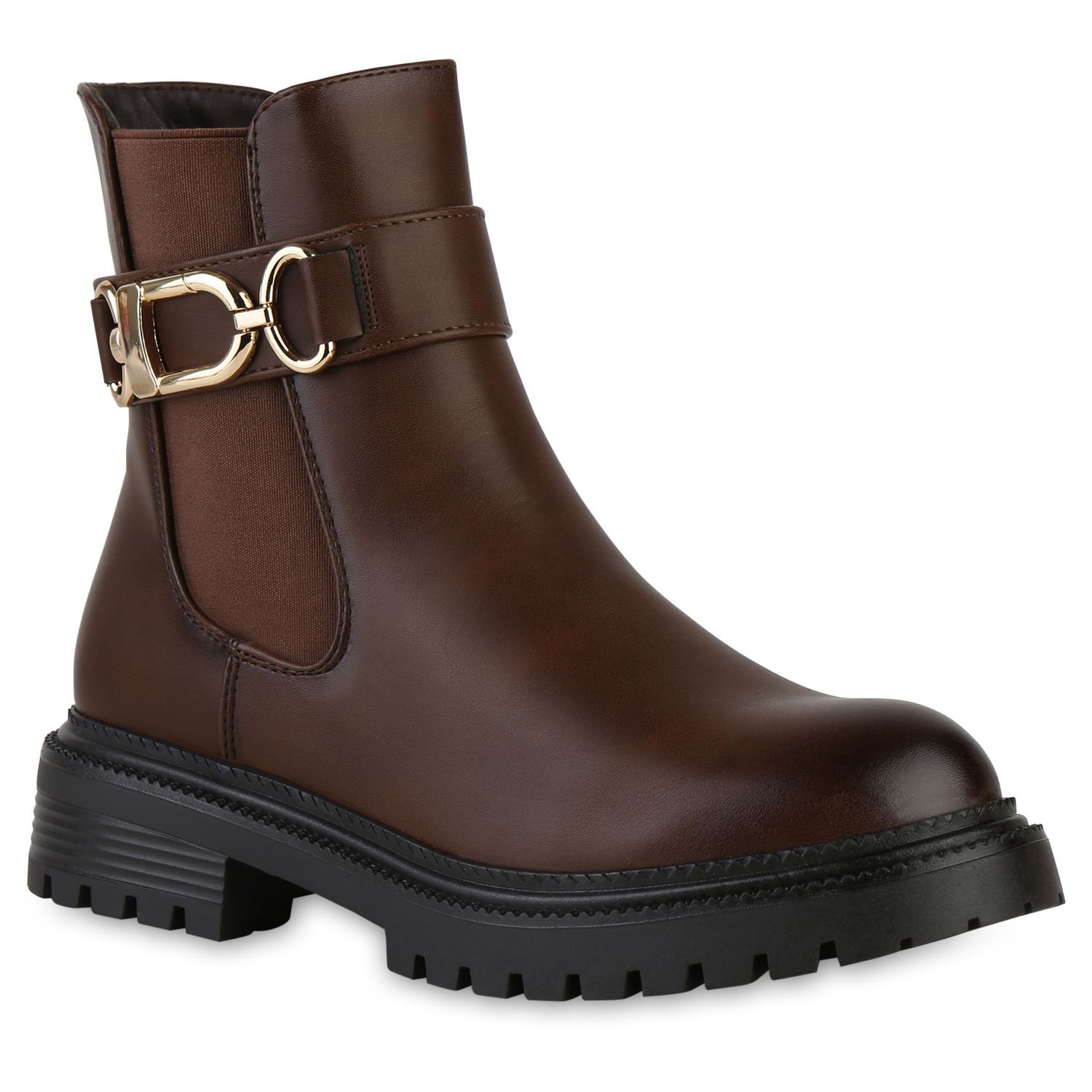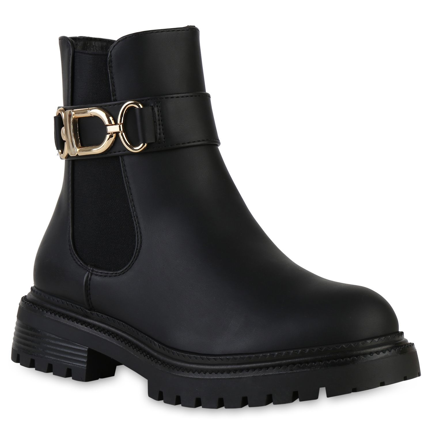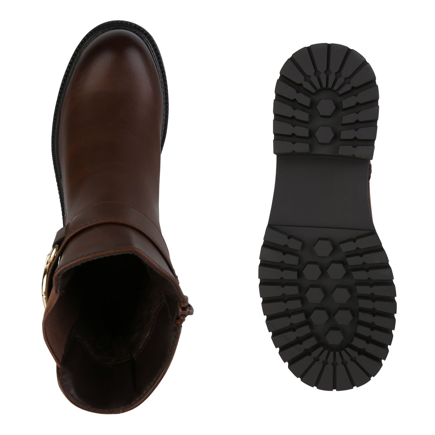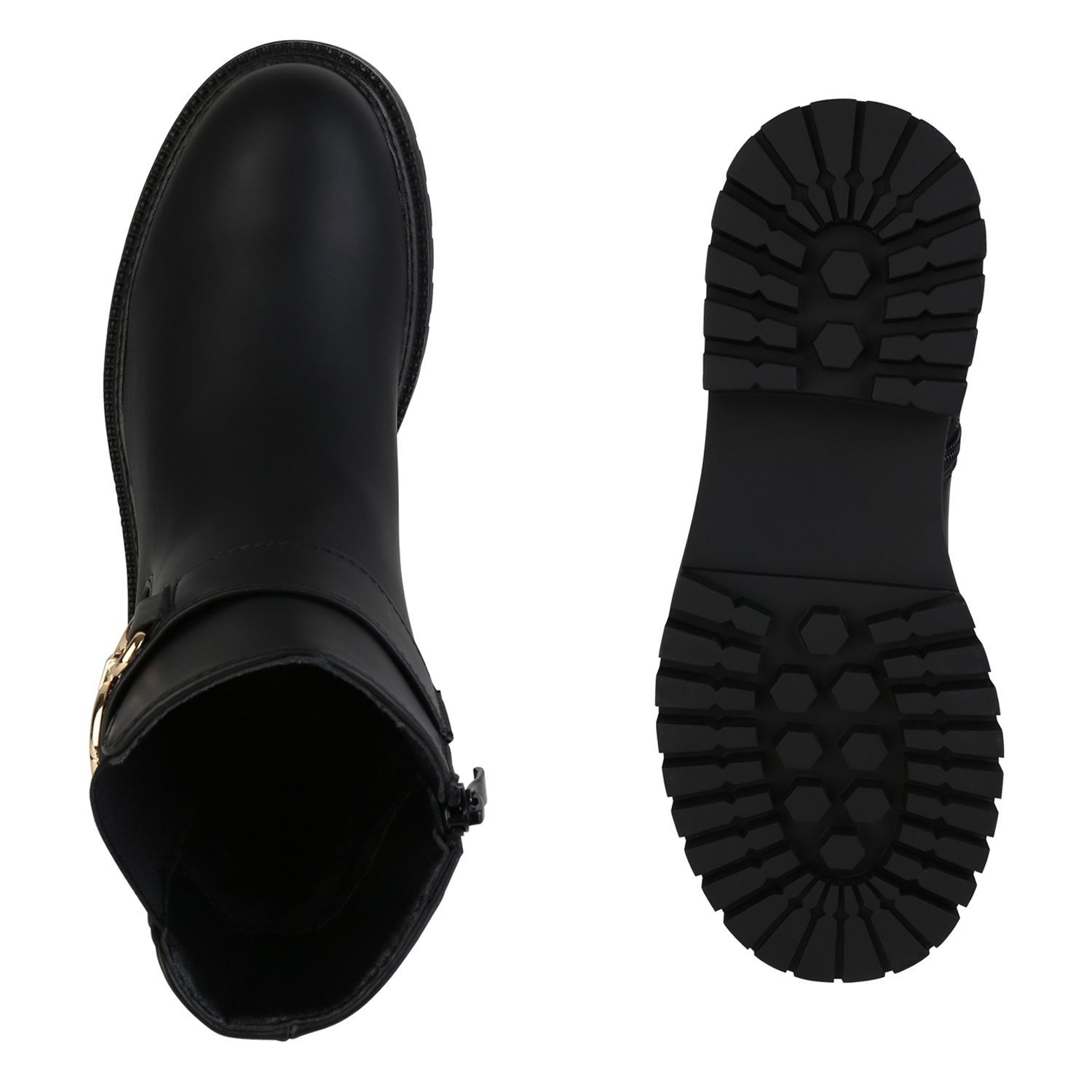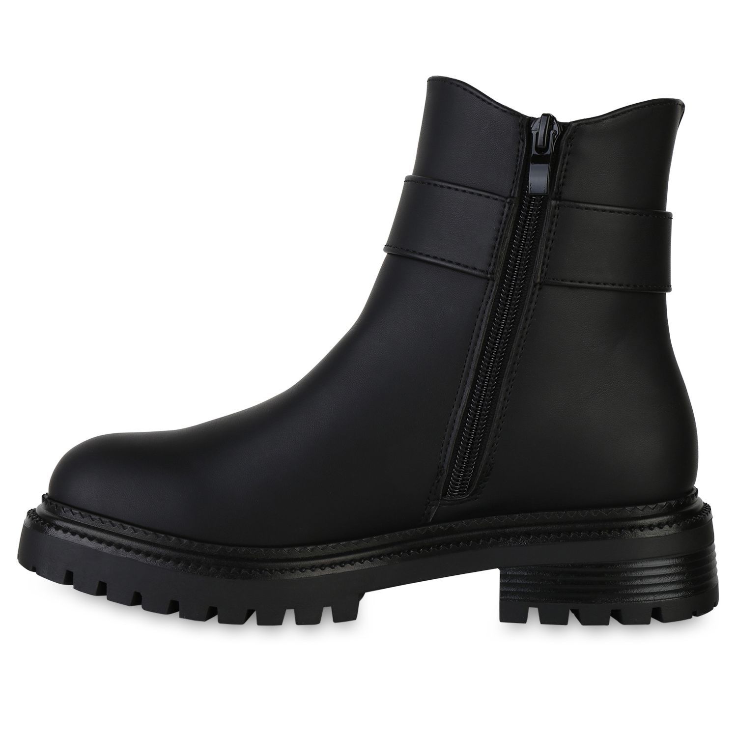 VAN HILL Damen Leicht Gefüttert Biker Boots Stiefelette Profil-Sohle Schuhe 841324