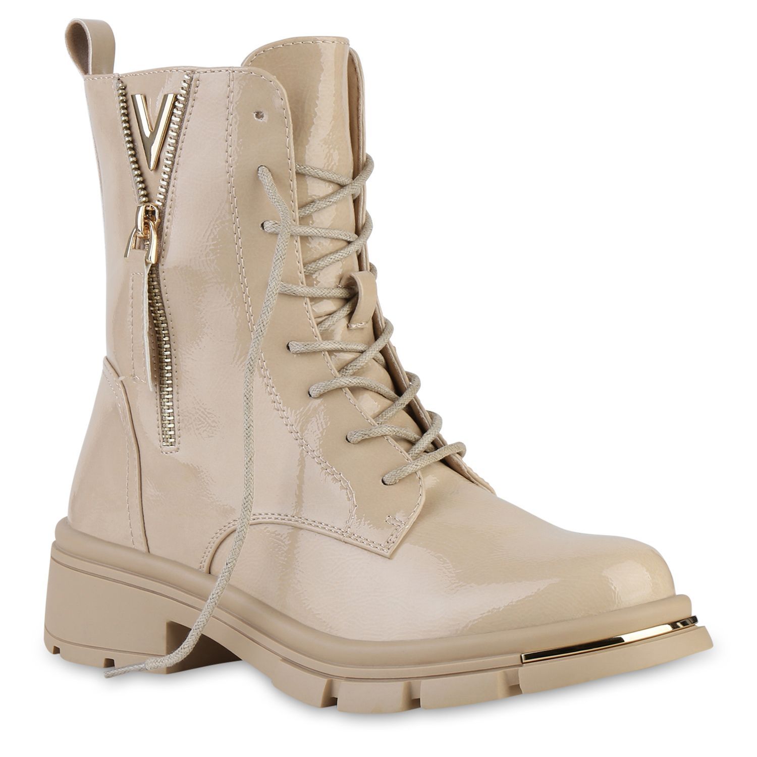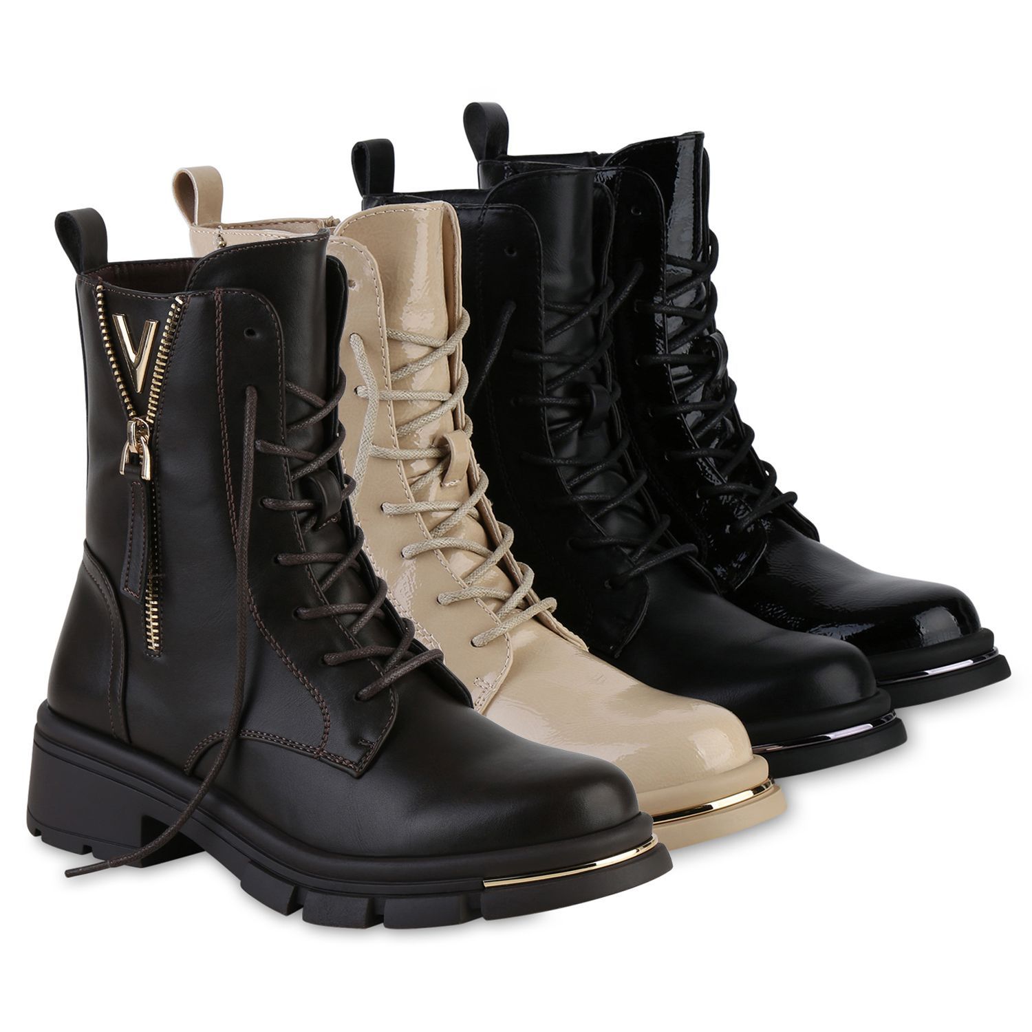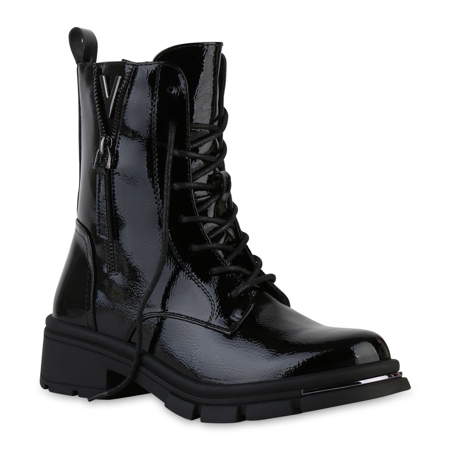 VAN HILL Damen Leicht Gefüttert Schnürstiefeletten Stiefeletten Lack Schuhe 841392