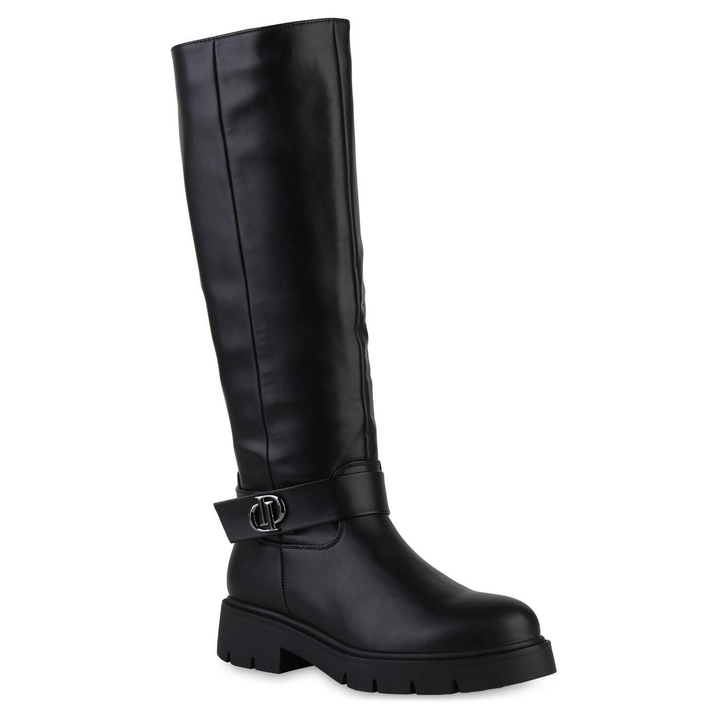 VAN HILL Damen Leicht Gefütterte Bikerstiefel Stiefel Profil-Sohle Schuhe 841475