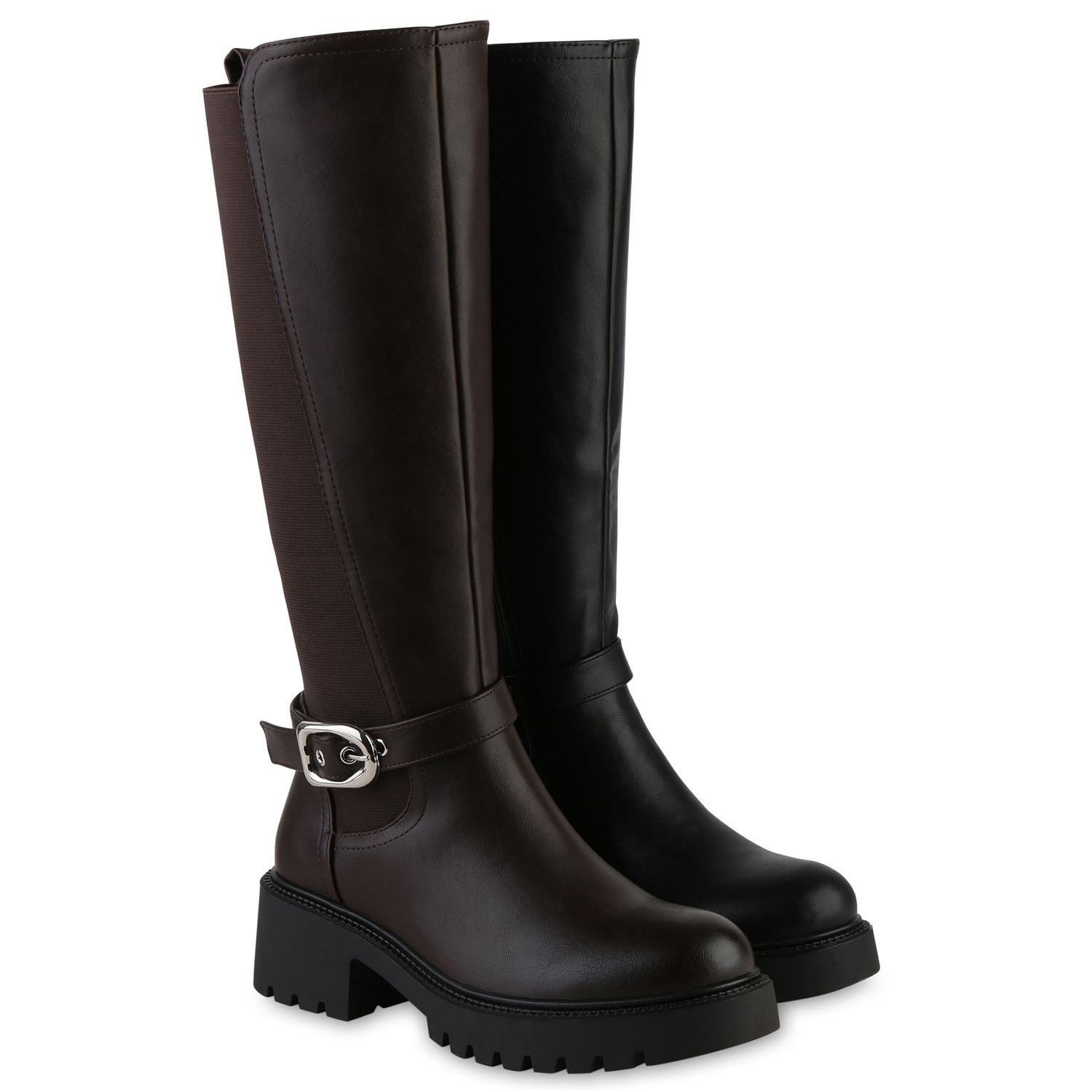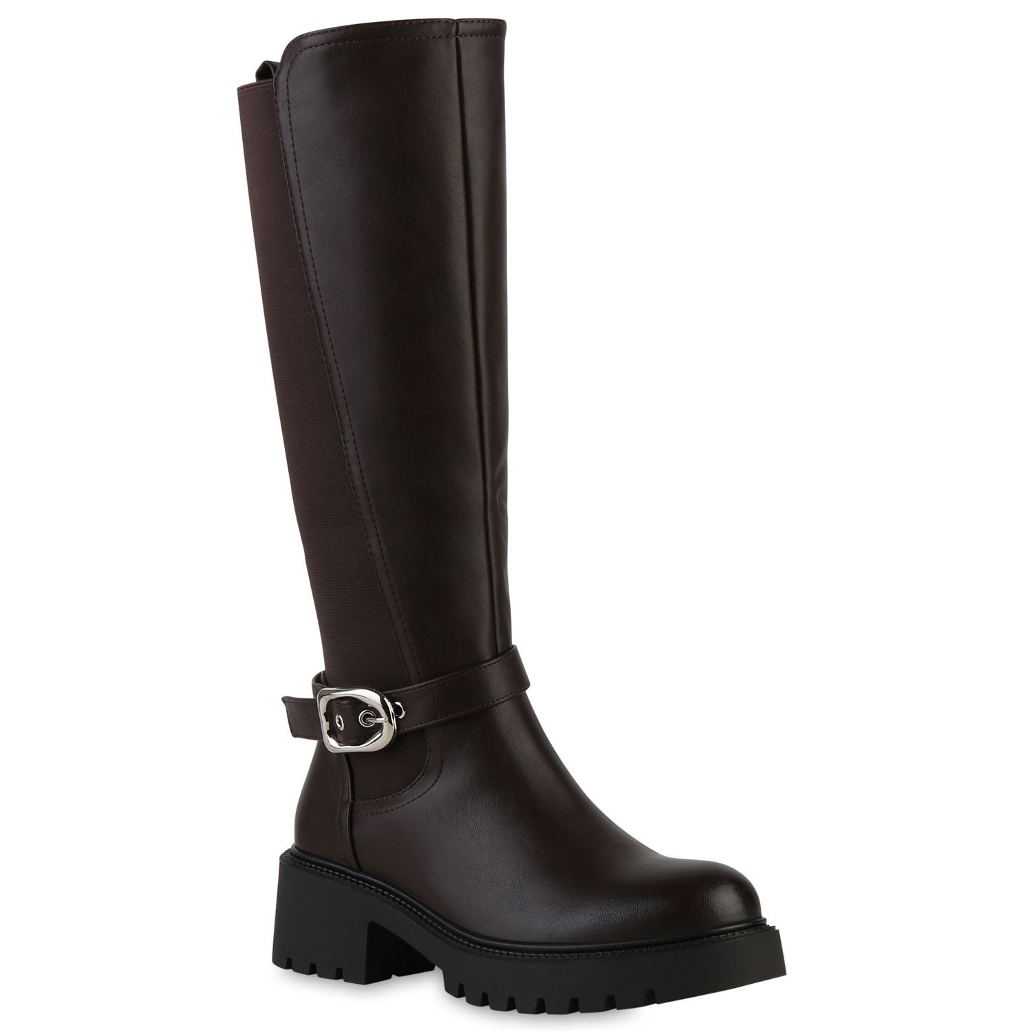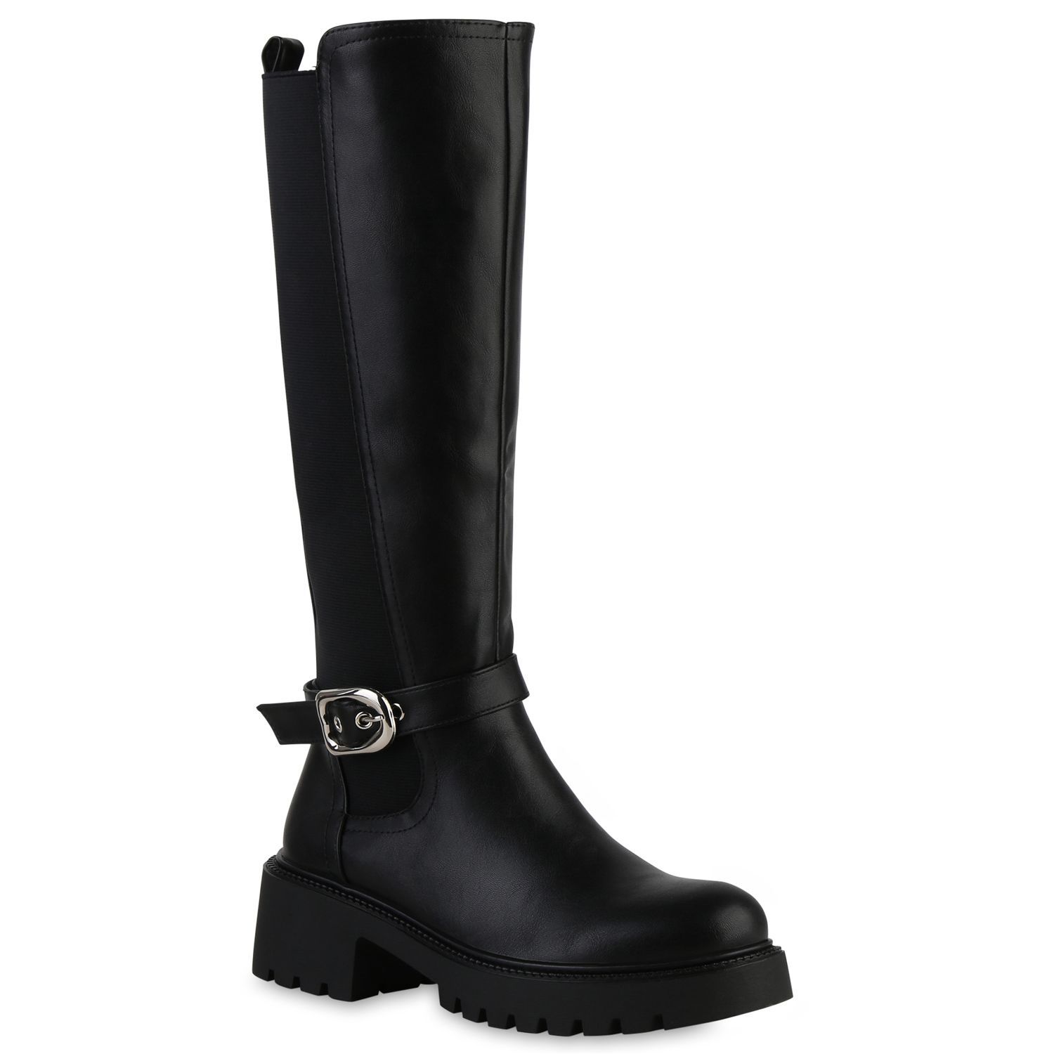 VAN HILL Damen Leicht Gefütterte Bikerstiefel Stiefel Profil-Sohle Schuhe 841838