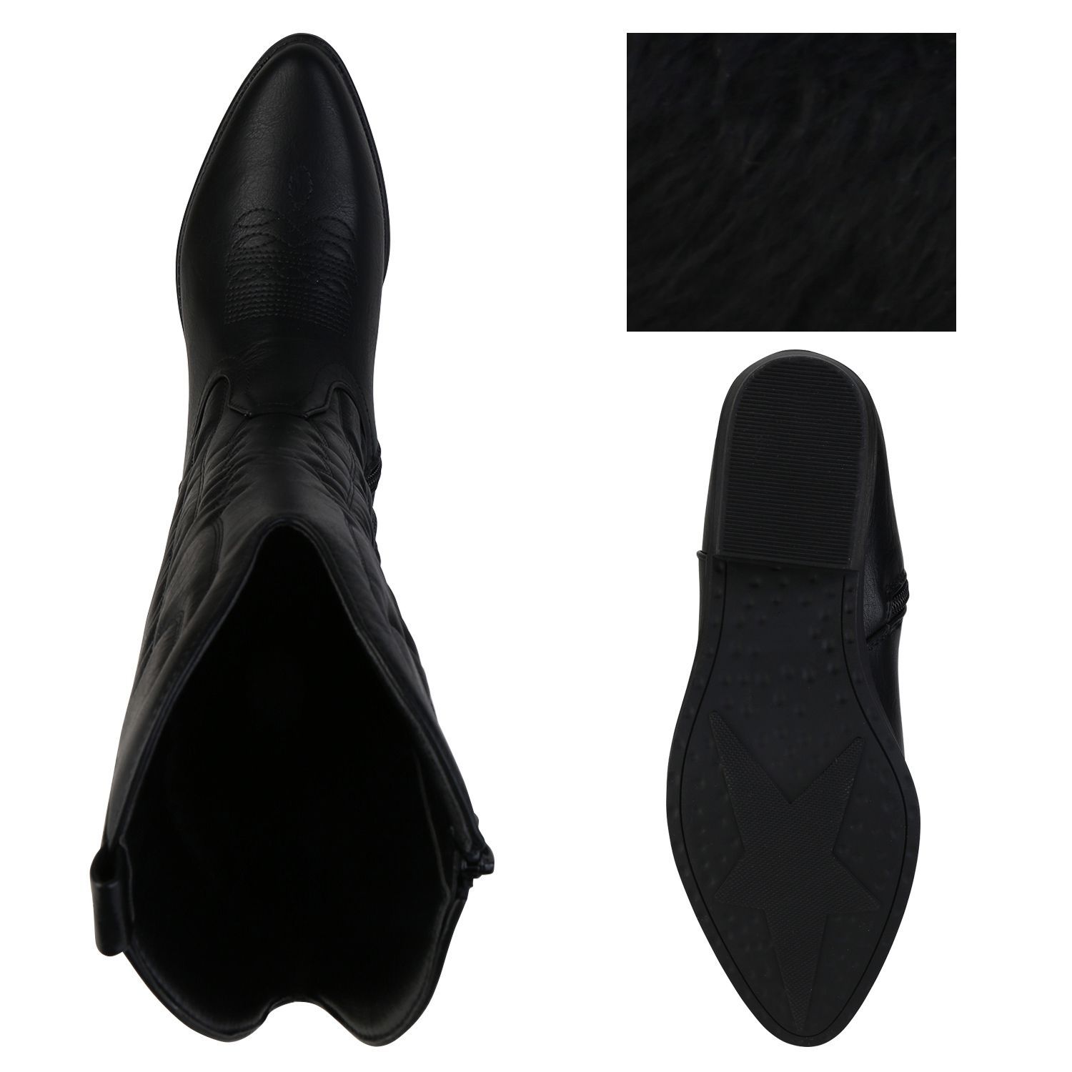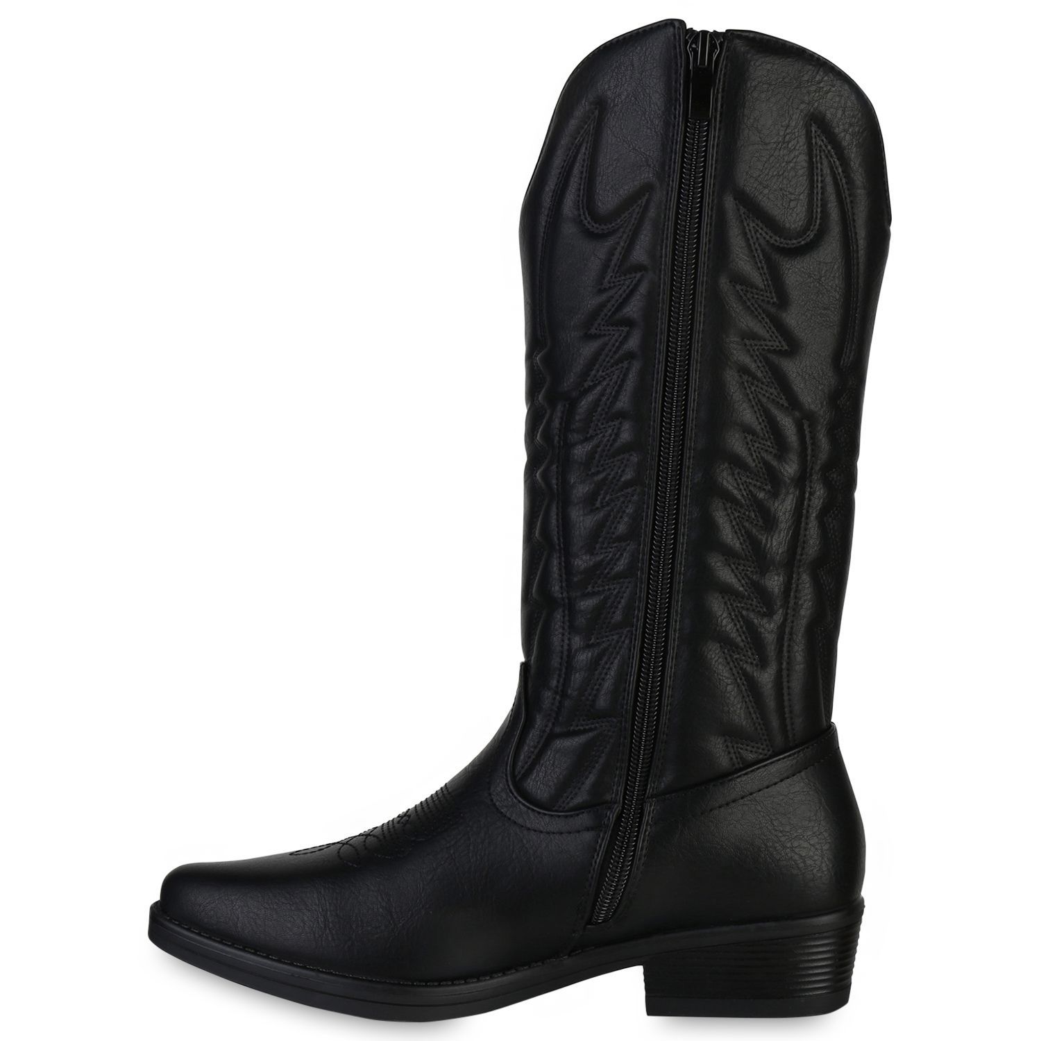 VAN HILL Damen Leicht Gefütterte Cowboystiefel Stiefel Stickereien Schuhe 839106