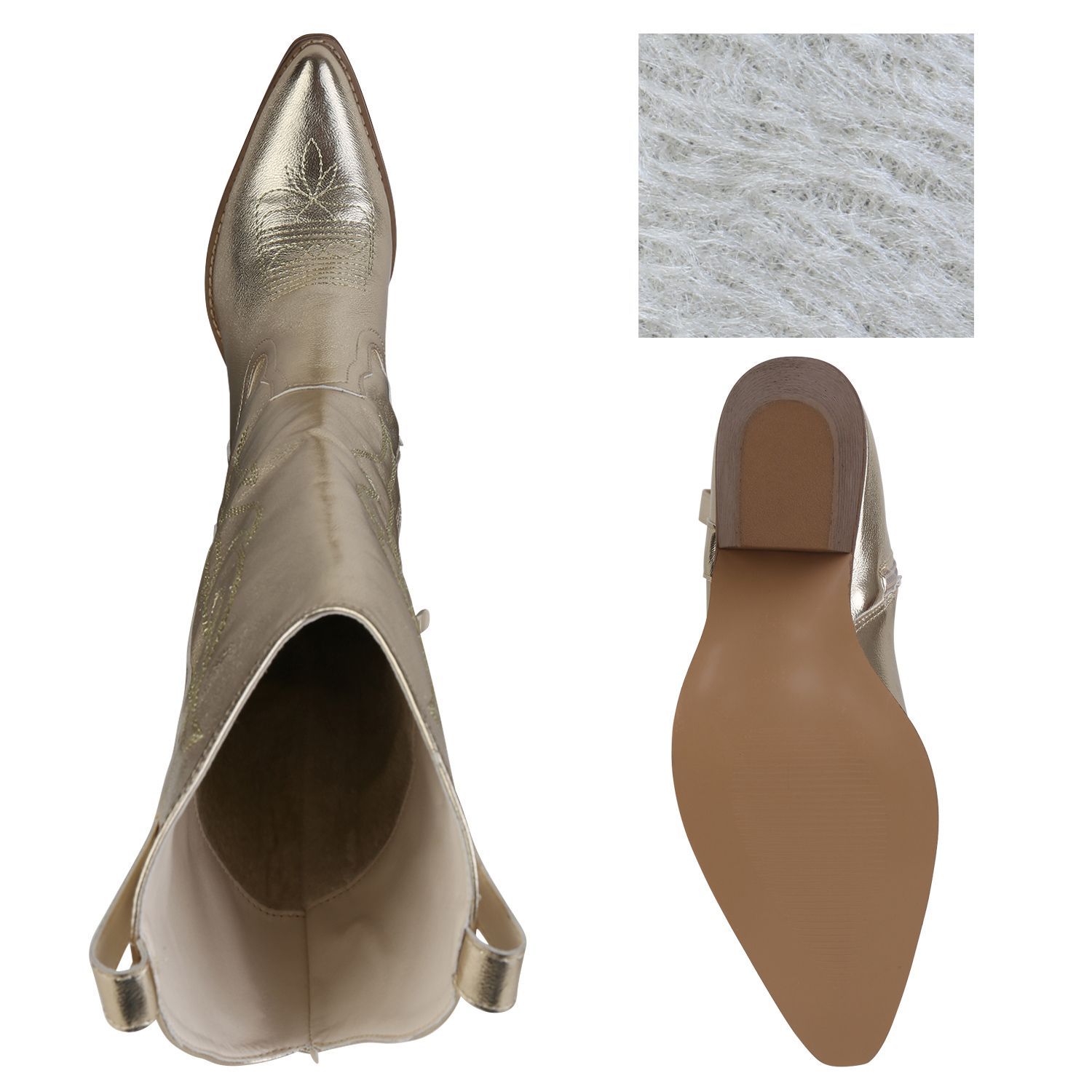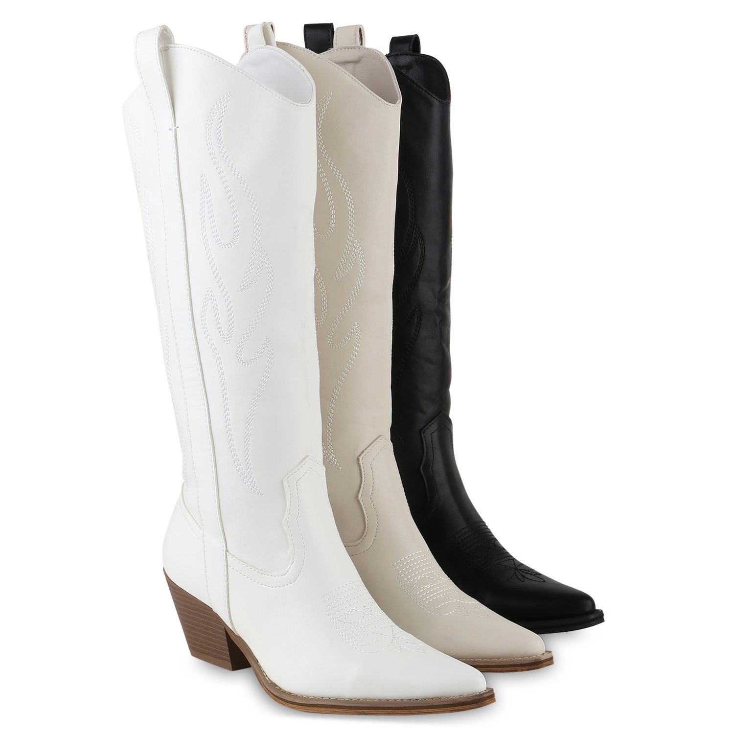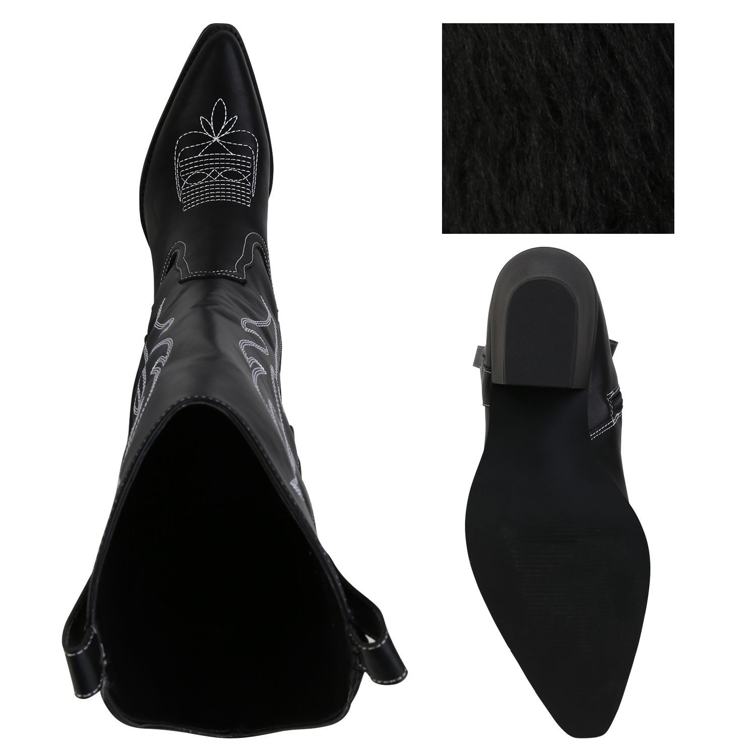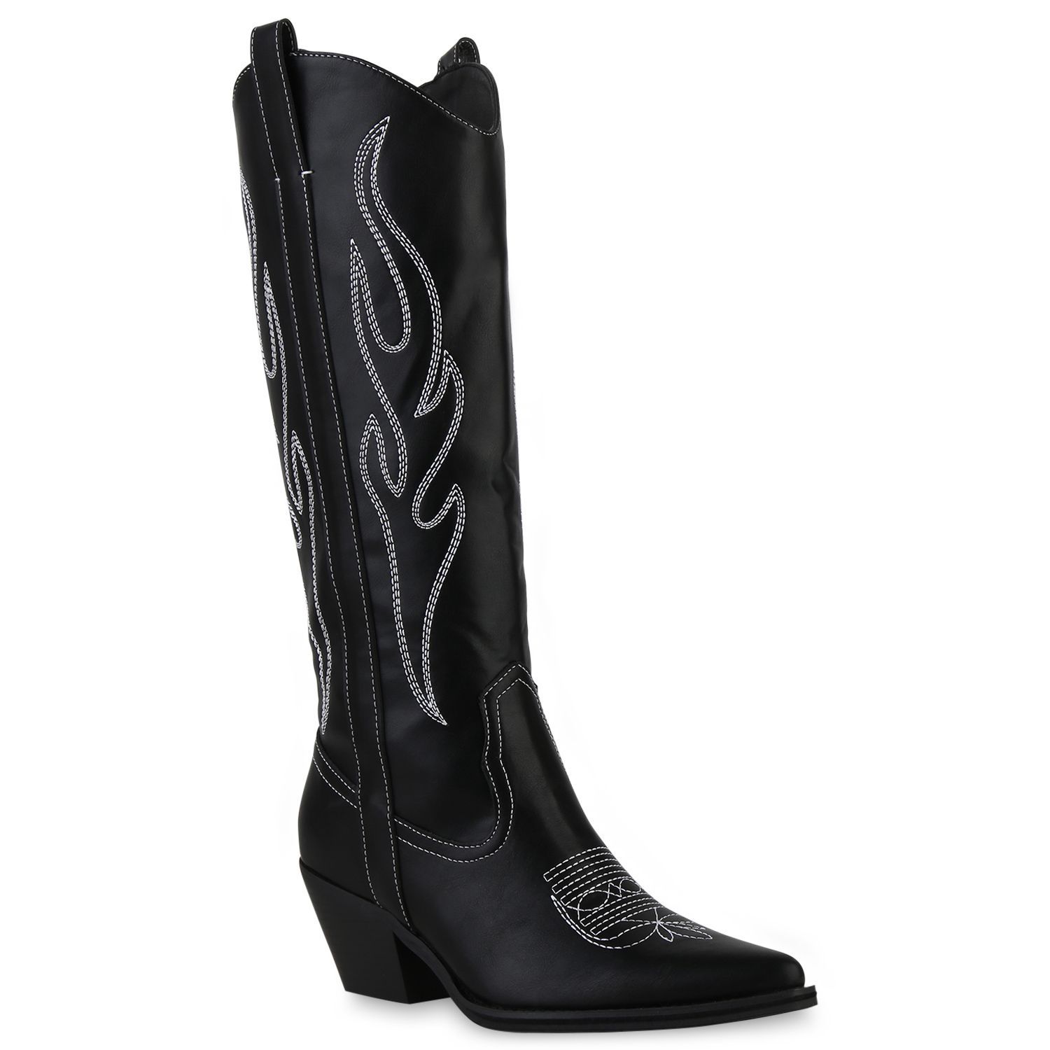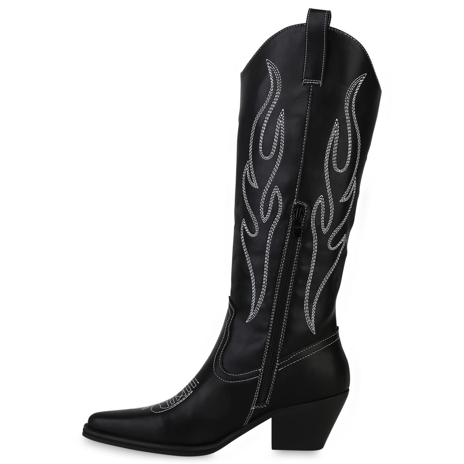 VAN HILL Damen Leicht Gefütterte Cowboystiefel Stiefel Stickereien Schuhe 839870