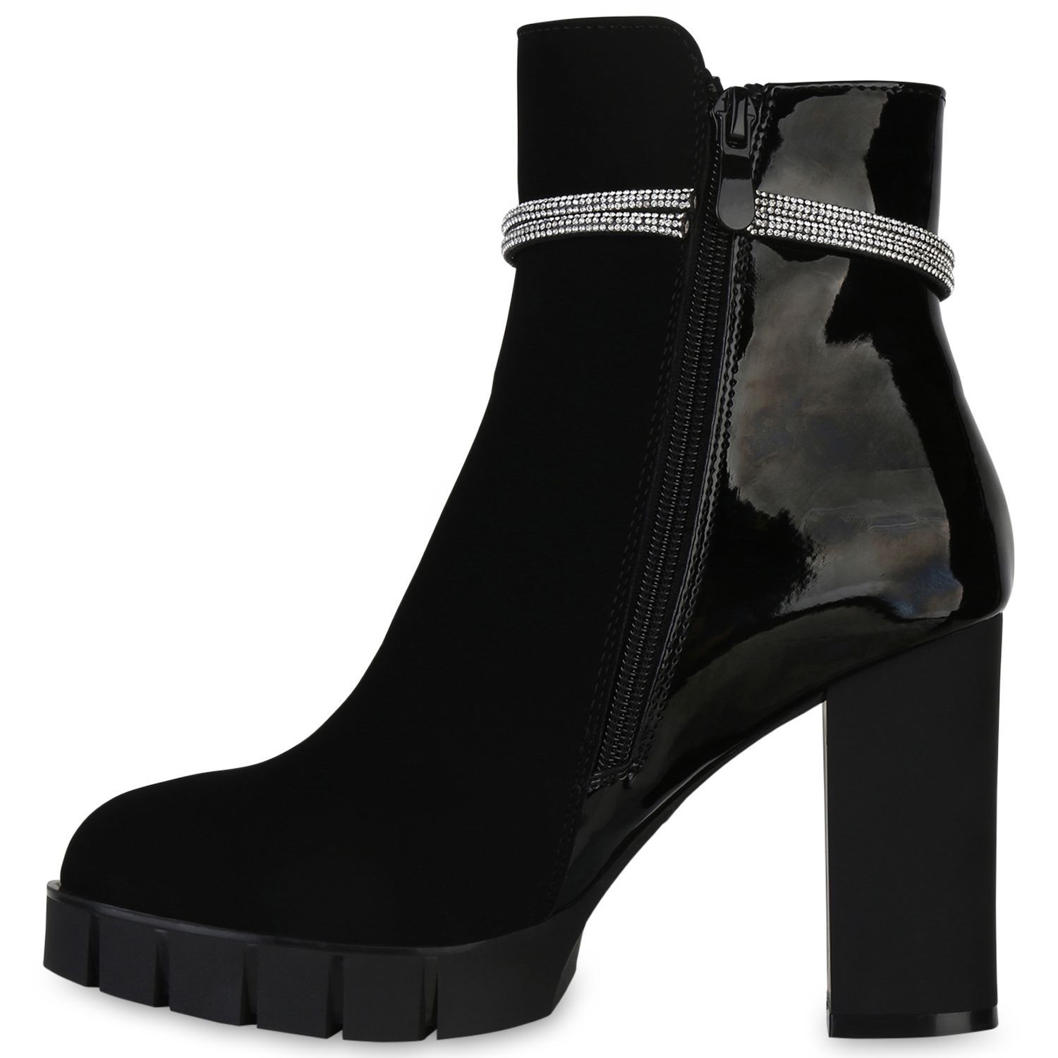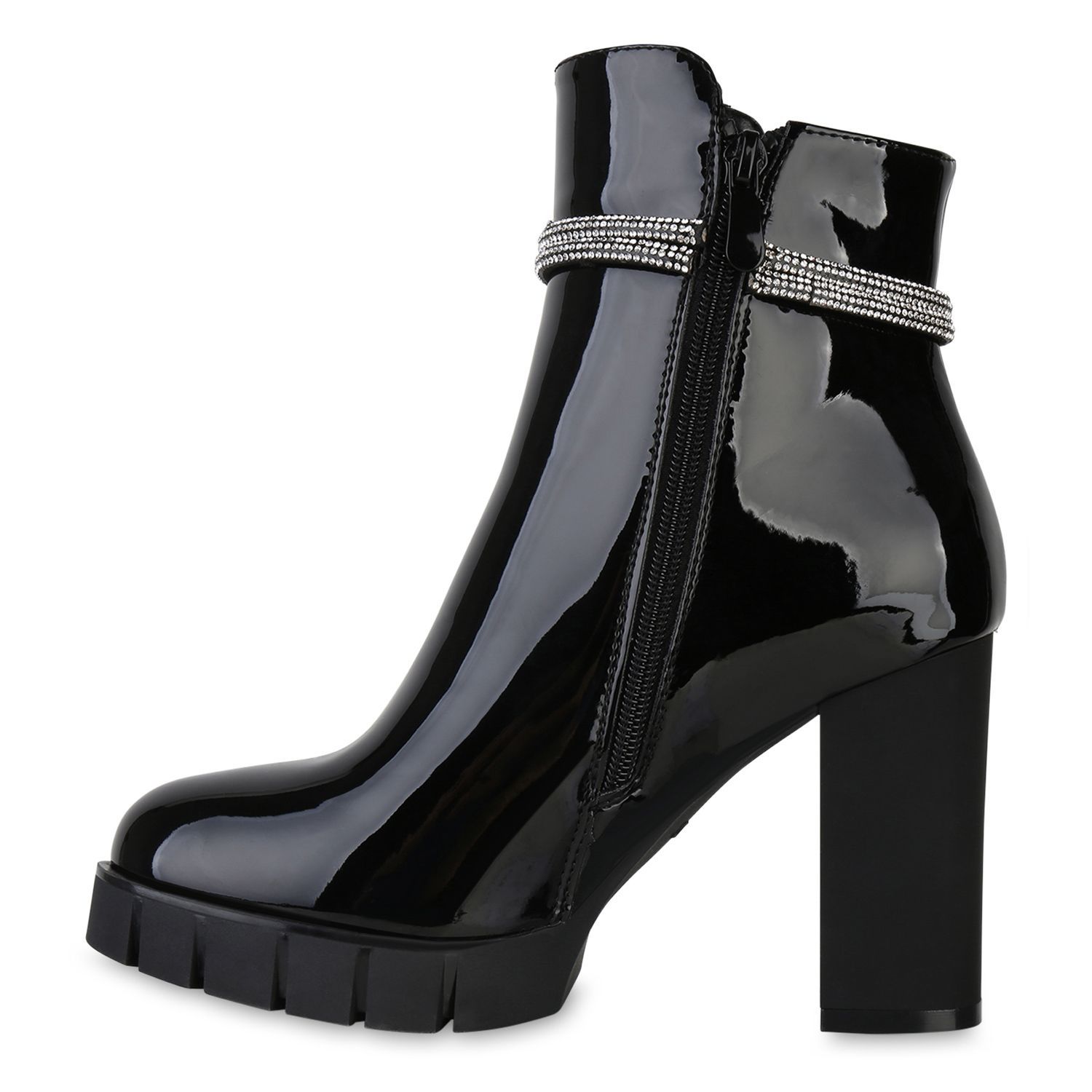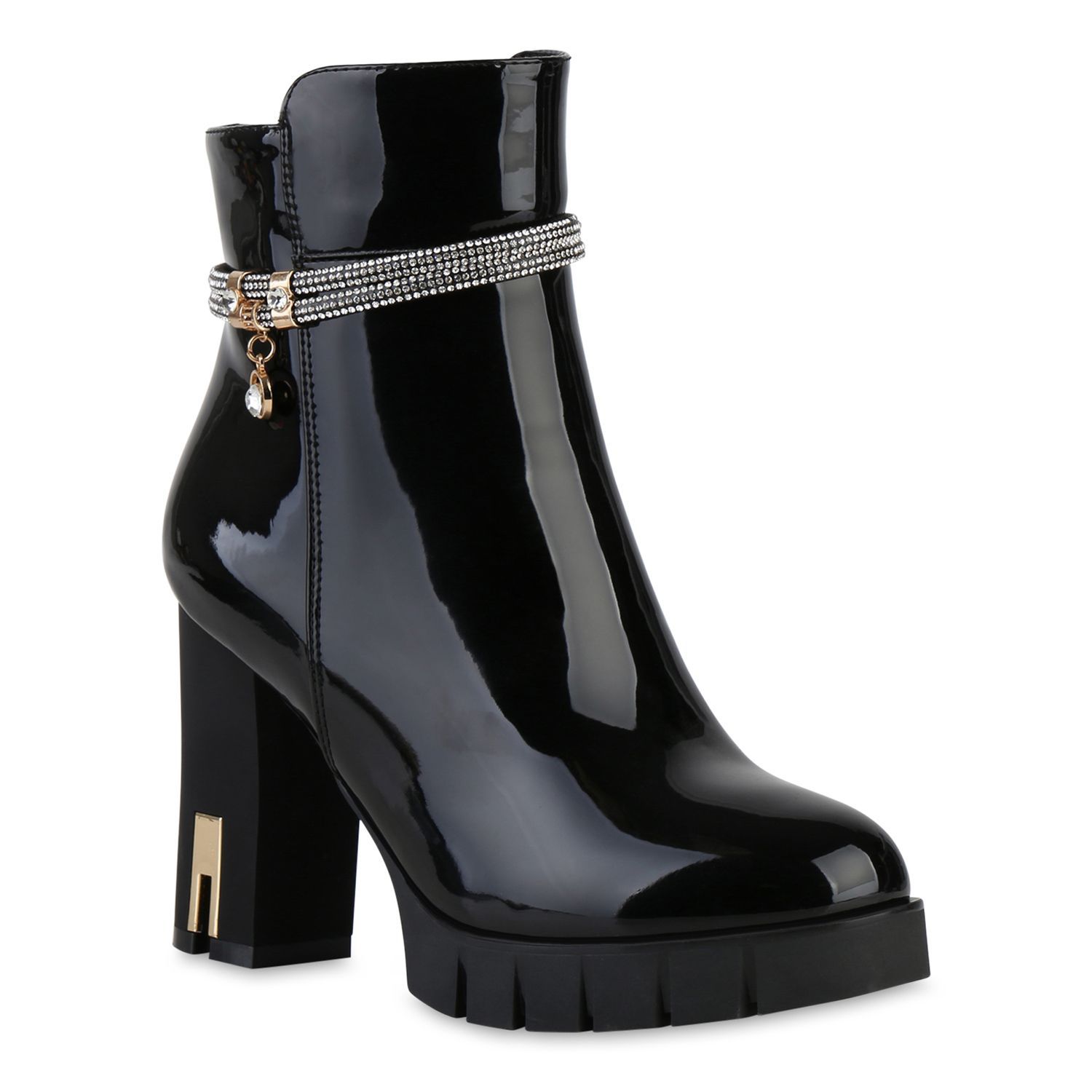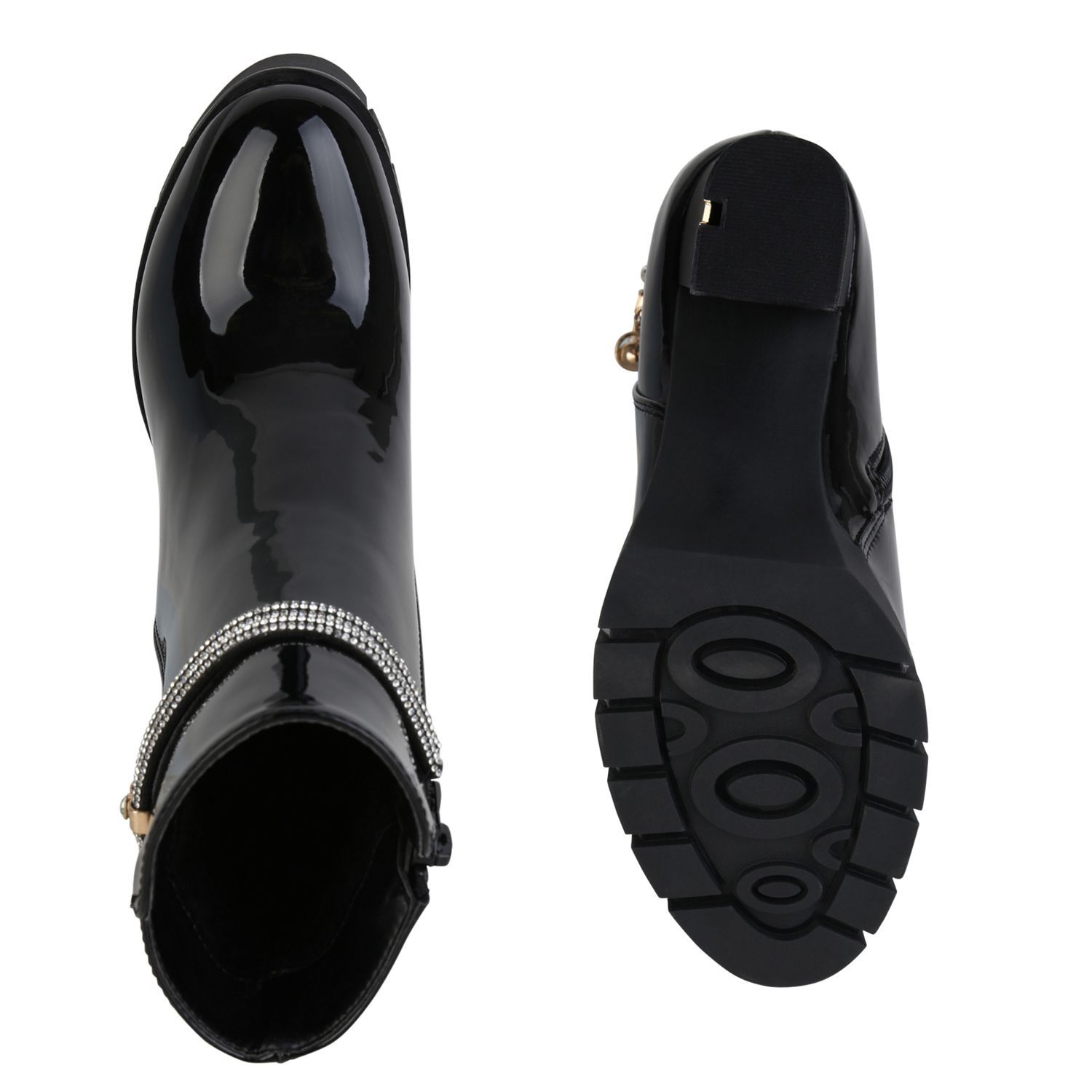 VAN HILL Damen Leicht Gefütterte Klassische Stiefeletten Strass Lack Schuhe 840506
