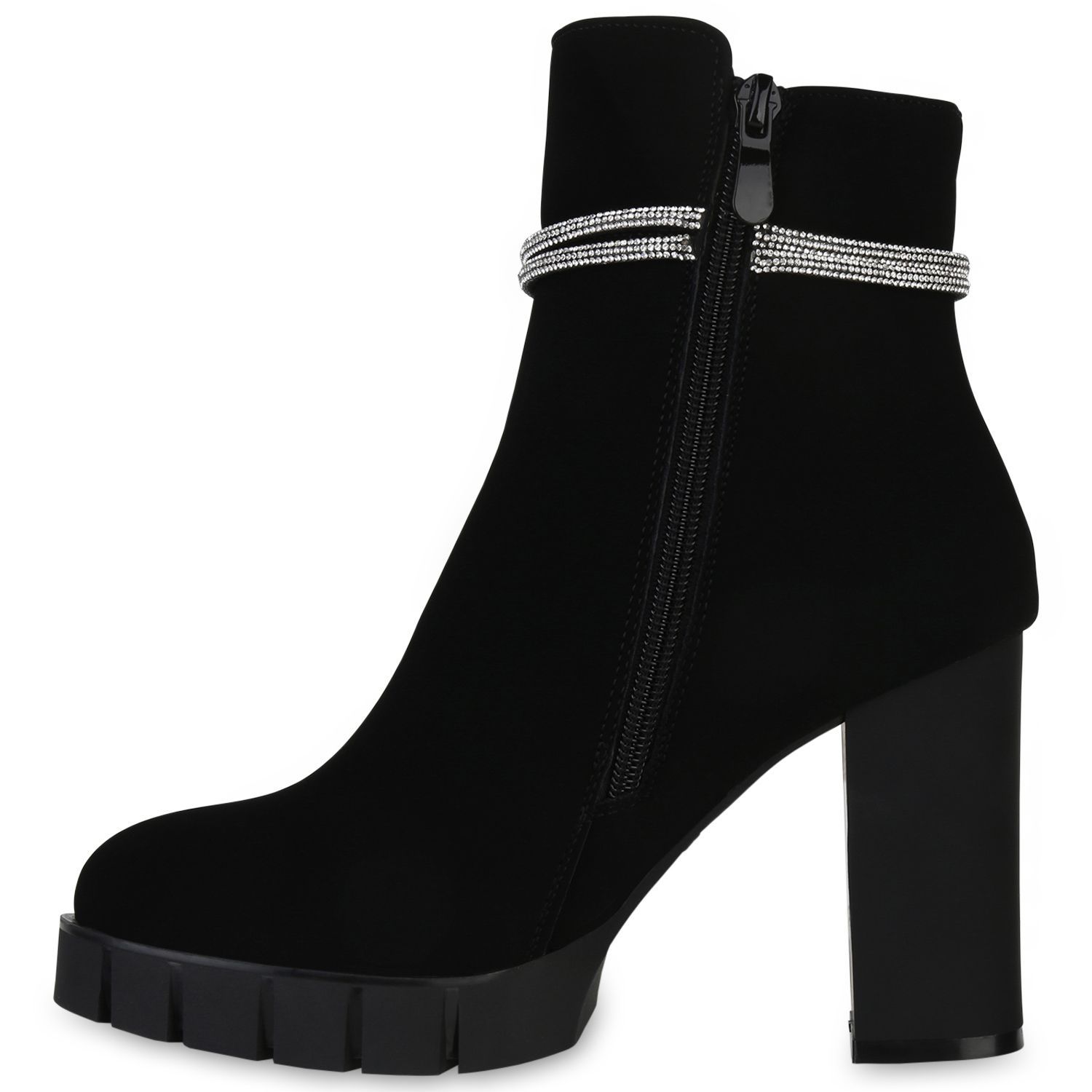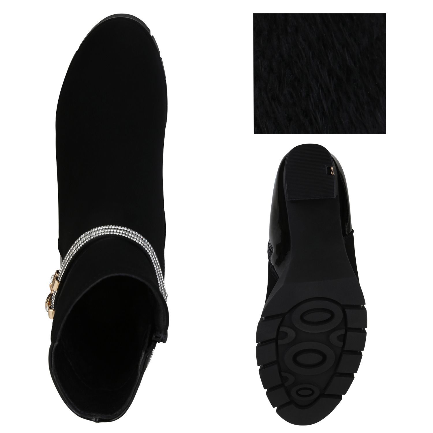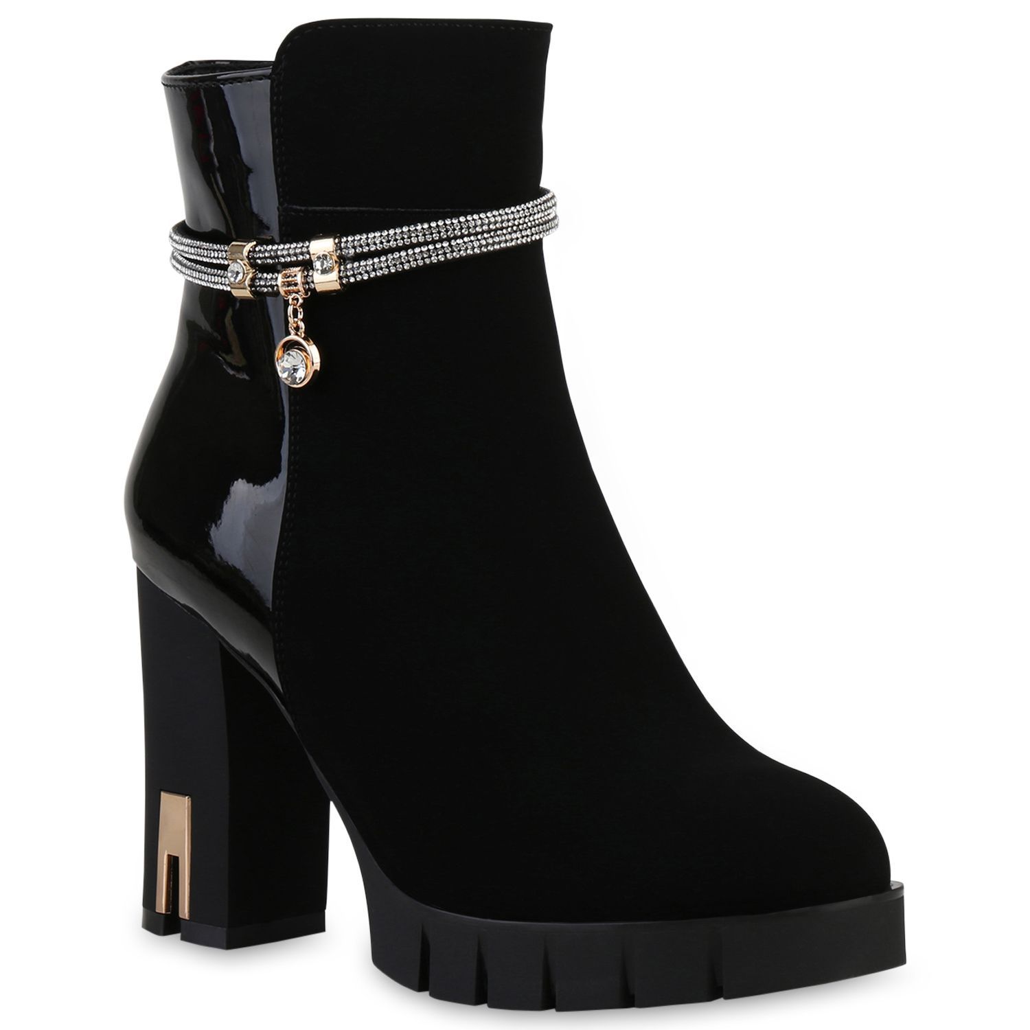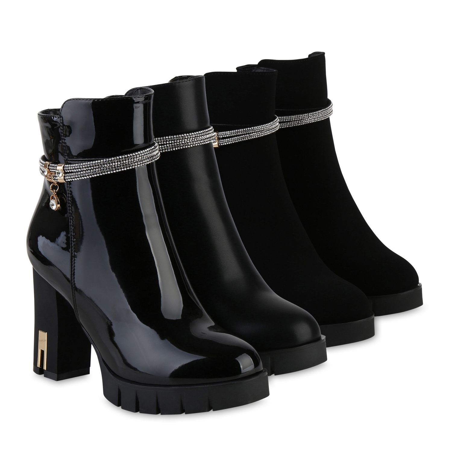 VAN HILL Damen Leicht Gefütterte Klassische Stiefeletten Strass Lack Schuhe 840506