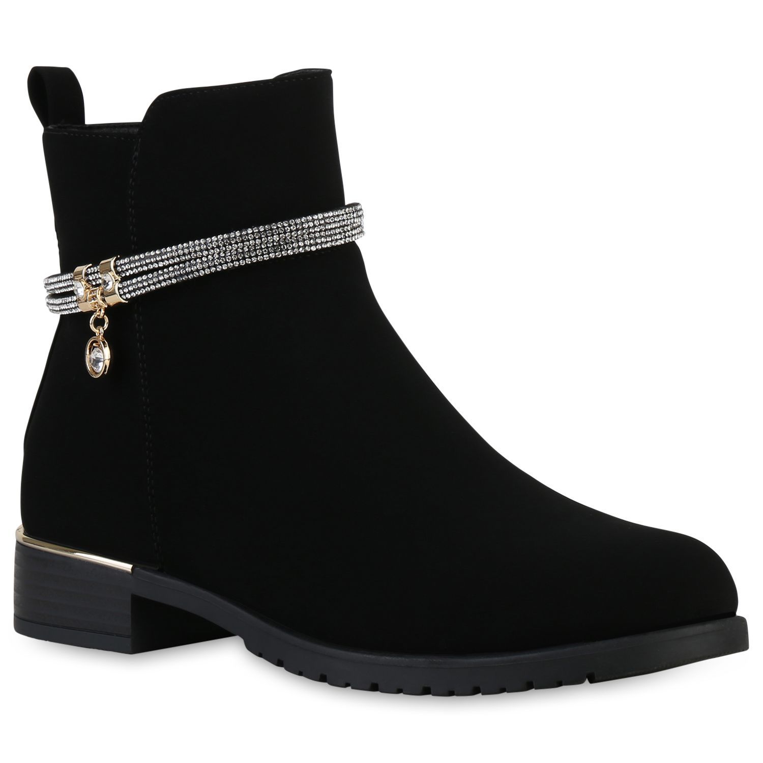 VAN HILL Damen Leicht Gefütterte Klassische Stiefeletten Zierperlen Schuhe 840507