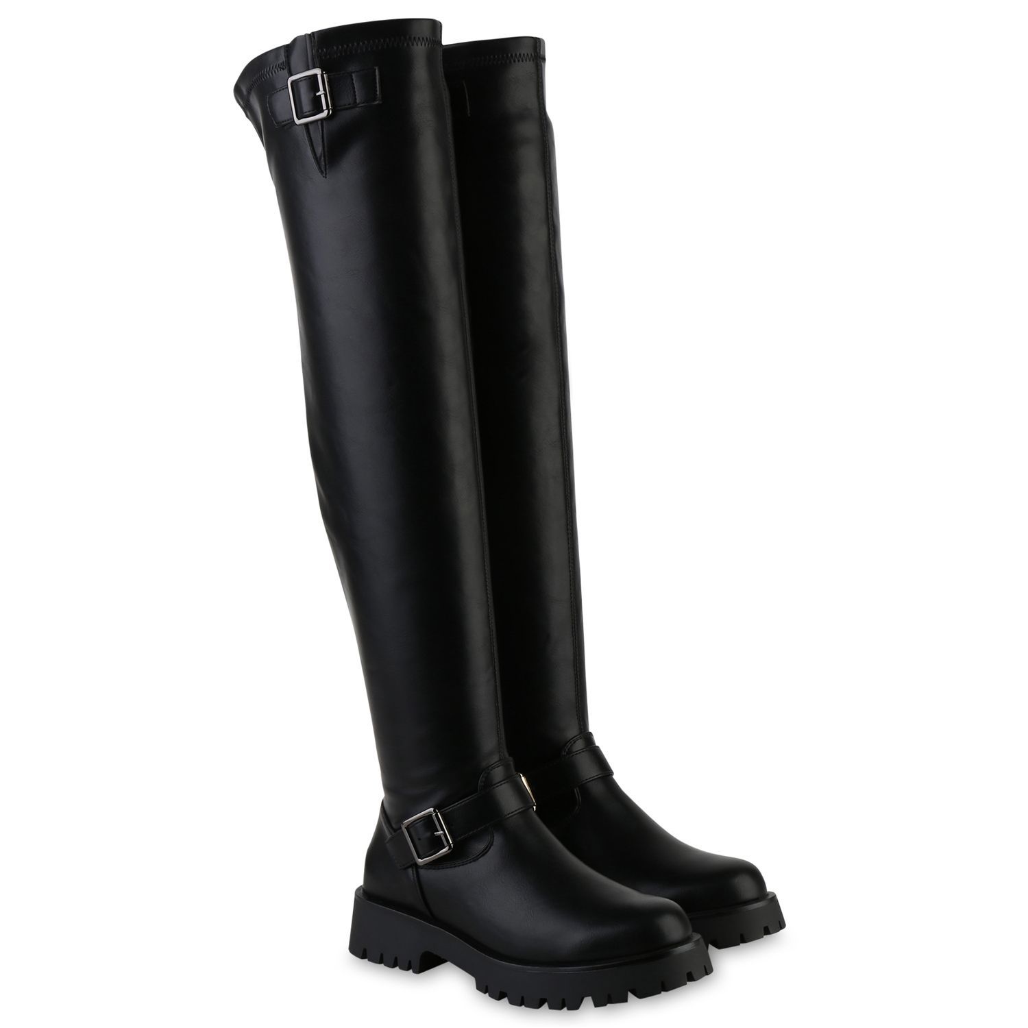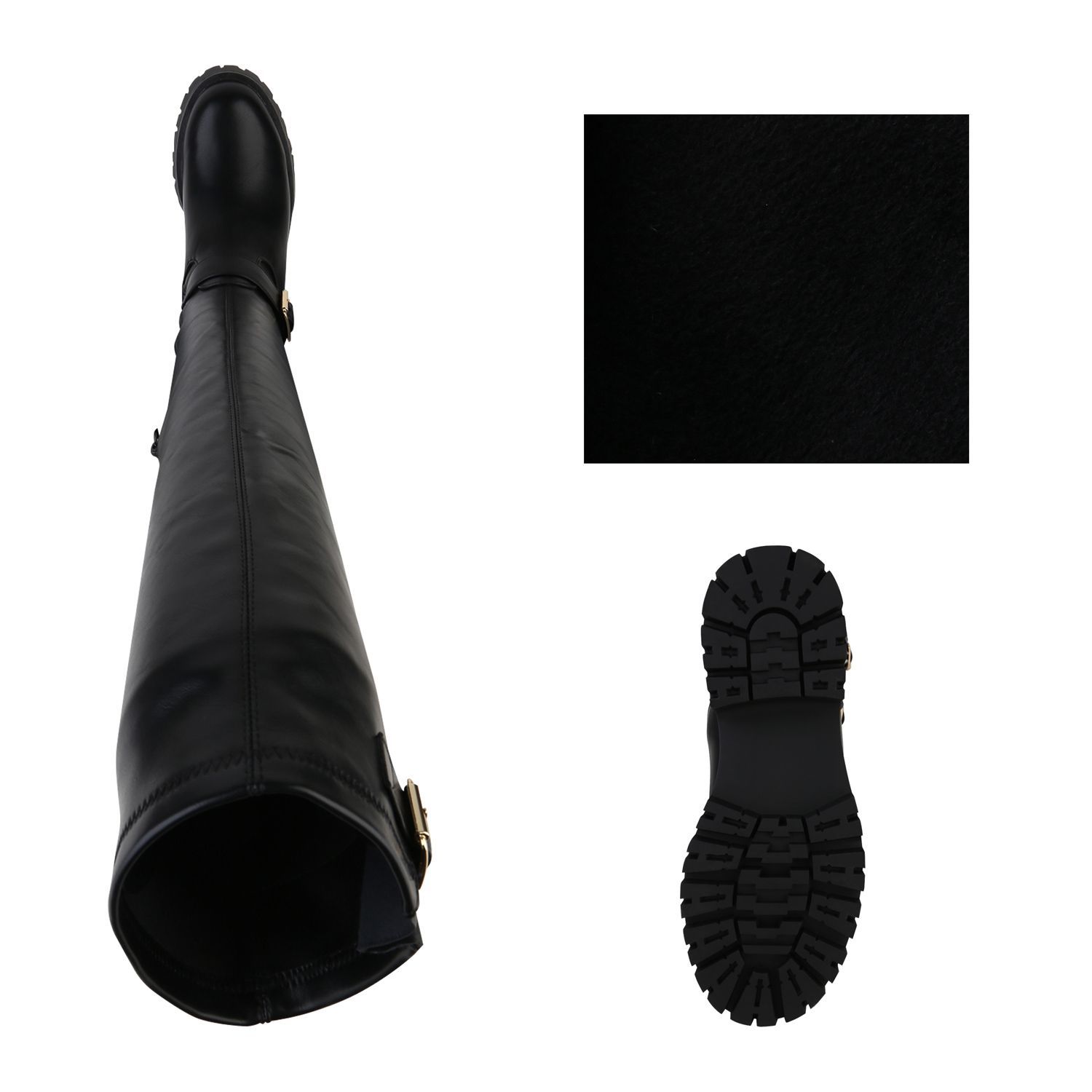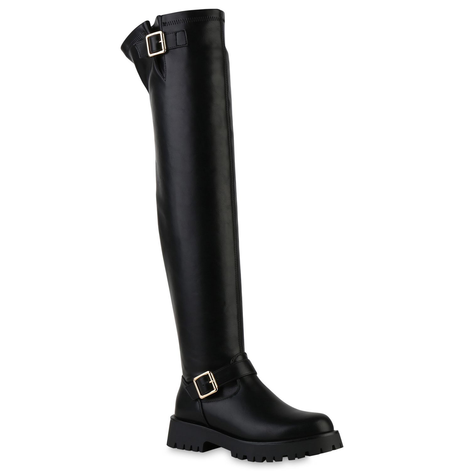 VAN HILL Damen Leicht Gefütterte Overknees Stiefel Profil-Sohle Schuhe 841817