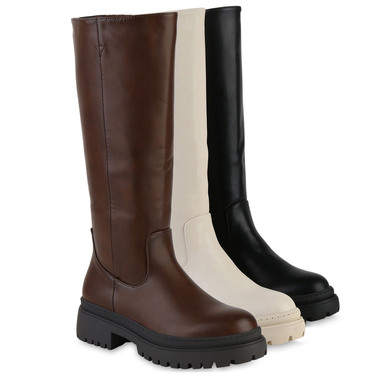 VAN HILL Damen Leicht Gefütterte Plateaustiefel Stiefel Profil-Sohle Schuhe 839531