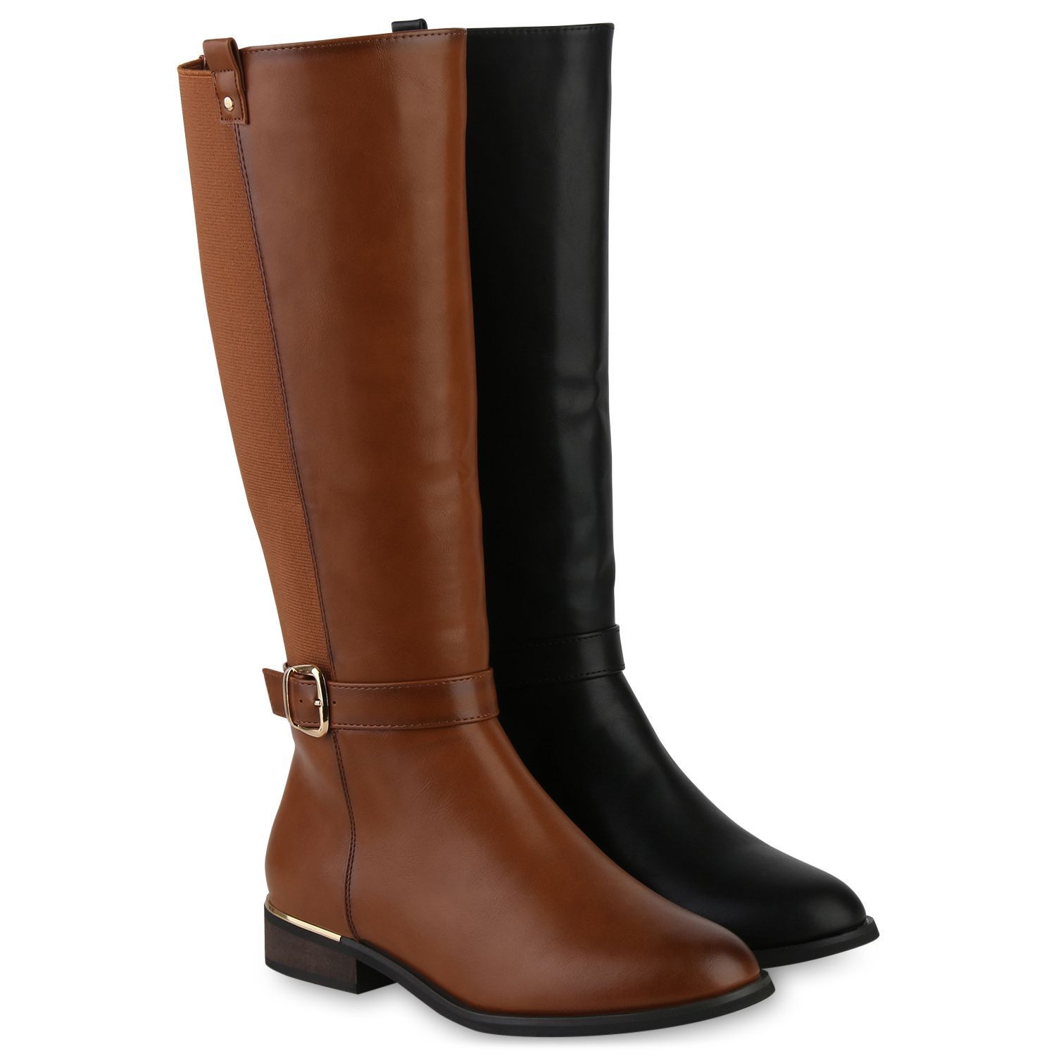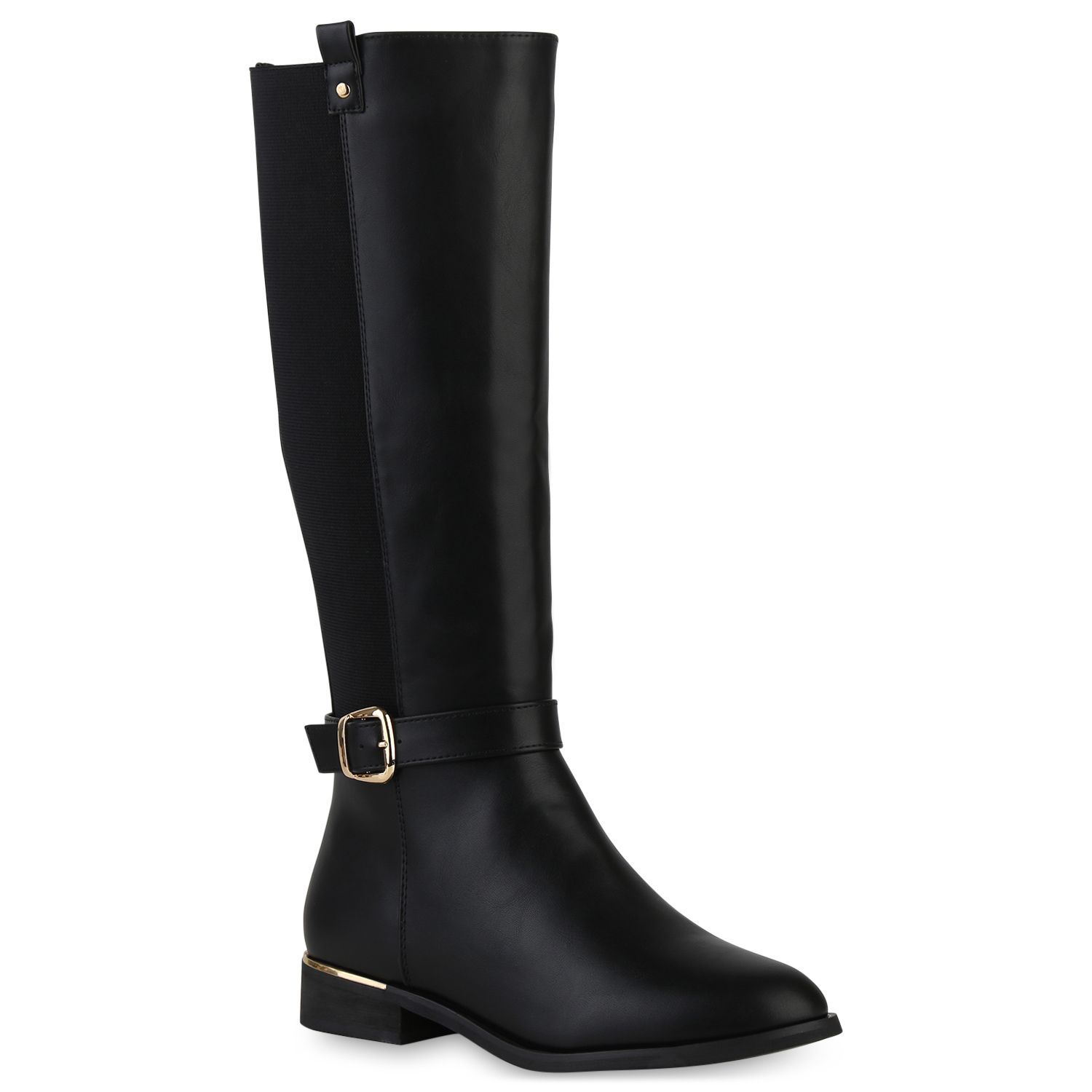 VAN HILL Damen Leicht Gefütterte Reiterstiefel Schnallen Freizeit Schuhe 840544