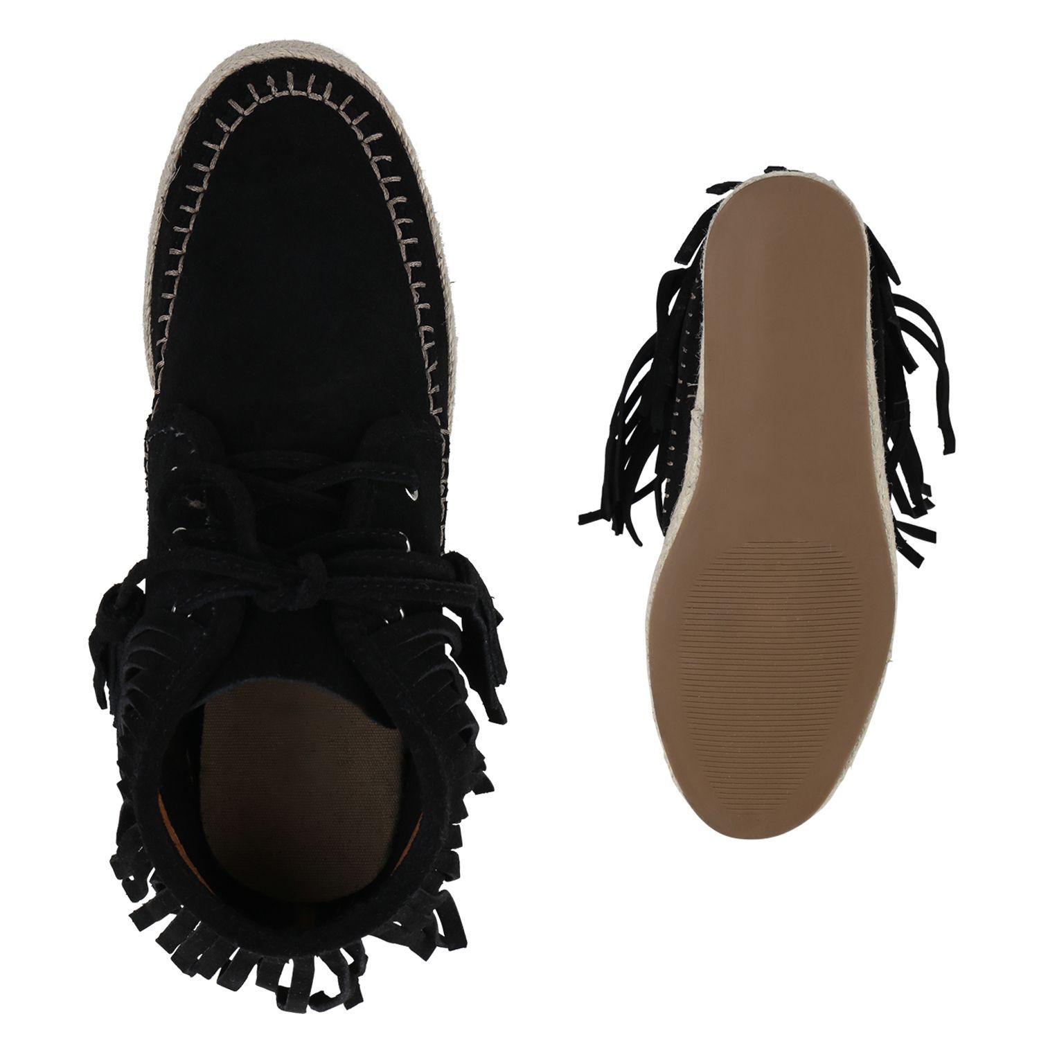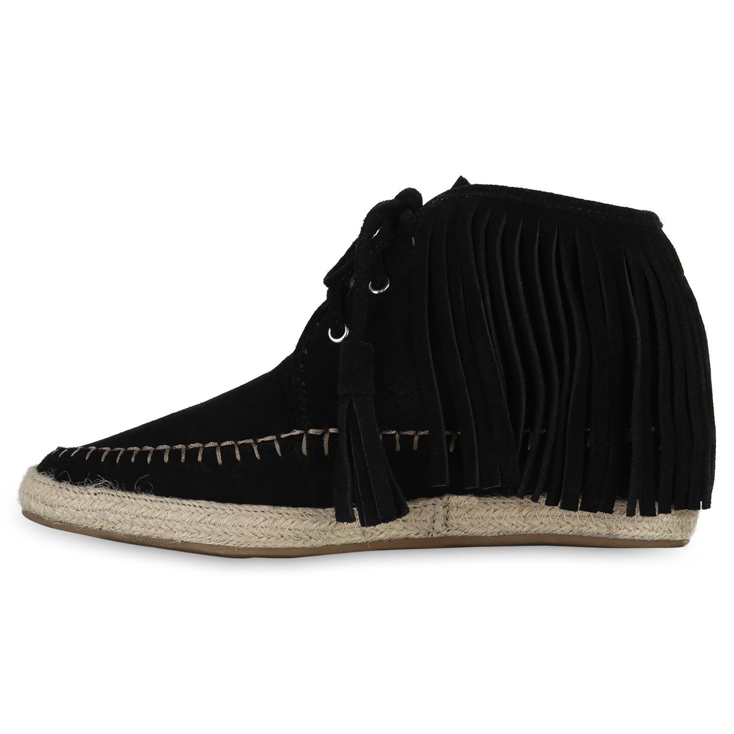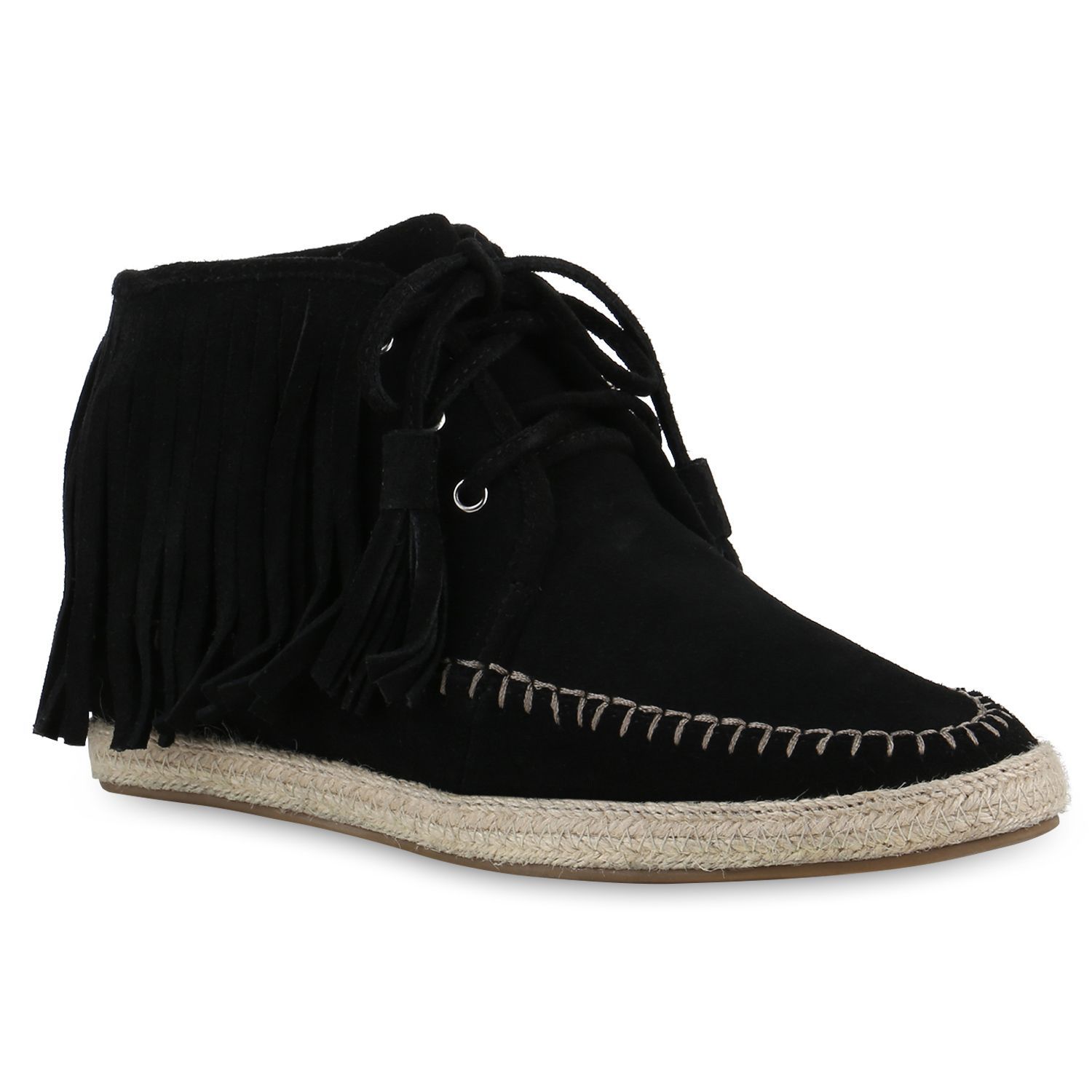 VAN HILL Damen Mokassins Stiefeletten Fransen Schnürer Bast Schnür-Schuhe 840799