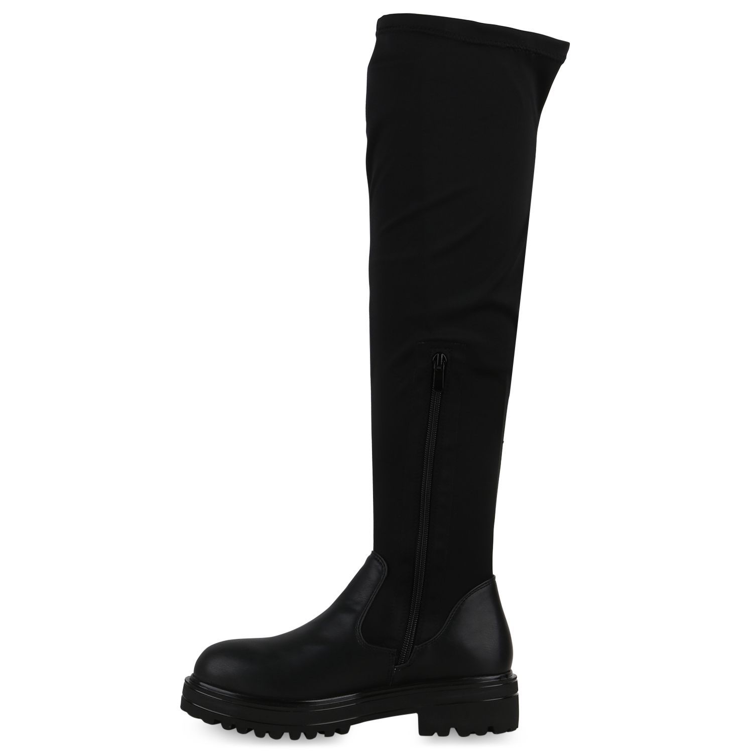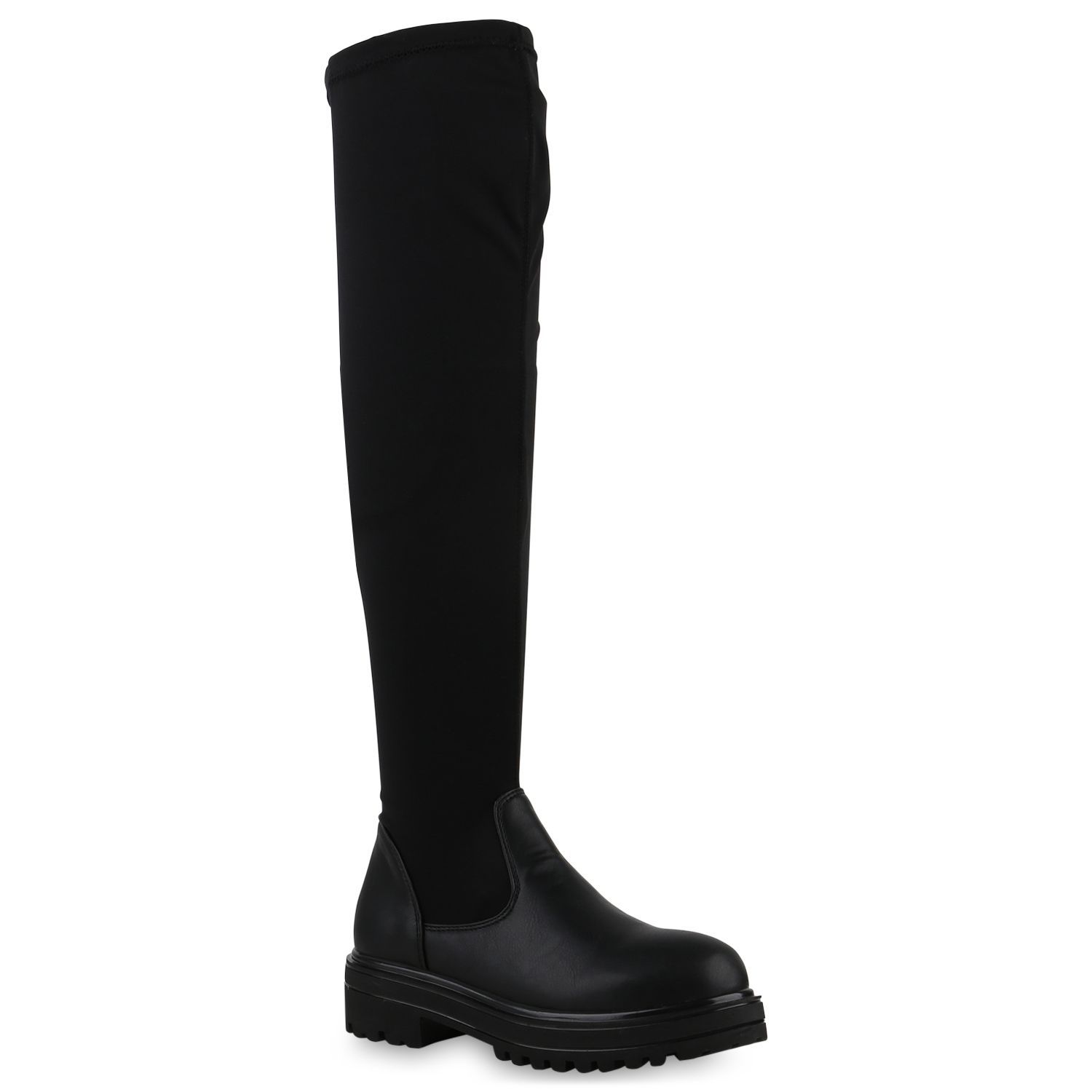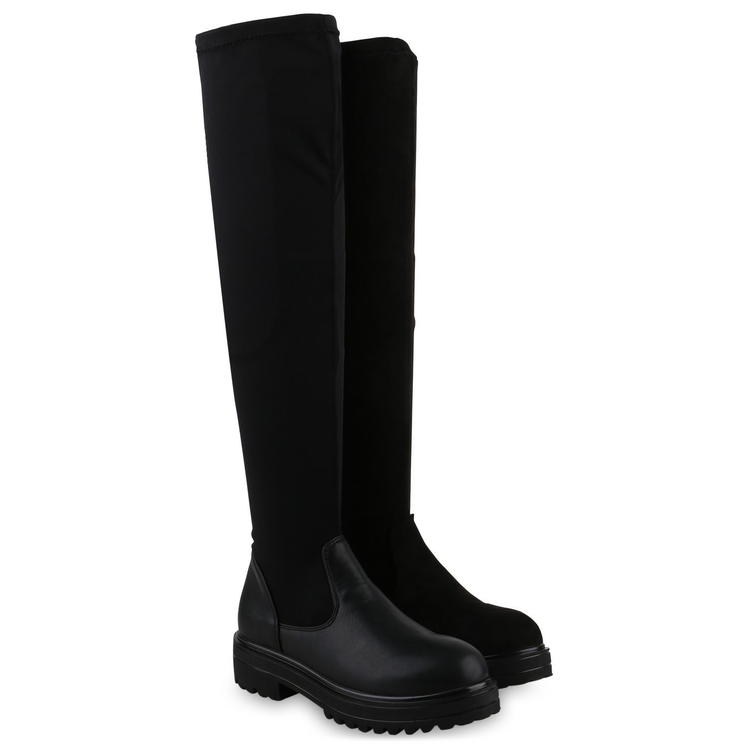 VAN HILL Damen Overknees Stiefel Plateau Vorne Profil-Sohle Schuhe 840519