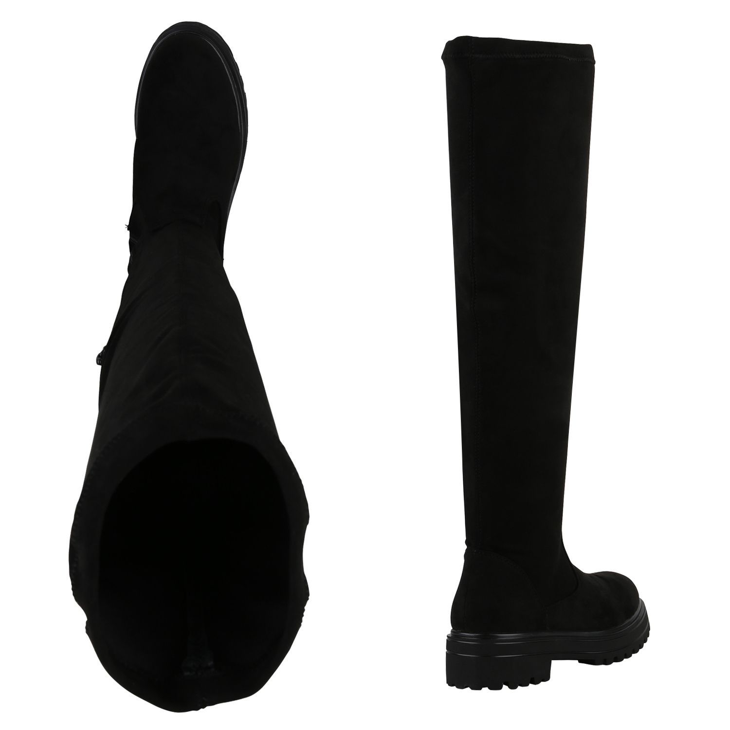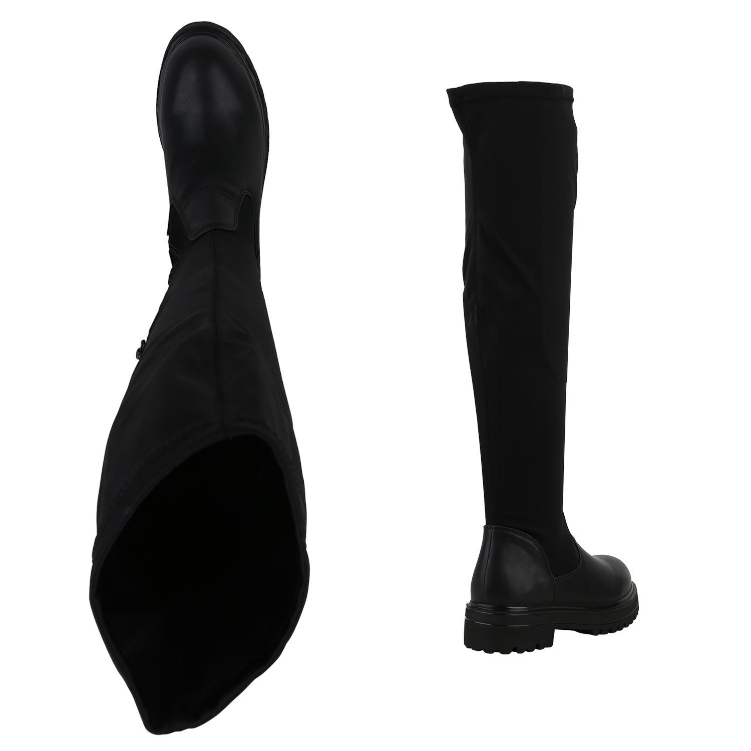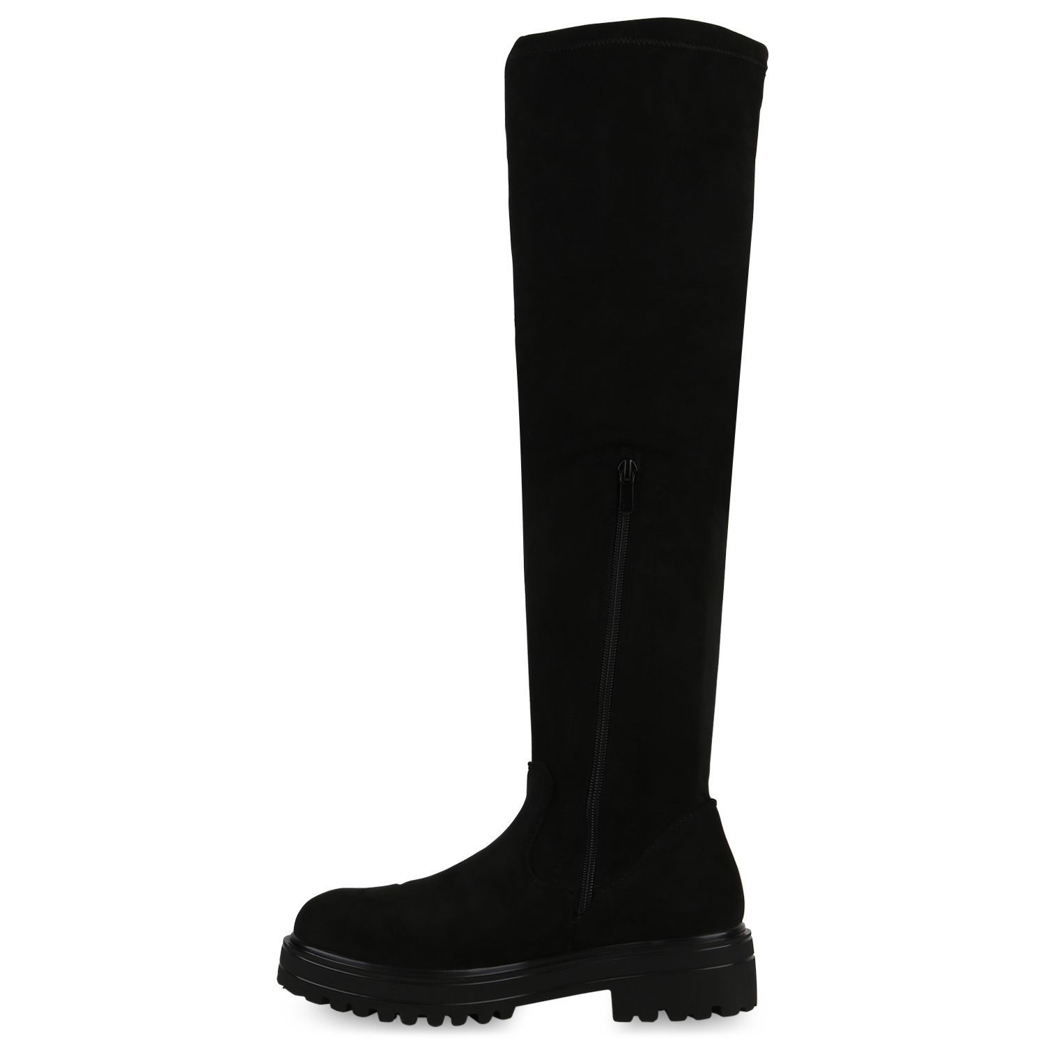 VAN HILL Damen Overknees Stiefel Plateau Vorne Profil-Sohle Schuhe 840519