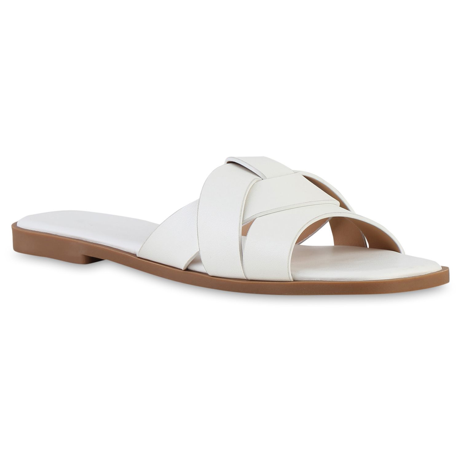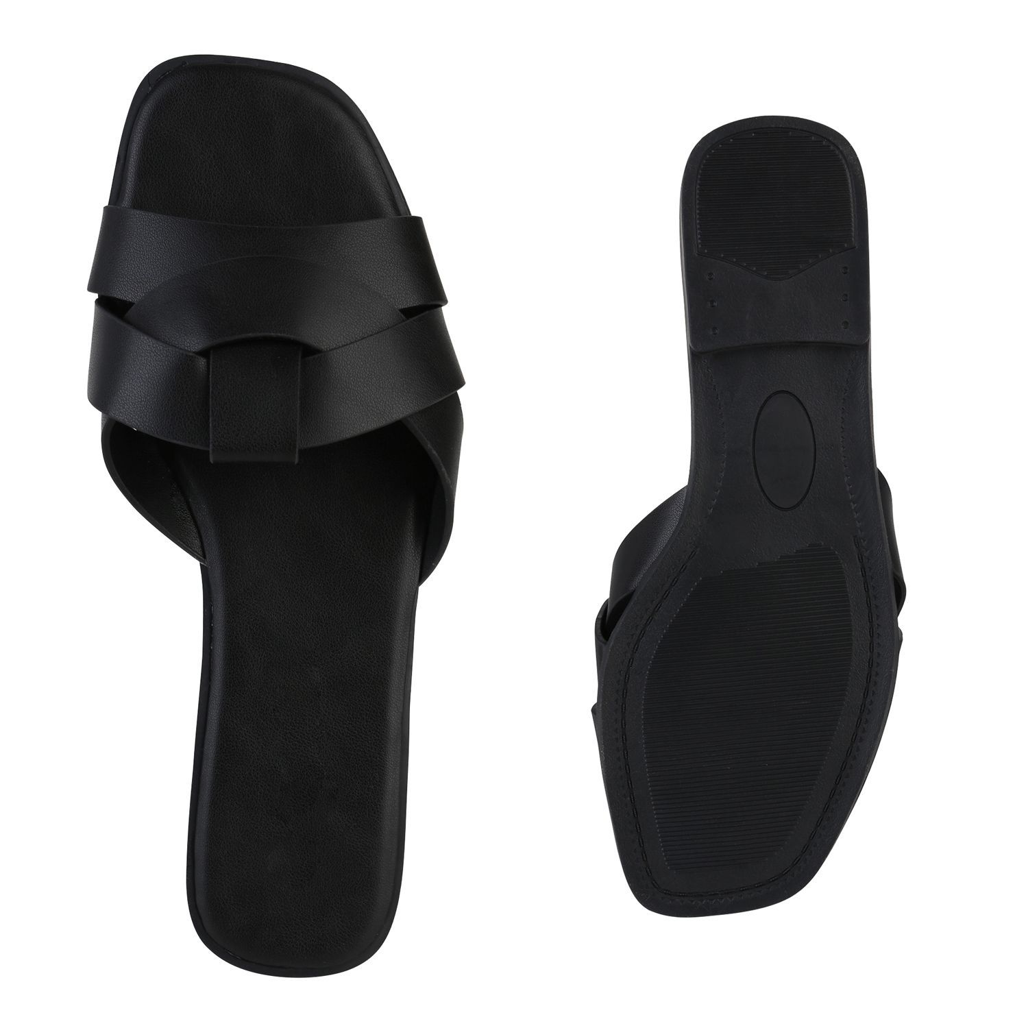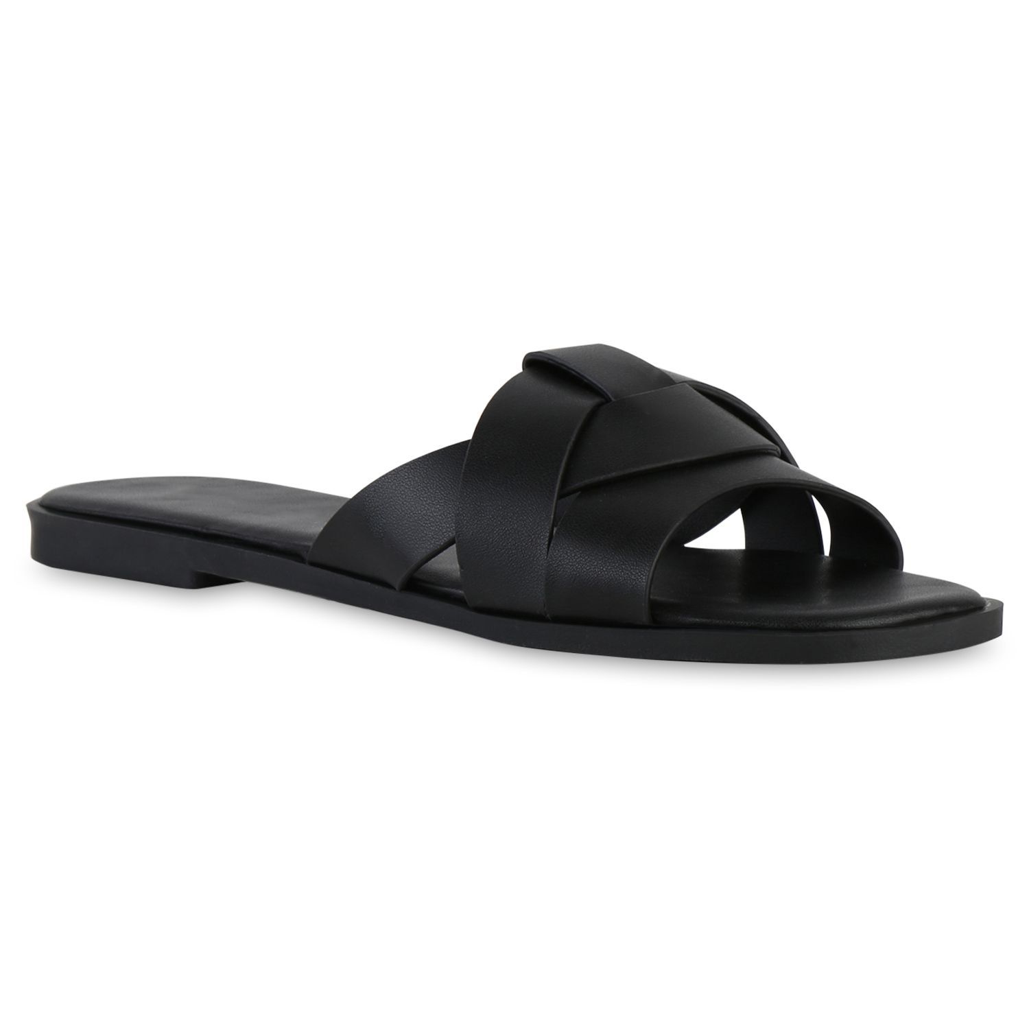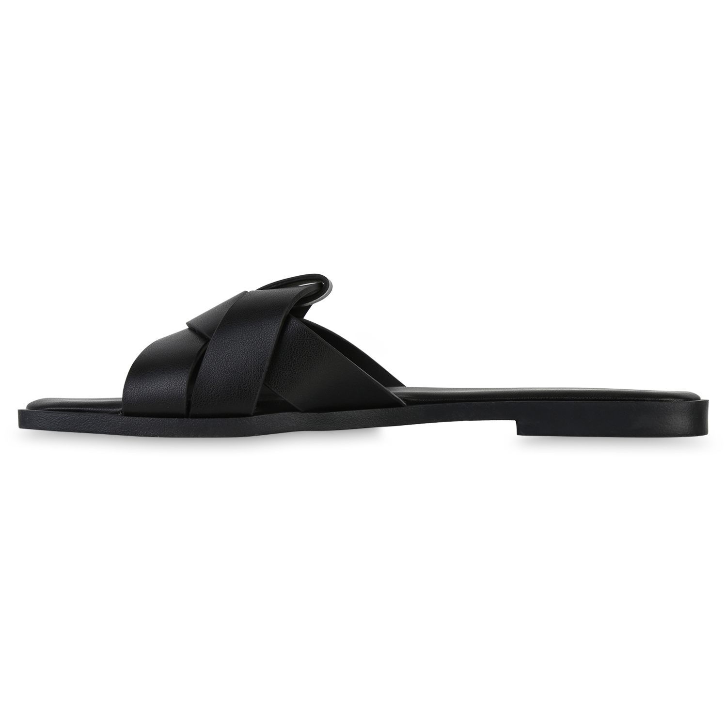 VAN HILL Damen Pantoletten Sandalen Basic Leder-Optik Freizeit Schuhe 841729
