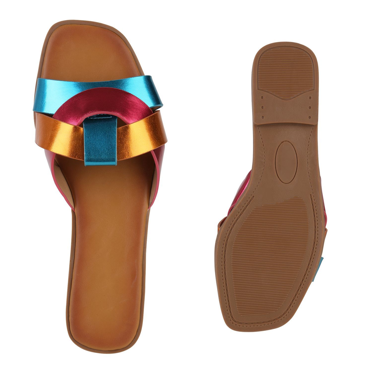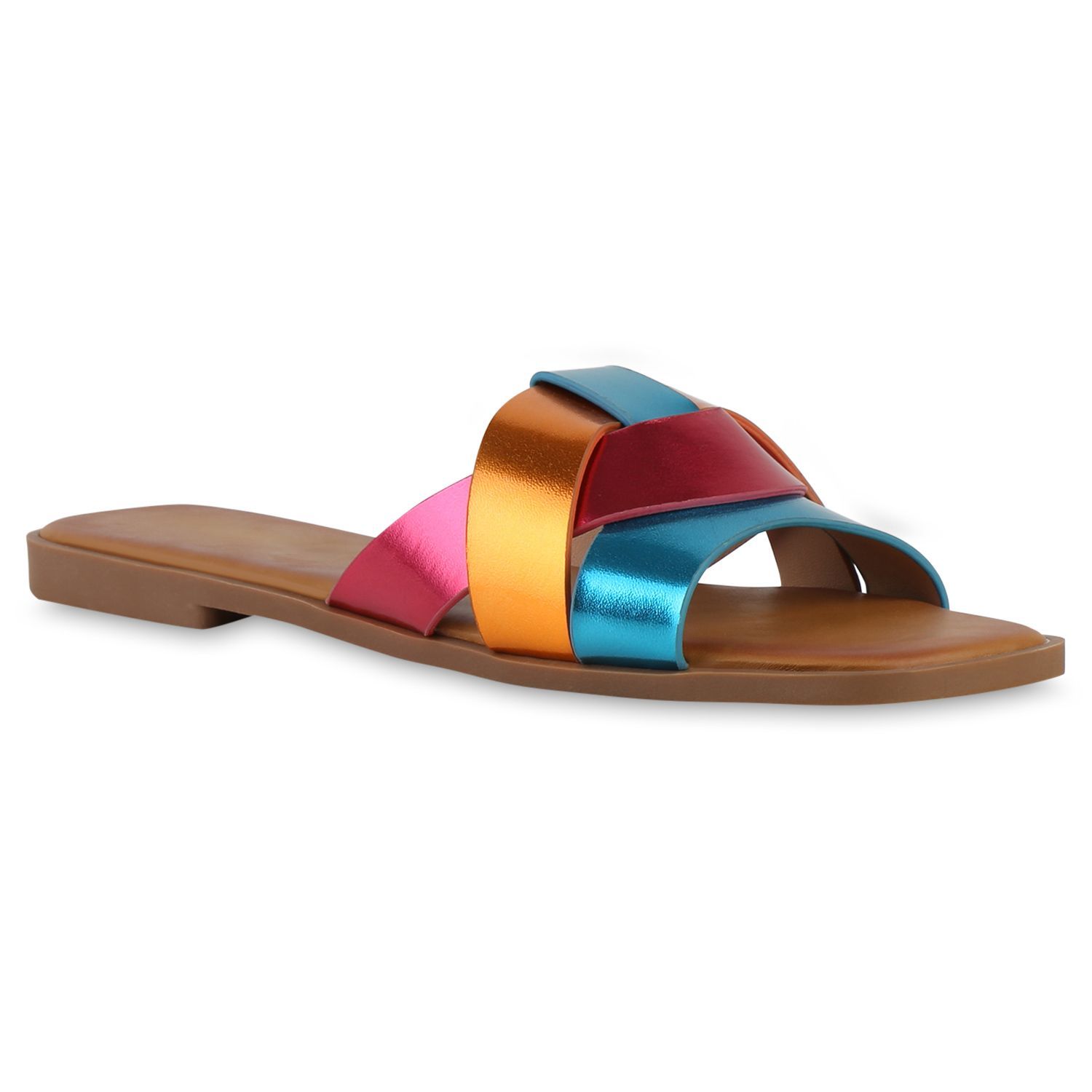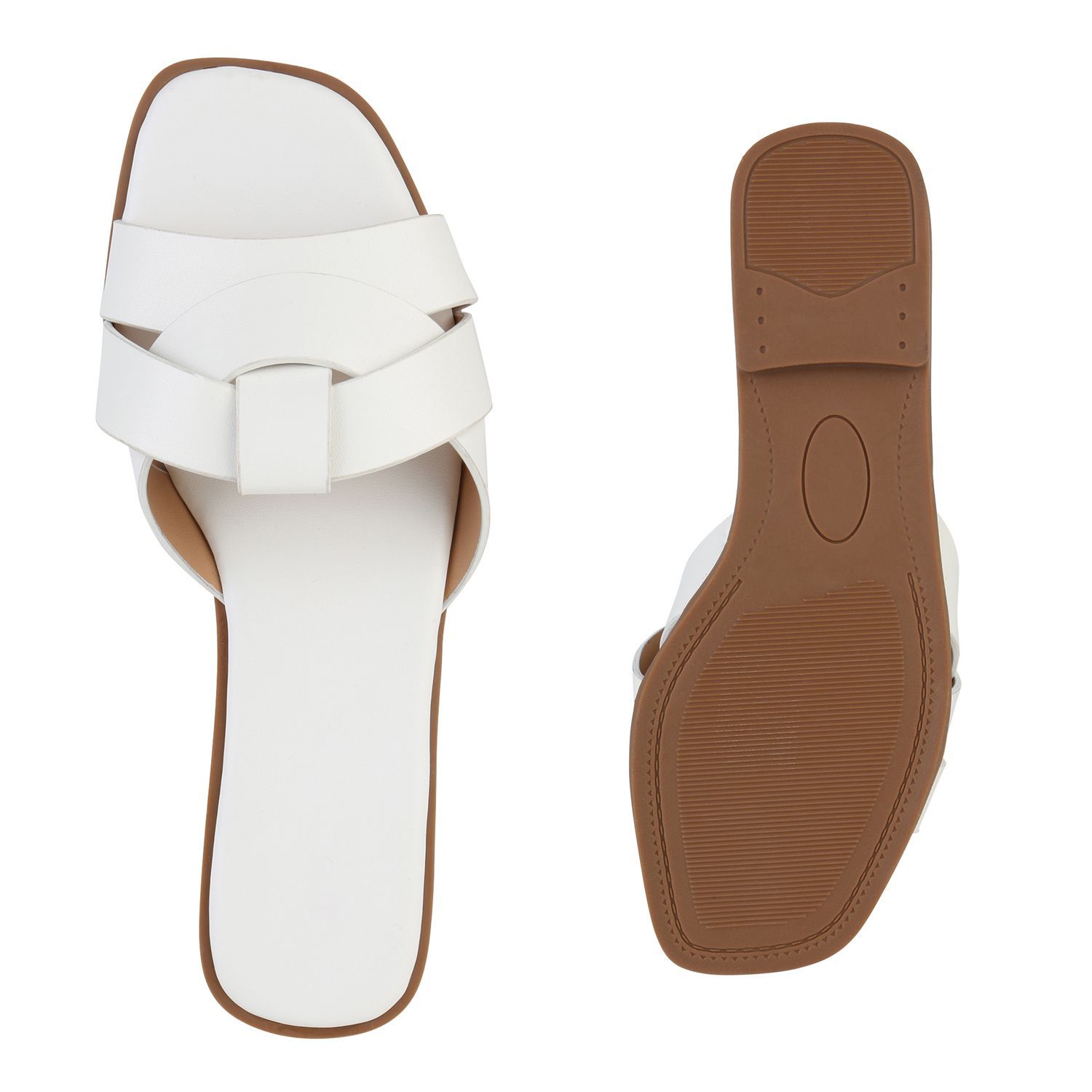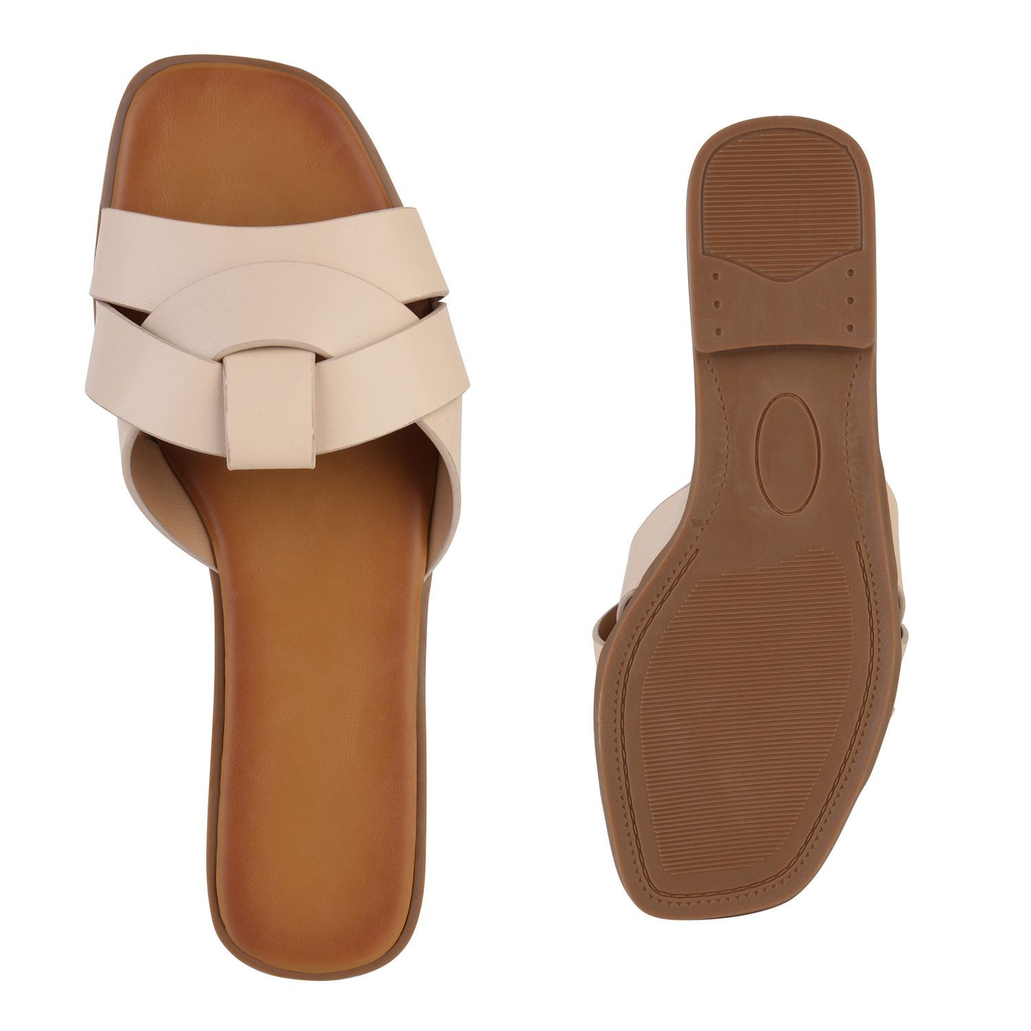 VAN HILL Damen Pantoletten Sandalen Basic Leder-Optik Freizeit Schuhe 841729