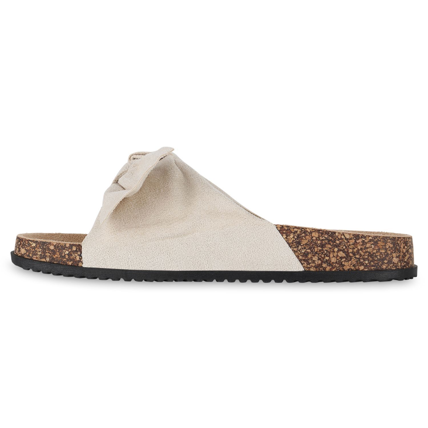 VAN HILL Damen Pantoletten Sandalen Bequeme Schleifen Korkoptik Schuhe 841308