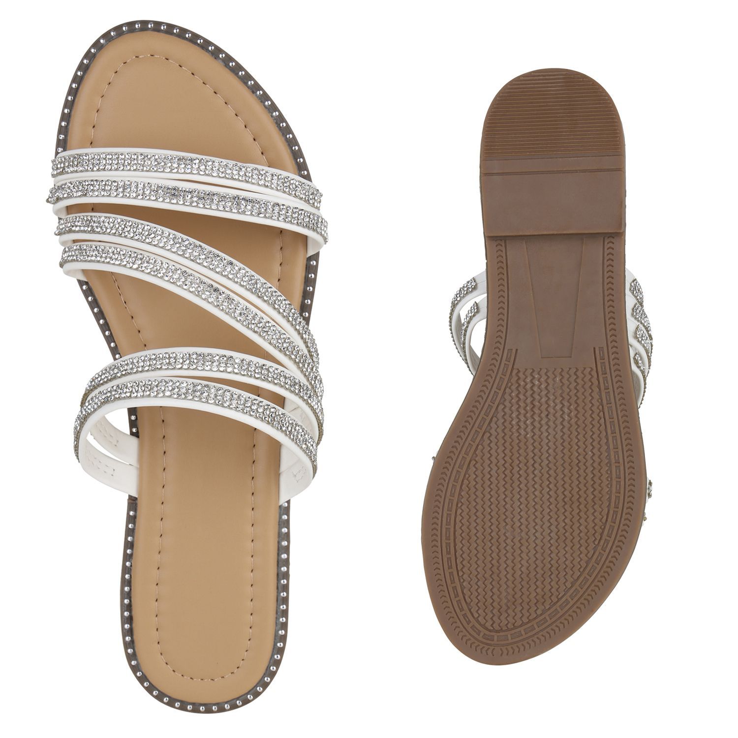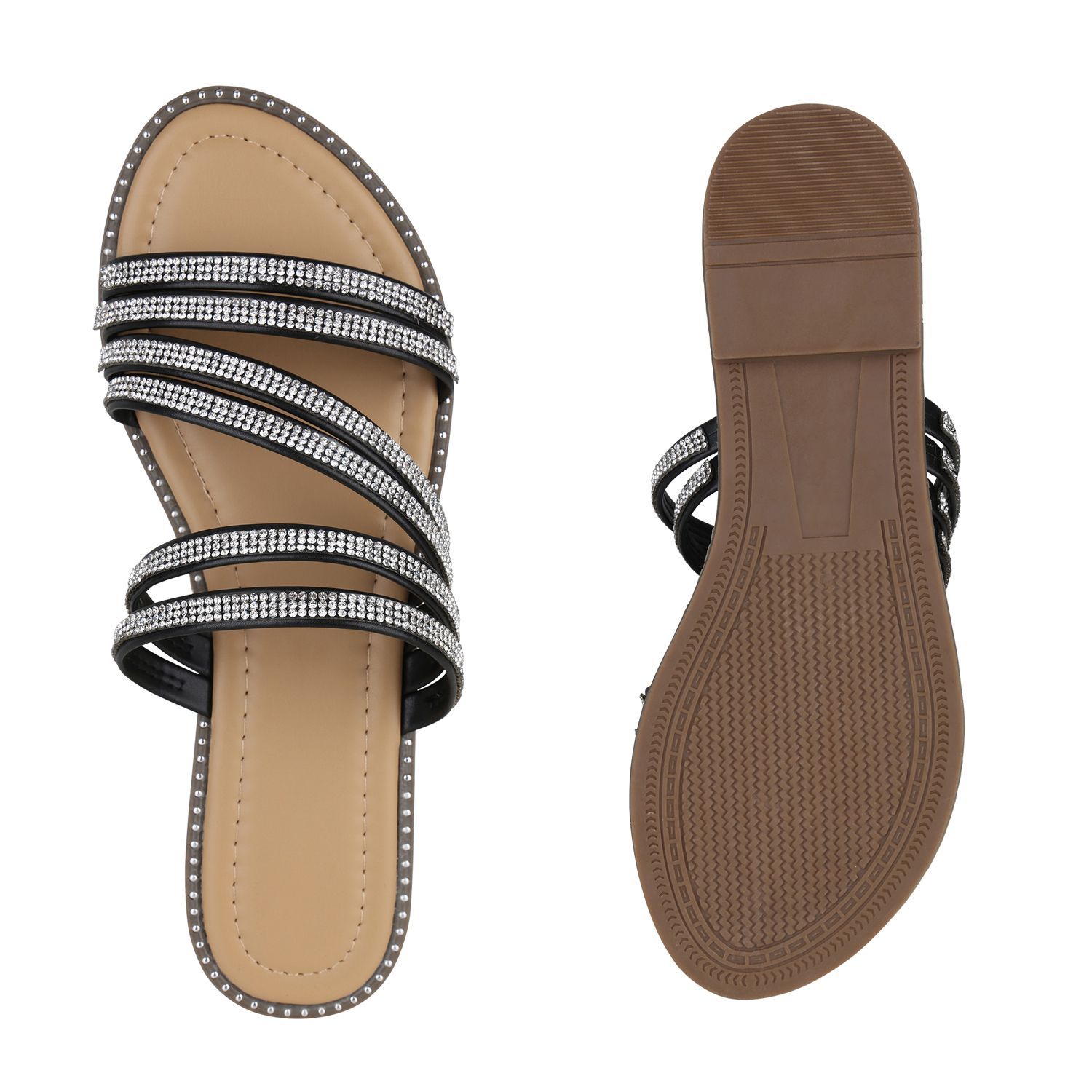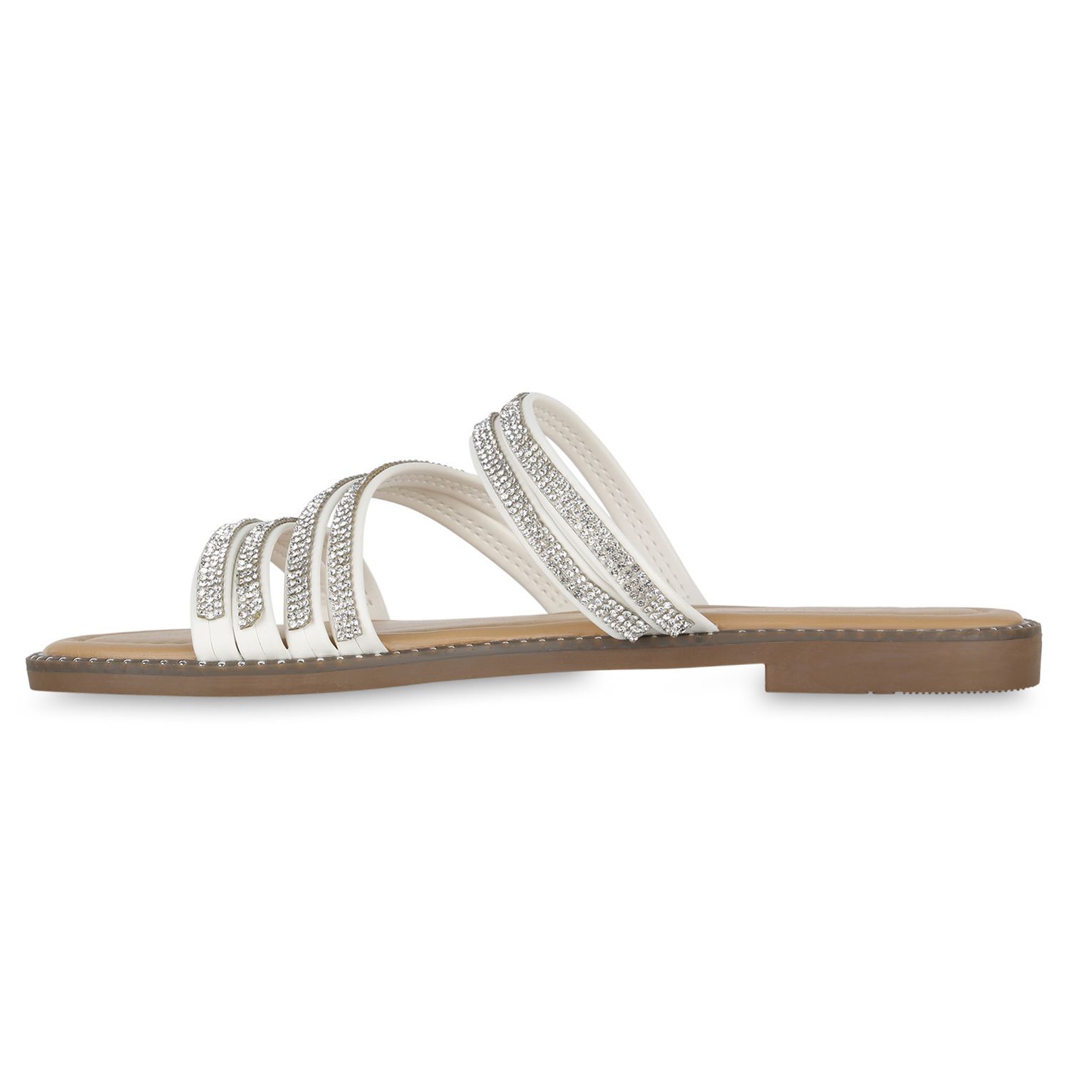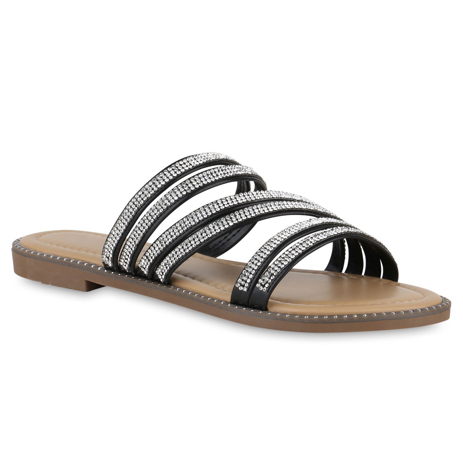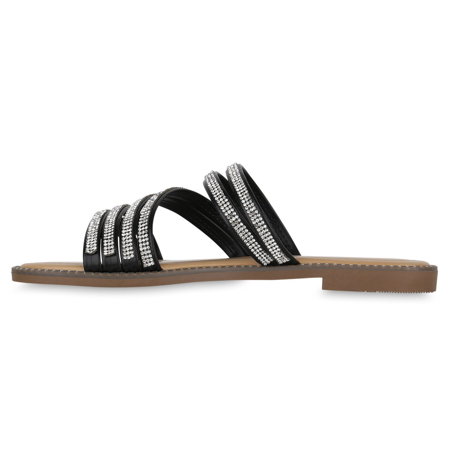 VAN HILL Damen Pantoletten Sandalen Nieten Slip On Schlappen Strass Schuhe 840953