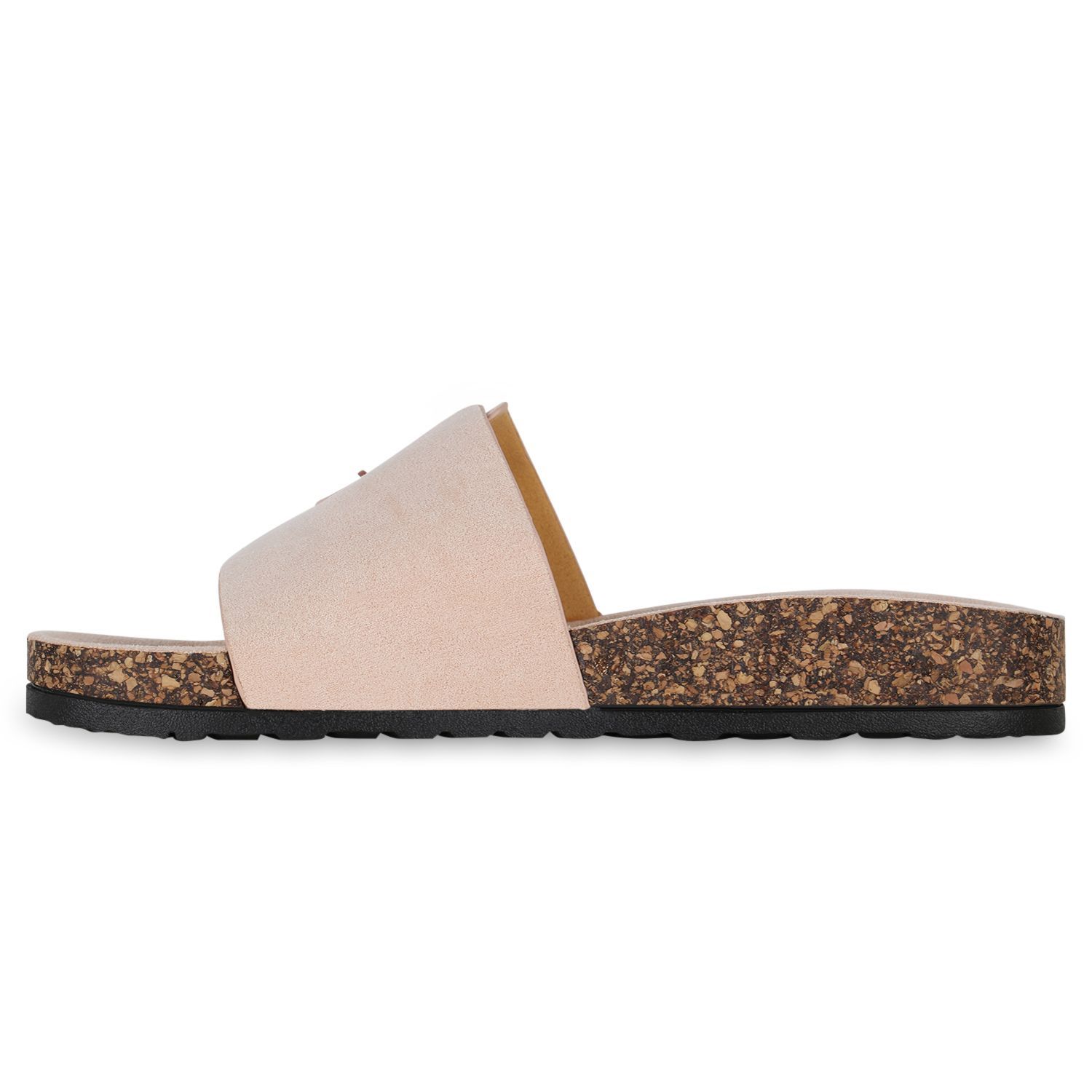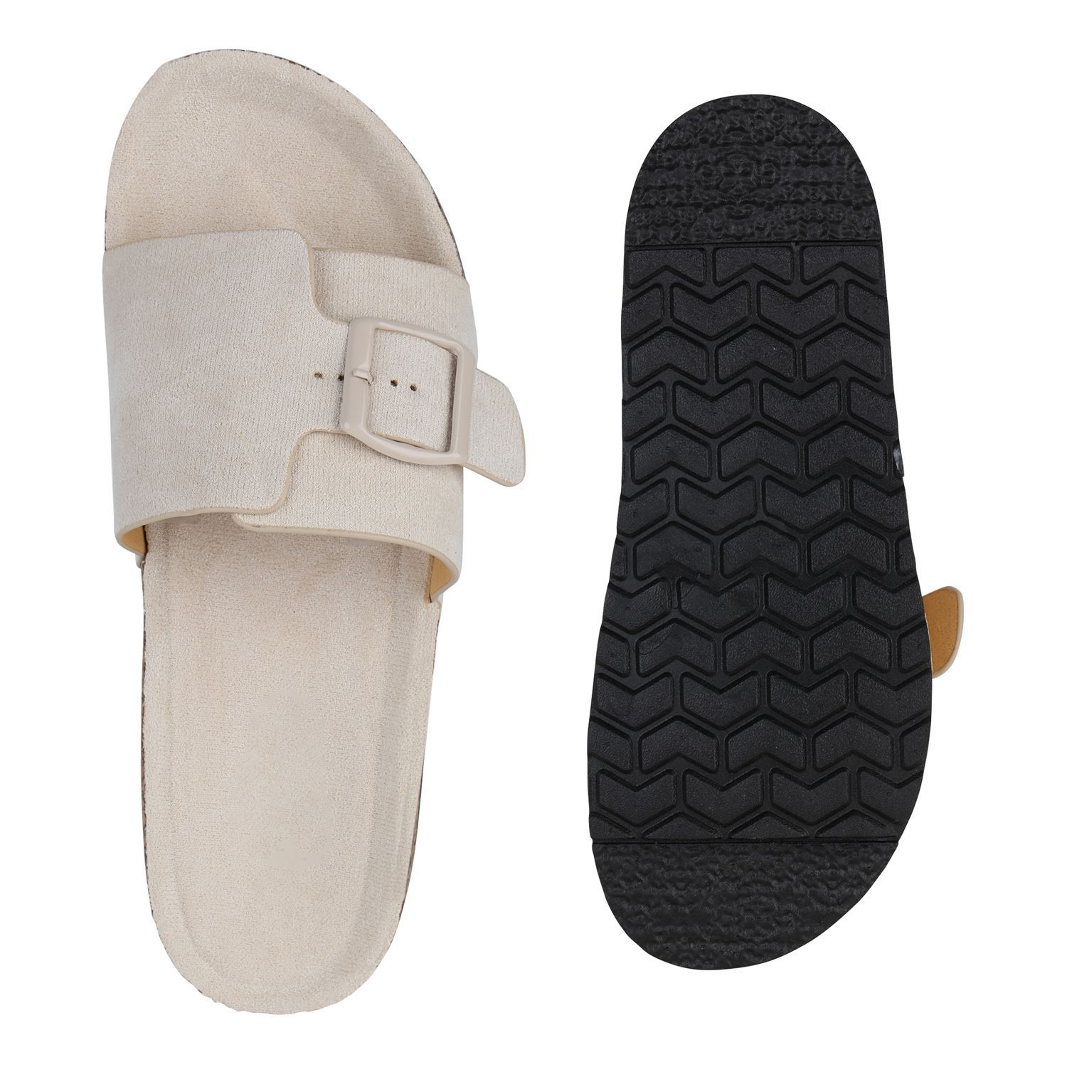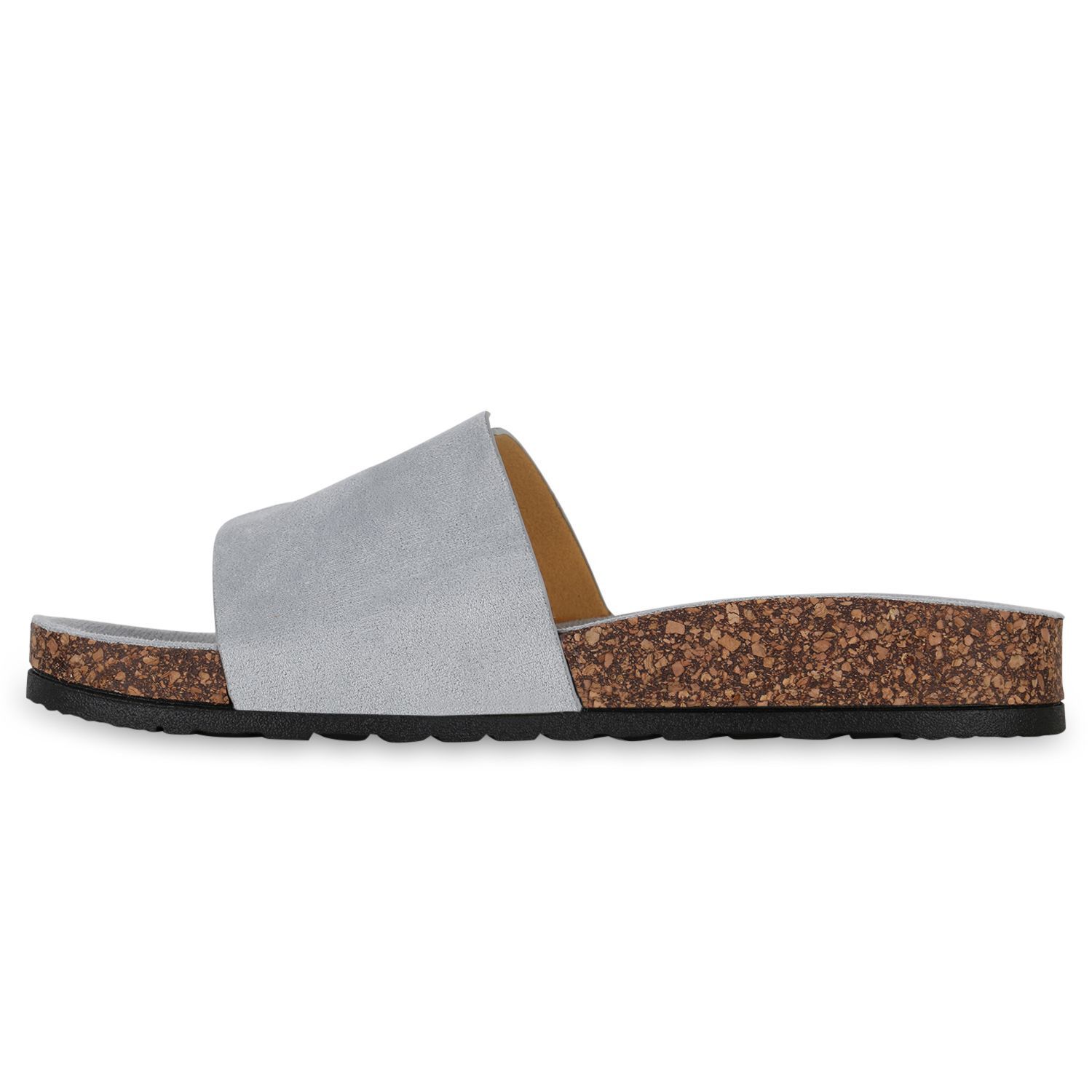 VAN HILL Damen Pantoletten Sandalen Schnallen Korkoptik Profil-Sohle Schuhe 841089