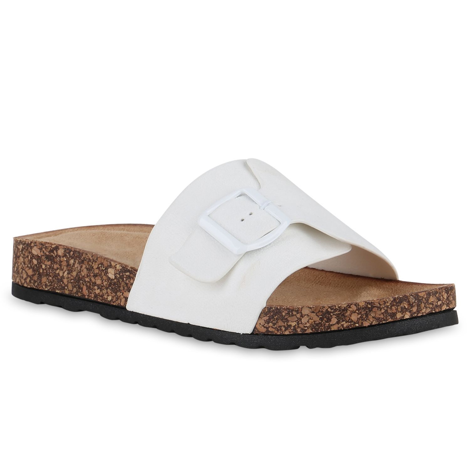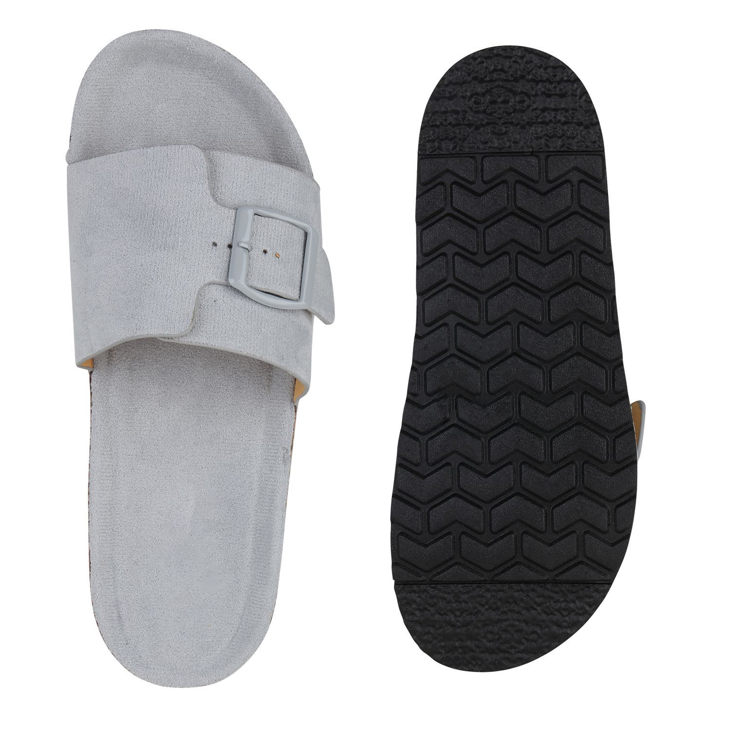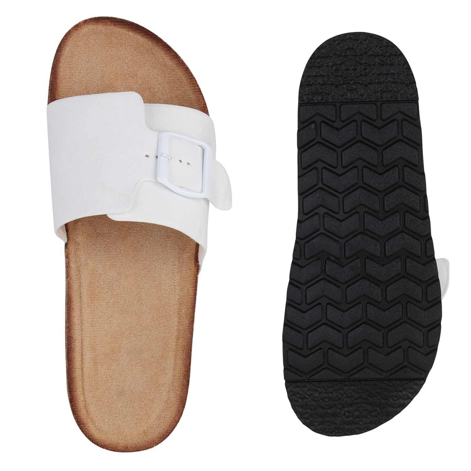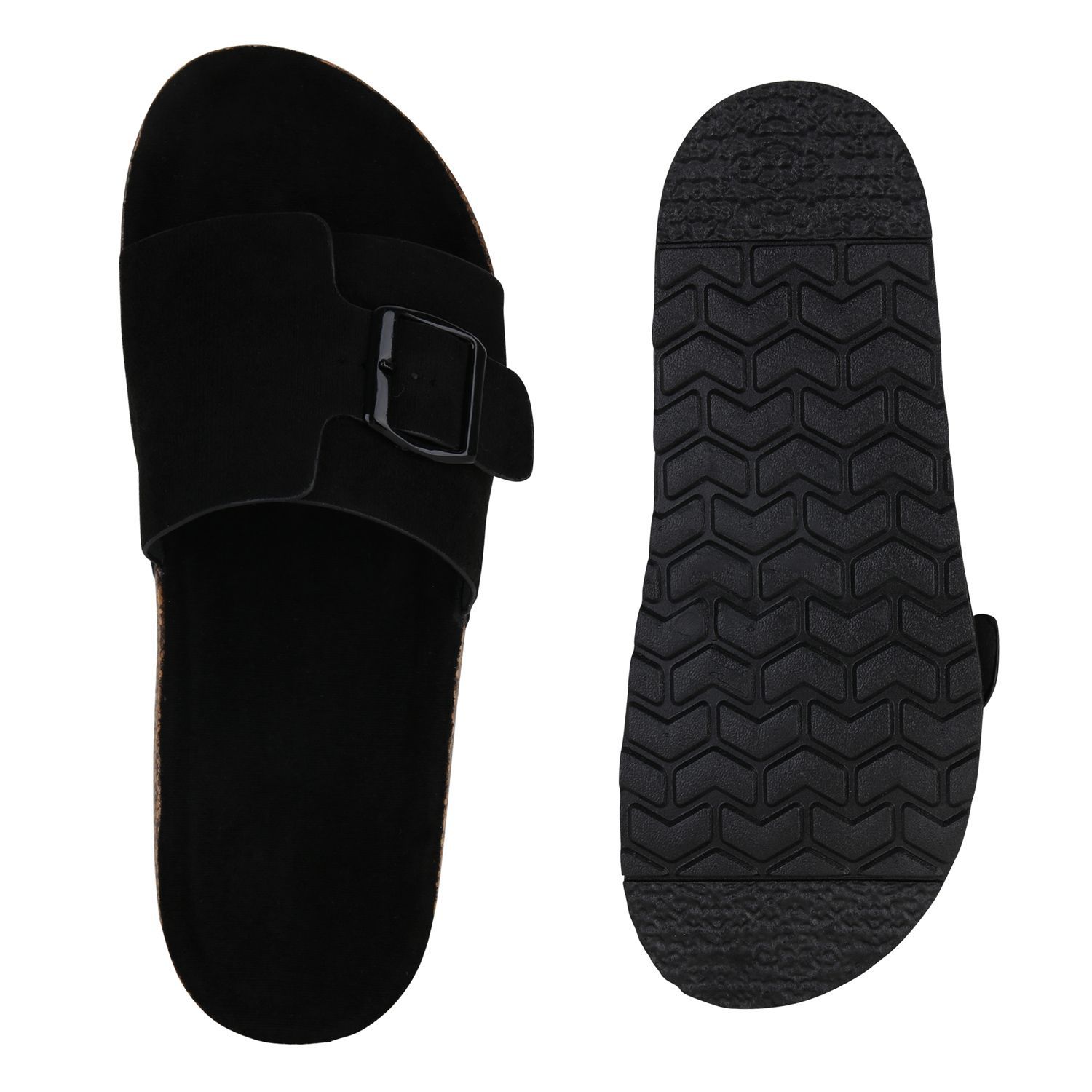 VAN HILL Damen Pantoletten Sandalen Schnallen Korkoptik Profil-Sohle Schuhe 841089