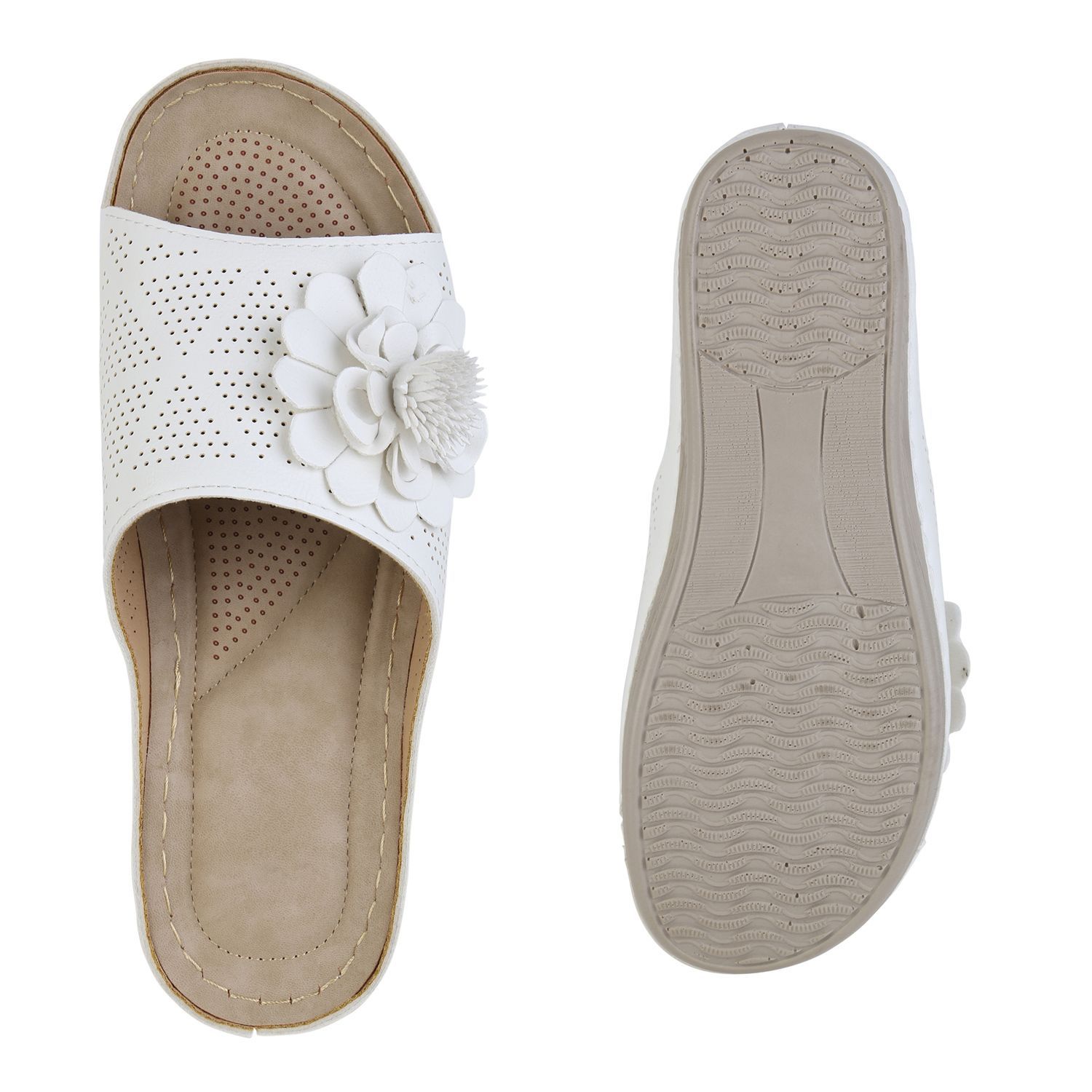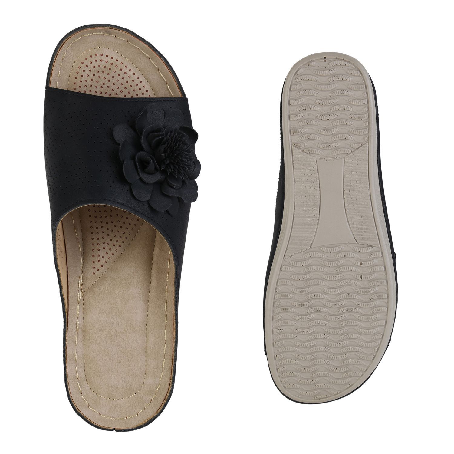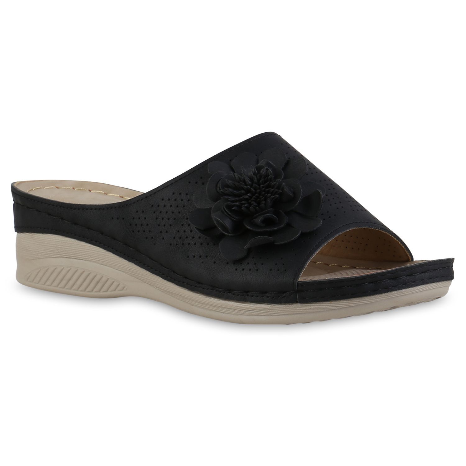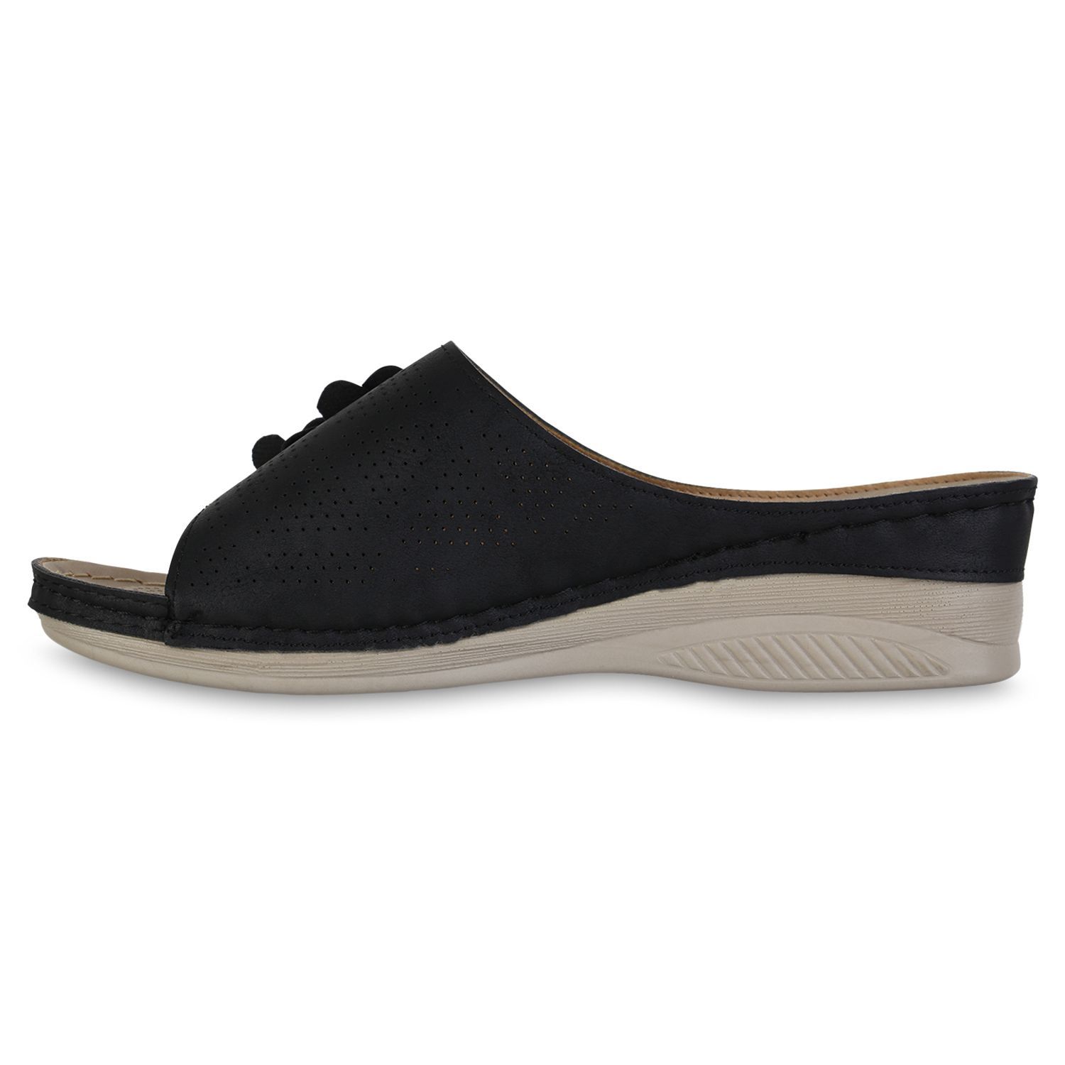 VAN HILL Damen Pantoletten Sandaletten Bequem Blumen Cut-Out Komfort Schuhe 841617