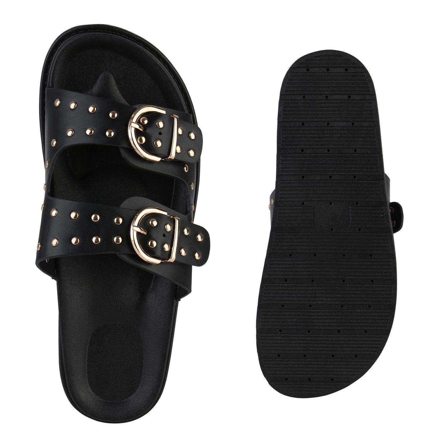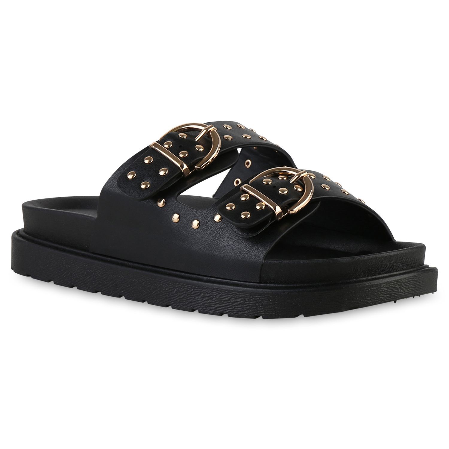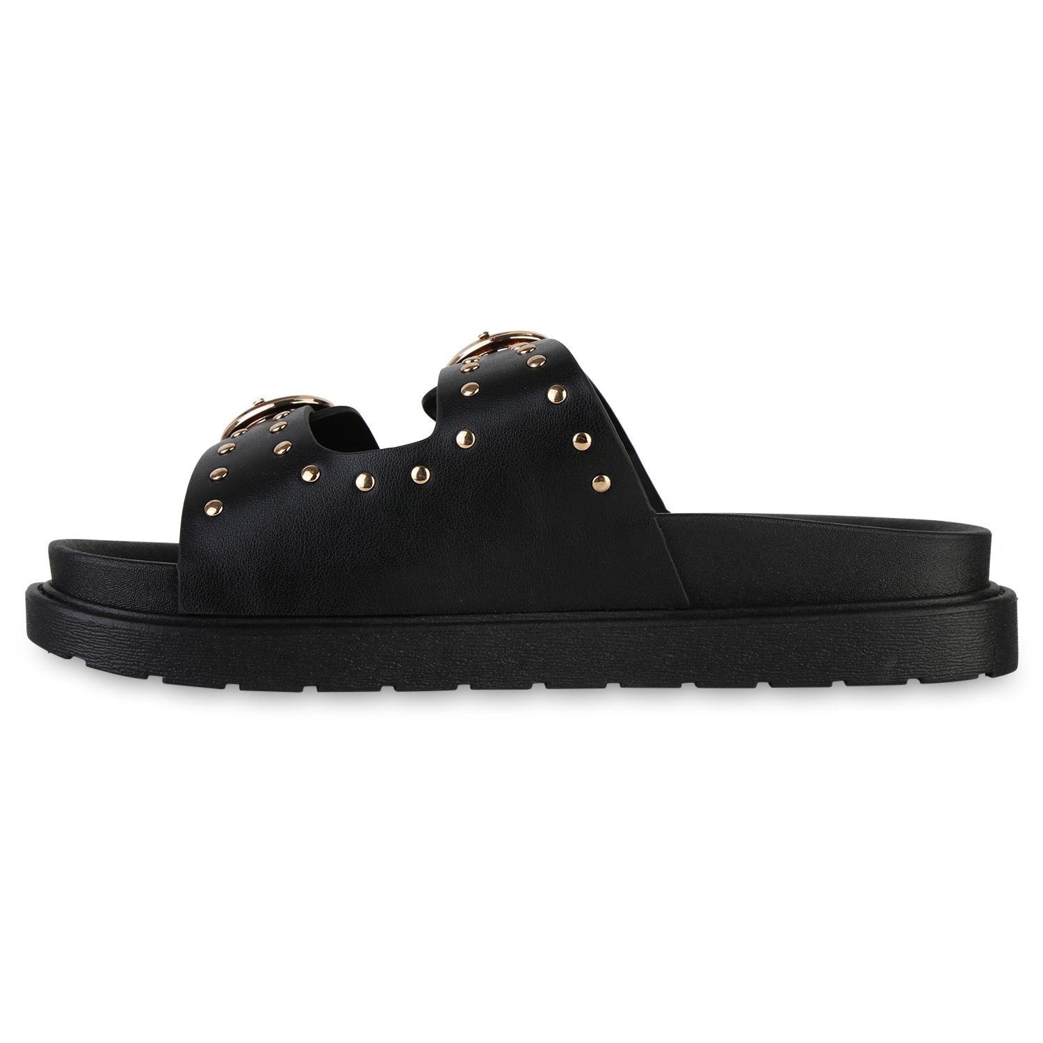 VAN HILL Damen Pantoletten Sandaletten Nieten Schnallen Profil-Sohle Schuhe 841736