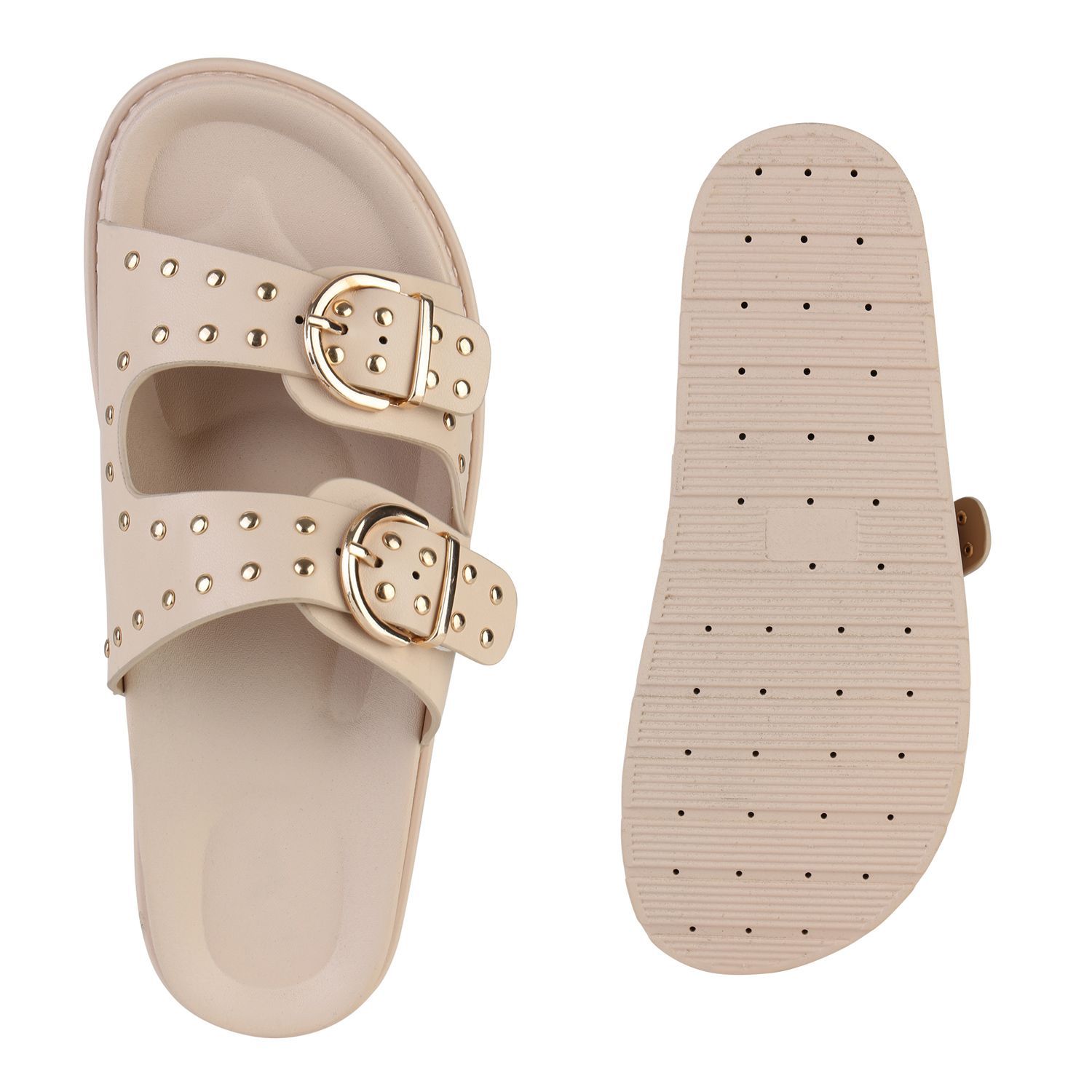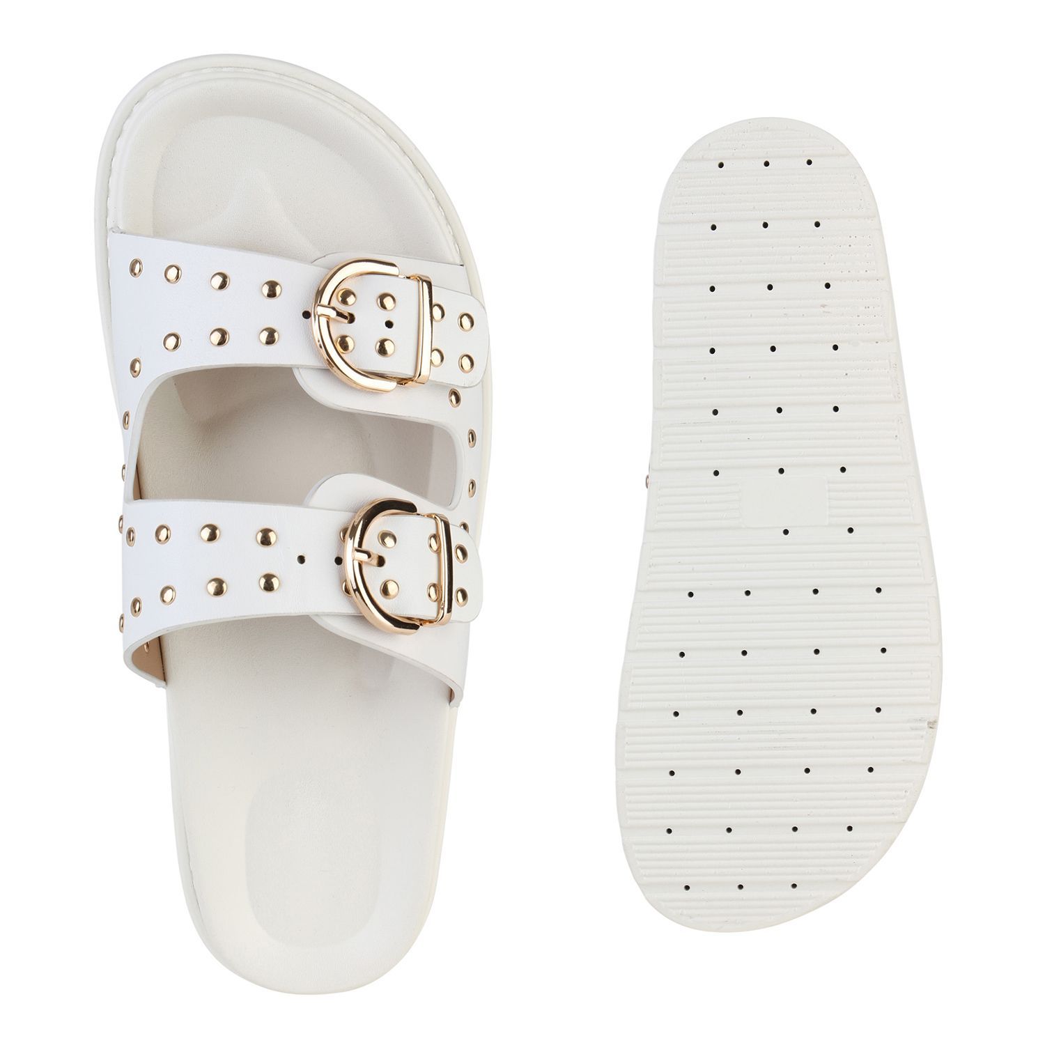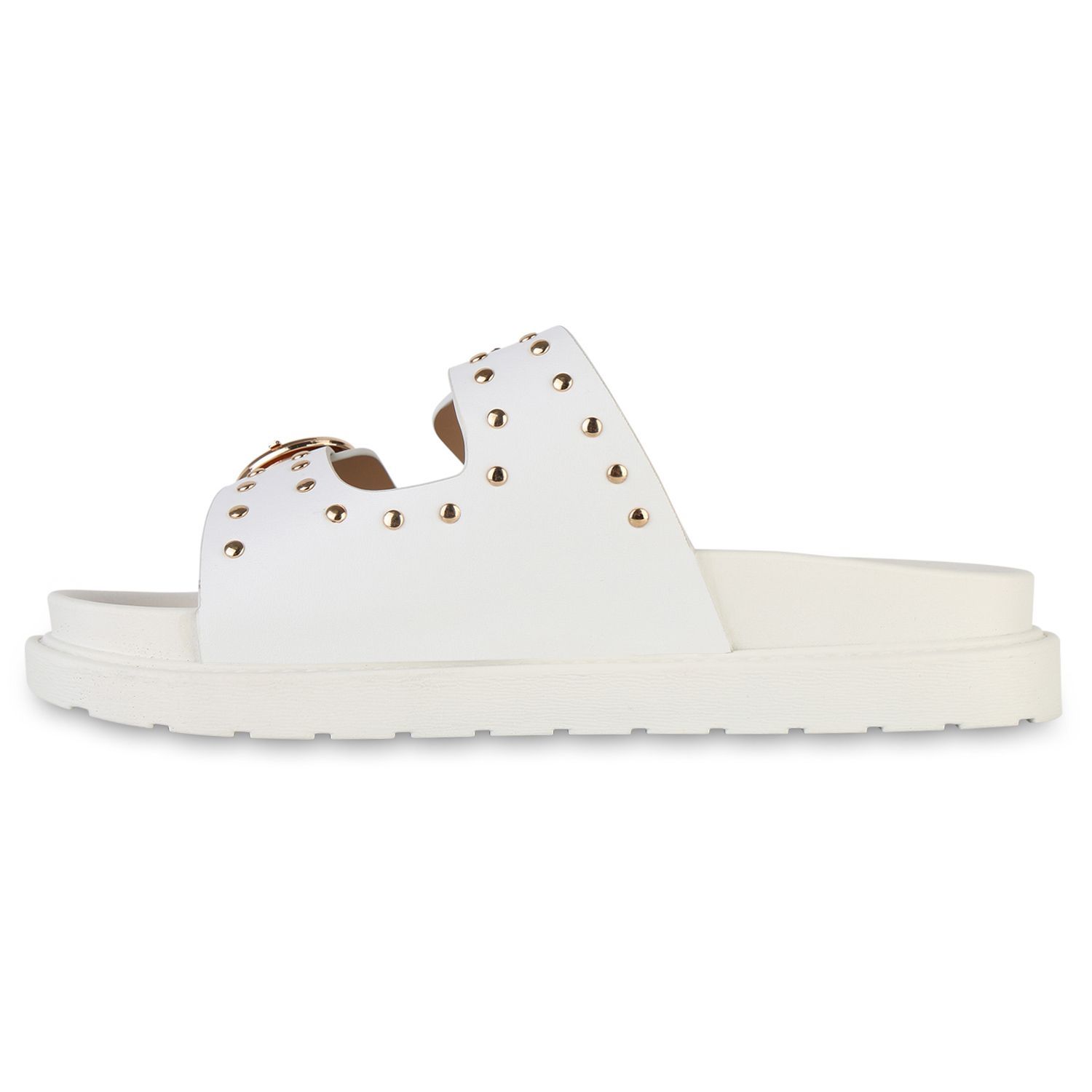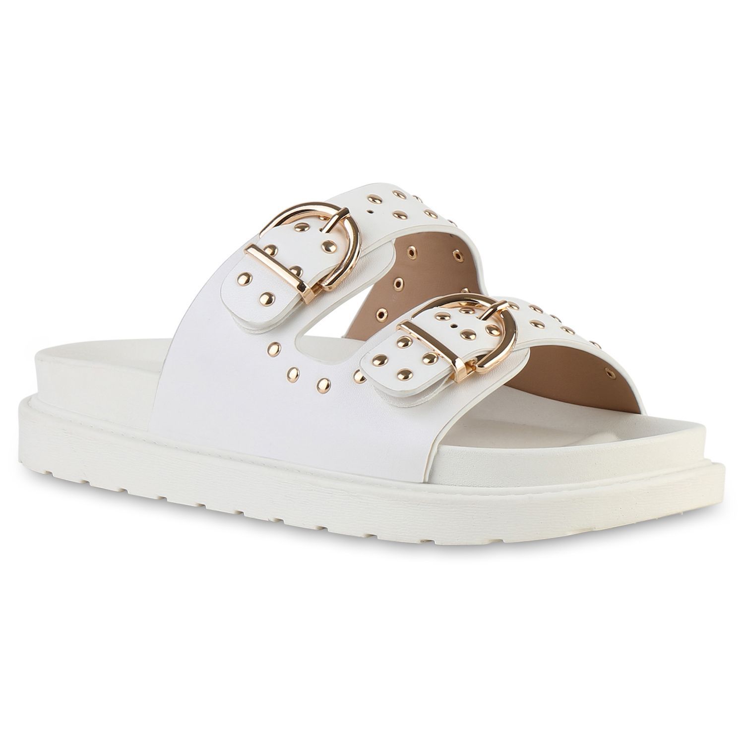 VAN HILL Damen Pantoletten Sandaletten Nieten Schnallen Profil-Sohle Schuhe 841736