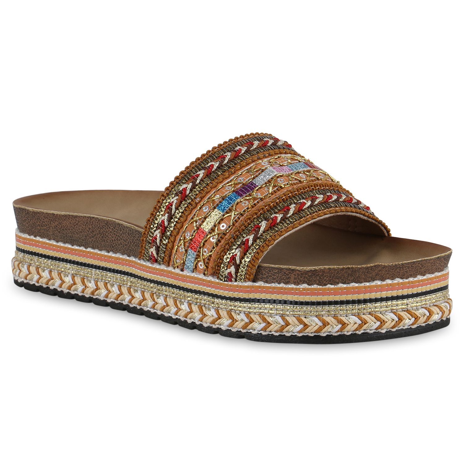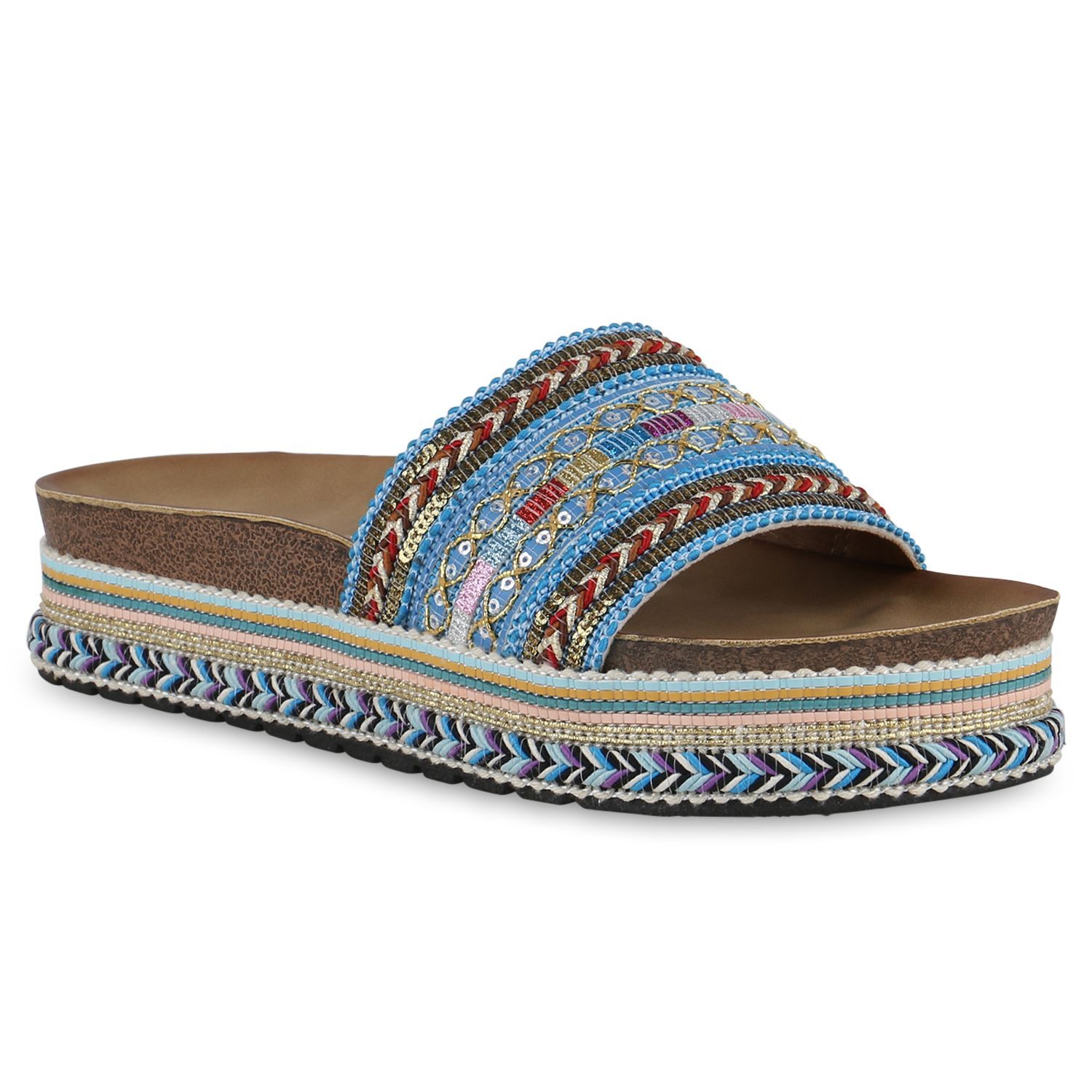 VAN HILL Damen Pantoletten Sandaletten Plateau Glitzer Pailletten Schuhe 841101
