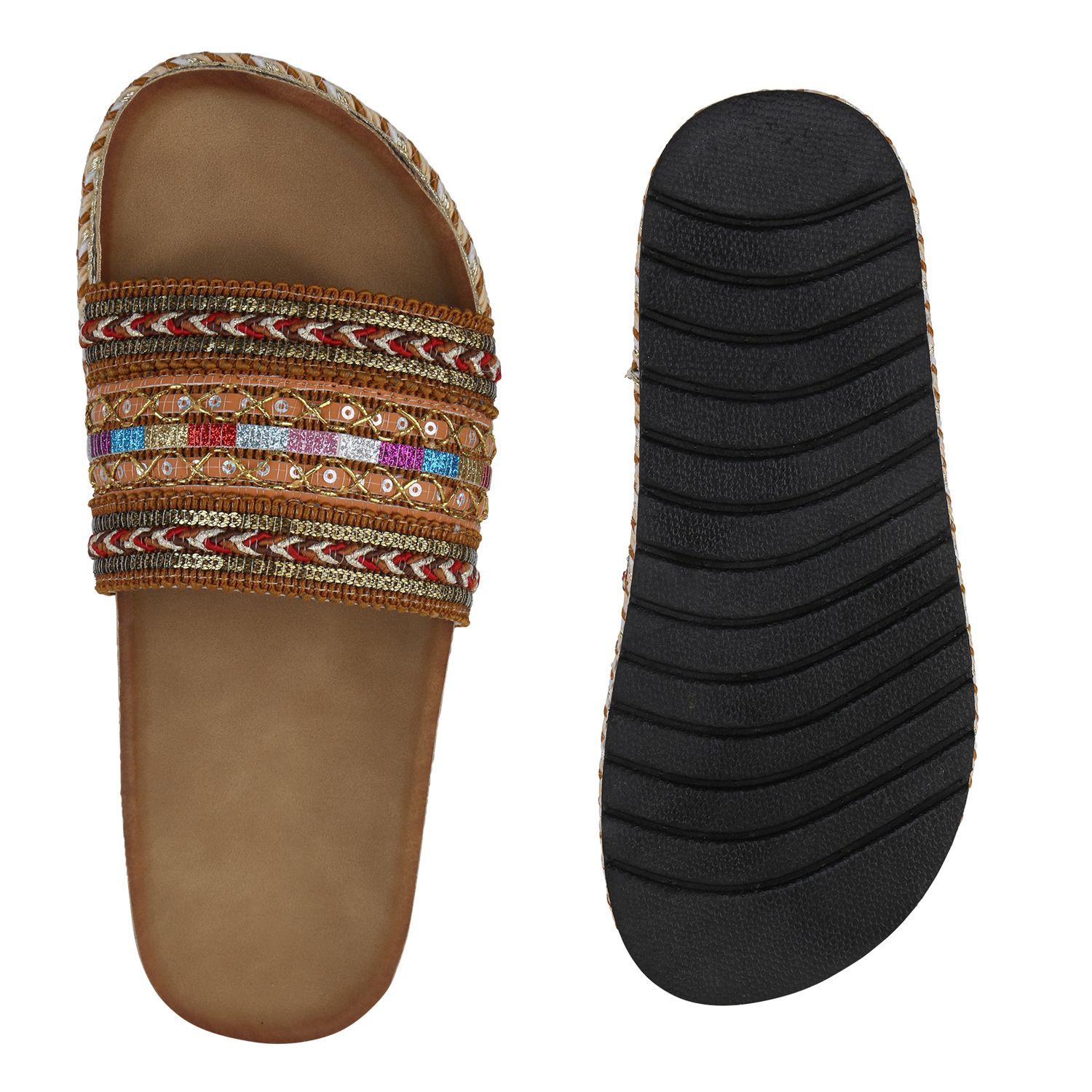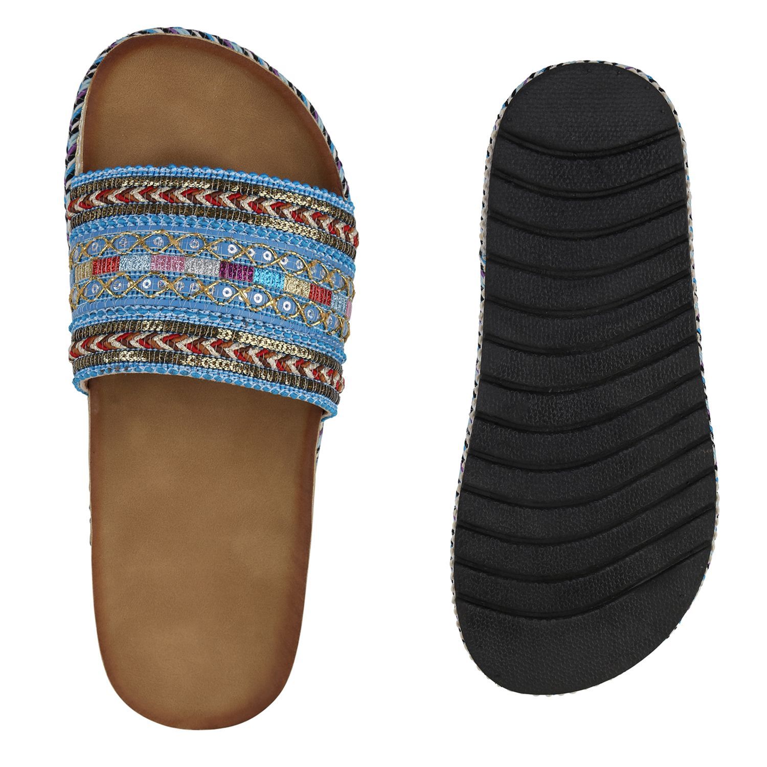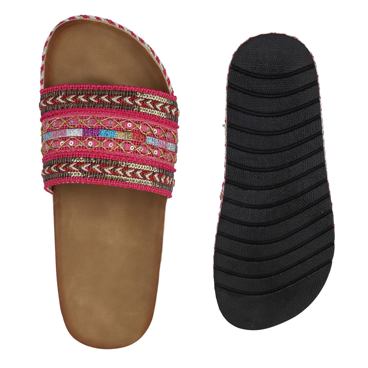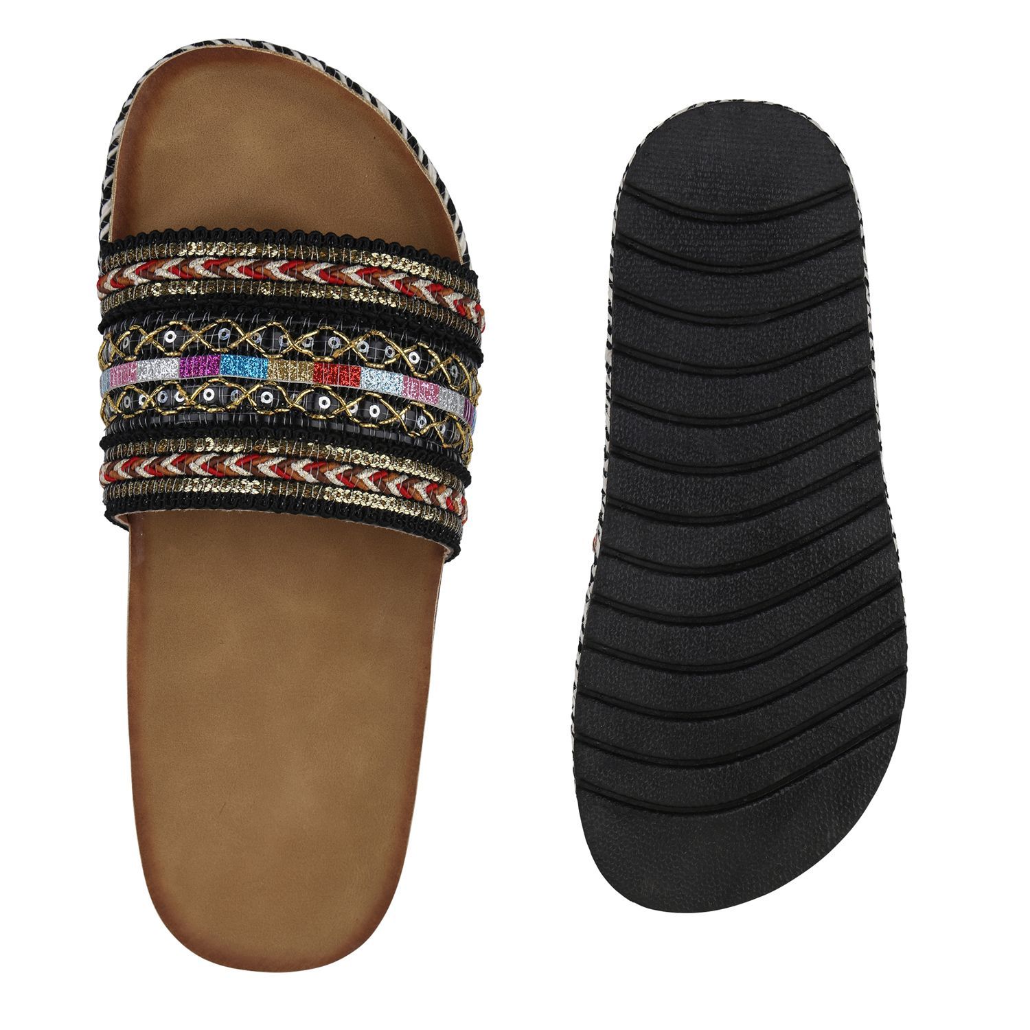 • VAN HILL Angesagte Damen Glitzer Slipper Espadrilles Bastsohle 816243
